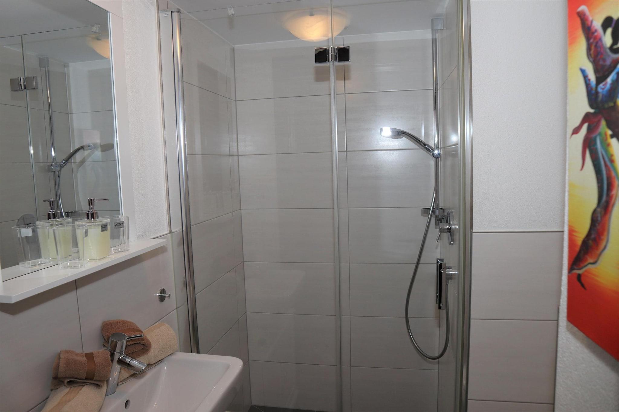 Åpent kjøkke(vedovn, komfyr med kokeplater(komfyr med 4 kokeplater, keramisk), vannkoker, brødrister, kaffetrakter, stekovn, mikrobølgeovn, oppvaskmaskin, kjøleskap med fryser), Stue/spisestue(1 persons sovesofa, TV(satellitt, Tyske TV-kanaler)), soveværelse(dobbeltseng), soveværelse(enkeltseng, enkeltseng, dusj, toalett), bad(dusj, toalett), vaskemaskin(betalt), balkong eller terrasse, oppvarming, parkering, baby crib(free)