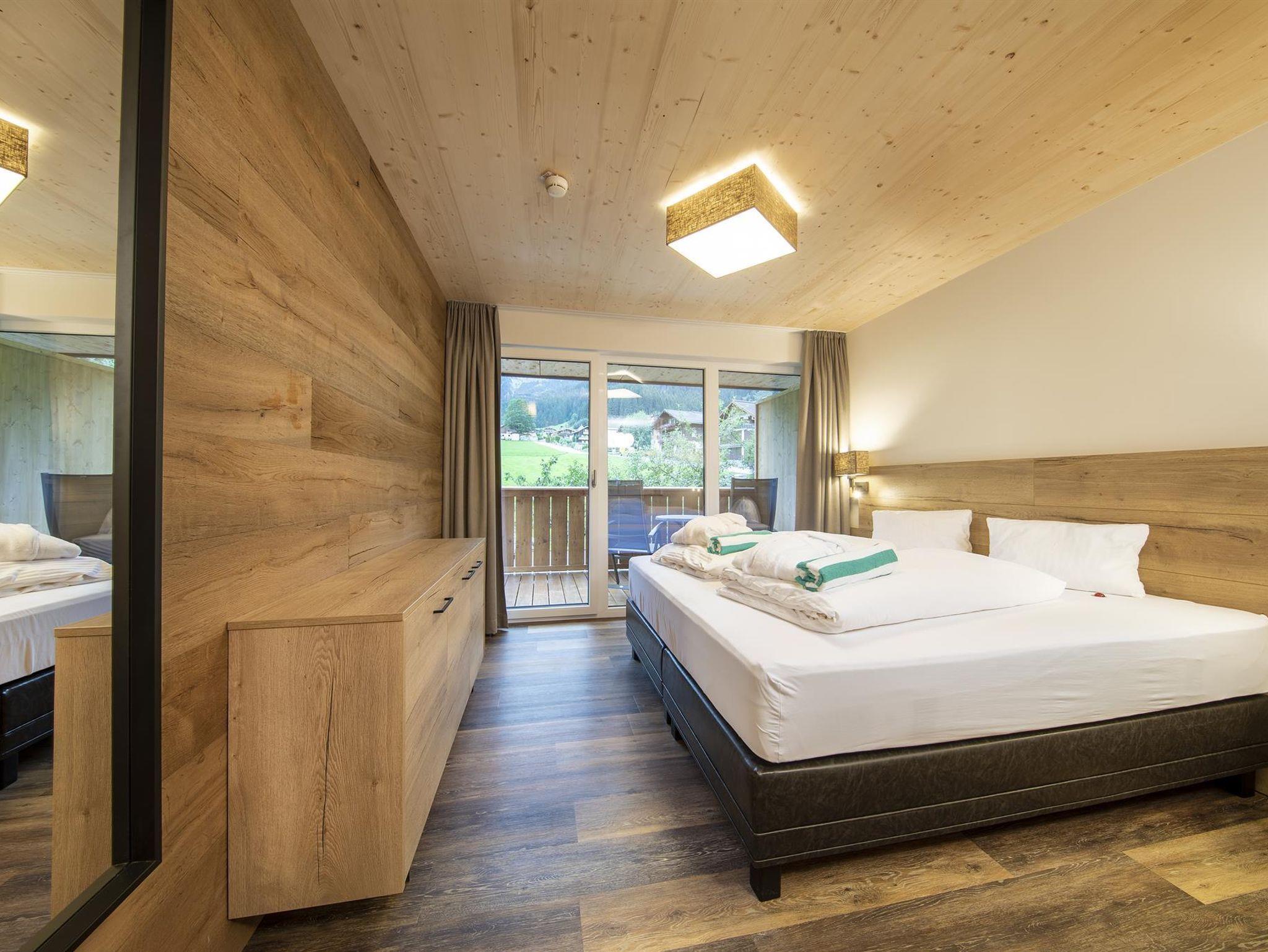 Die im Frühjahr 2019 komplett neu renovierten Zimmer (1-4 Personen) im alpin-modernen Design wurden mit natürlichen Materialien ausgestattet. Von Ihrem Balkon oder der Terrasse aus genießen Sie den Panoramablick auf die Krimmler Wasserfälle. Die allergikergerechte Ausstattung sorgt für Wohnkomfort mit höchsten Ansprüchen. Das Zimmer wird optisch in Wohn- und Schlafraum getrennt