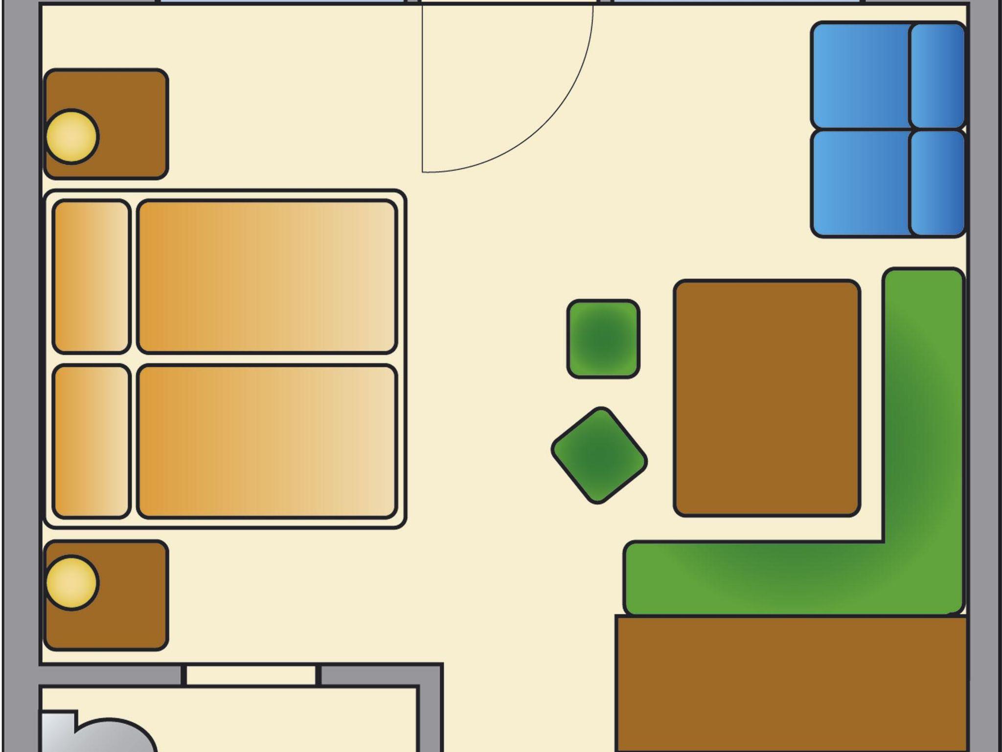 • Doppelbett, Sitzecke, Ausziehsofabett