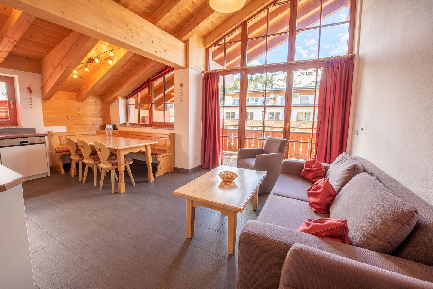 Die Unterkunft Duxeranger B Top 10 bietet auf 75 m² Wohnfläche drei Schlafzimmer, zwei Badezimmer, eine offene Küche zum Wohnzimmer, einen Balkon mit Bergblick sowie einen Privatparkplatz in der Garage. WLAN, Waschmaschine, Trockner (beides gemeinschaftlich) und moderne Ausstattung sorgen für Komfort. Die Nähe zu Skilift, Restaurants und Einkaufsmöglichkeiten rundet das Angebot ab.