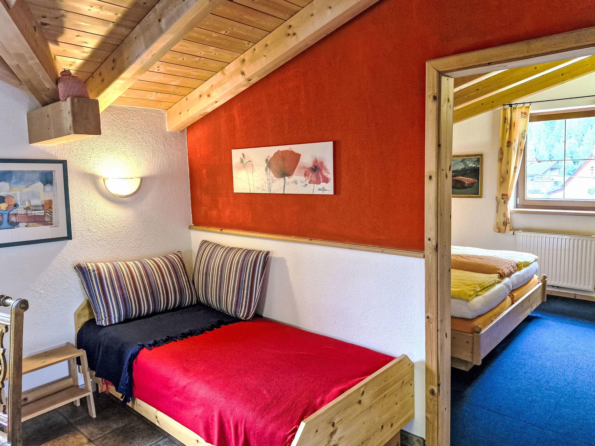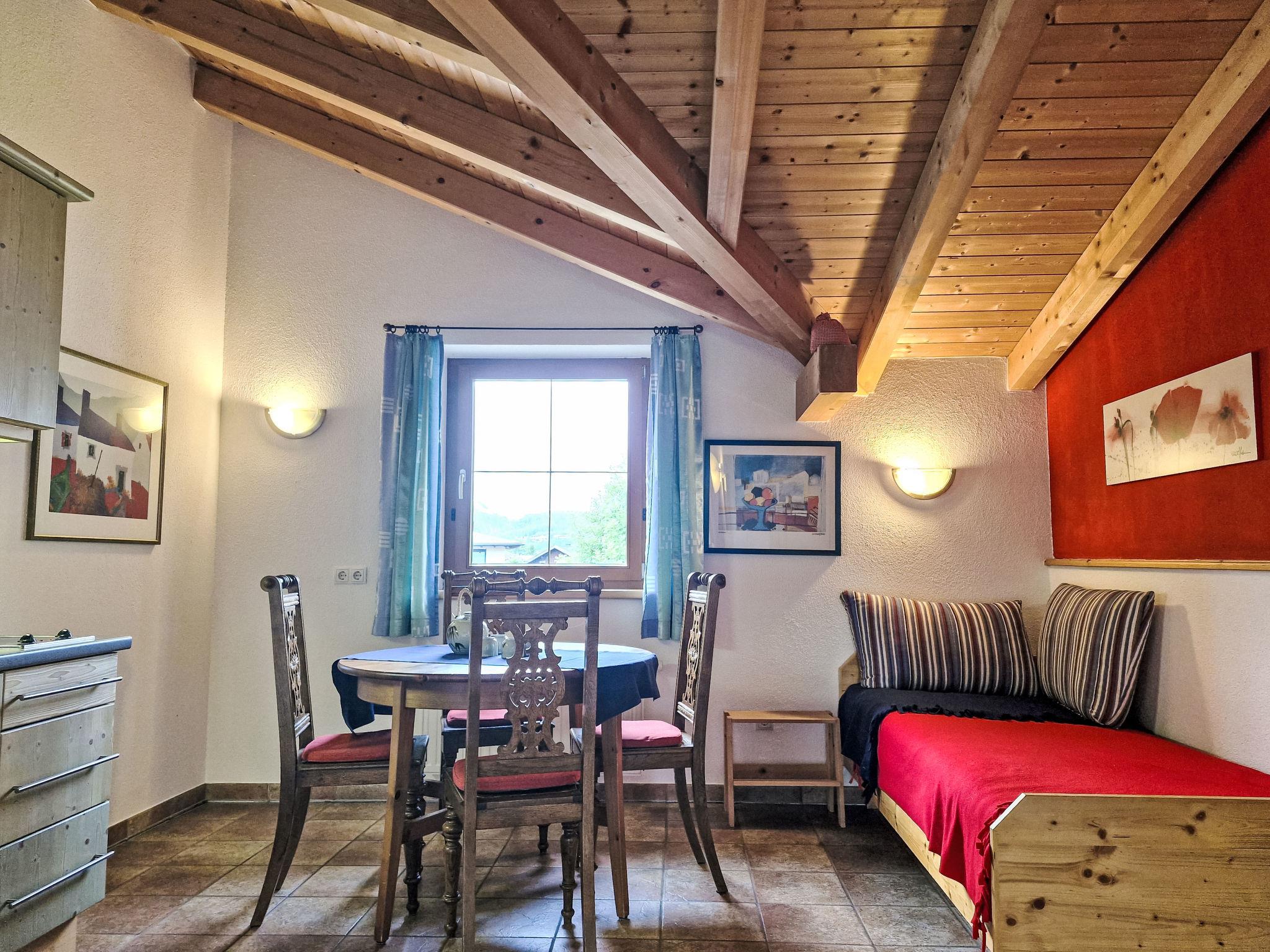 "Apart 2", 2-room apartment 30 m2, on the top floor. Beautiful and cosy furnishings: entrance hall. 2nd upper floor: 1 double bedroom. Kitchen-/living room (2 hot plates, kettle, microwave, electric coffee machine) with 1 bed, dining table and TV (flat screen). Shower/WC. Heating. Comfortable furnishings in the country house style. Beautiful, of the mountains and the resort. Facilities: children's high chair, hair dryer. Internet (WiFi, free).