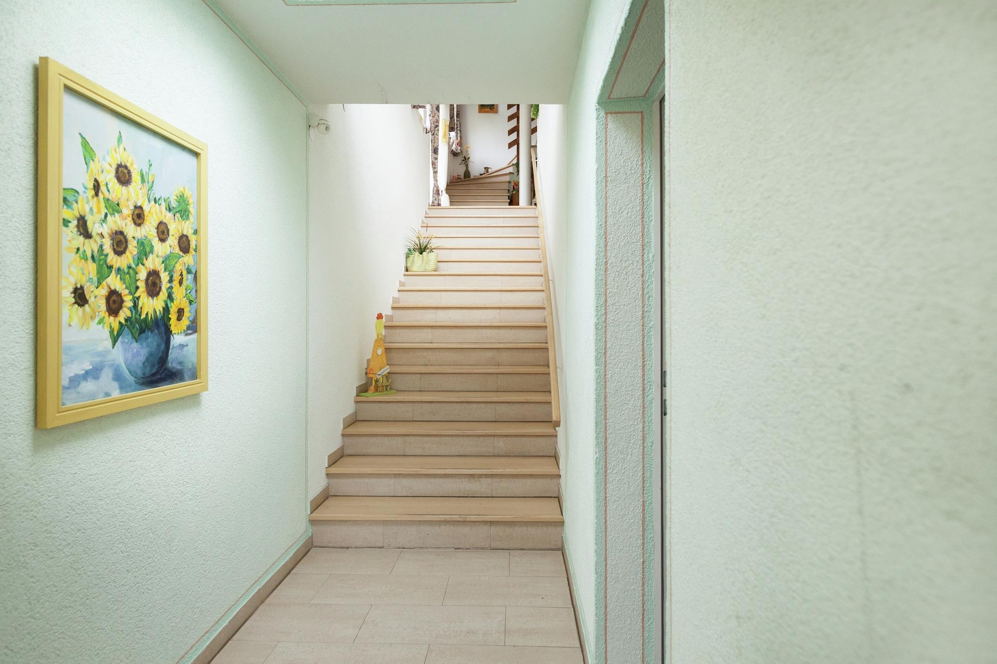 I 2. etasje: (Stue(spisebord, sittehjørne), åpent kjøkken(vannkoker, komfyr(komfyr med 4 kokeplater), kaffetrakter(kaffetrakter), stekovn, mikrobølgeovn, kjøleskap), soveværelse(dobbeltseng(180 x 200 cm)), bad(badekar med dusj, håndvask, toalett)) oppvarming(sentral), takterrasse, hagemøbler, grill, parkering