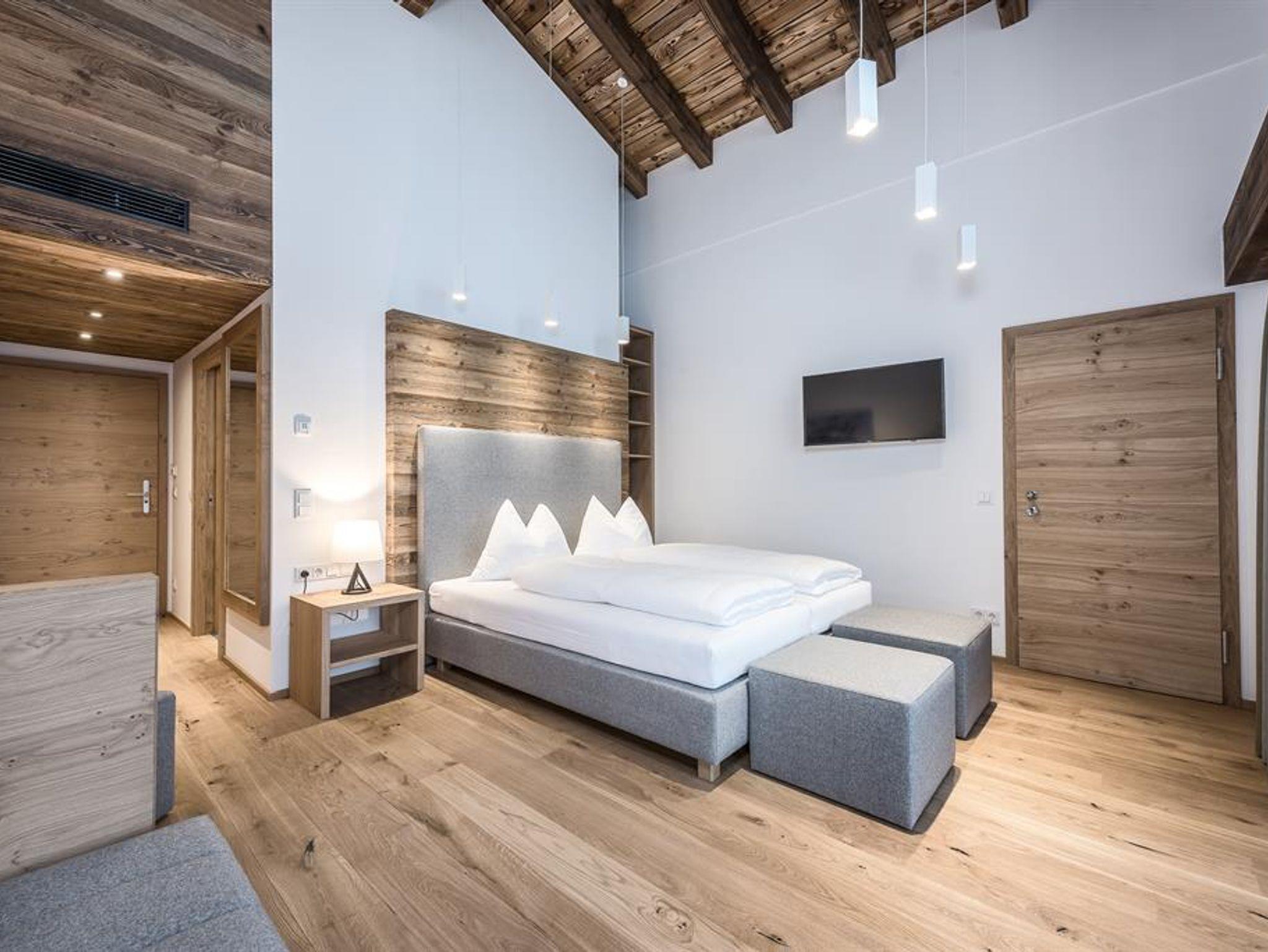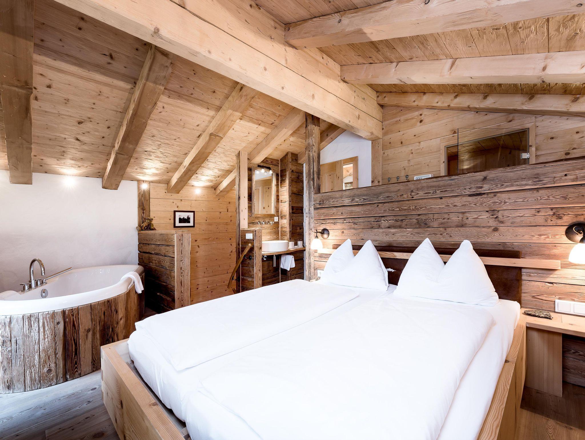 Die größe Suite des Hauses bietet Freiraum und Rückzugsmöglichkeit für Wellnessbegeisterte. Auf ca. 80m² erleben Sie ein besonders stilvolles Wohnvergnügen. Eintauchen in die Welt der Entspannung und des Wohlbefindens. Ein 35m² großer PRIVAT SPA Bereich wartet auf die Erfüllung ihrer Träume. Neben eigener finnischer Sauna, Erlebnisdusche, SpaLounge, Sundeck Pool, Teebar und der stilvollen Exklusivität des ausgewählten Interieur wartet eine eigene Dachterrasse mit wunderschönem Bergblick auf Sie. Den wundervollen Ausblick können Sie aber auch direkt von der Sauna oder dem Sundeck Pool aus genießen. Massagen und Behandlungen in privater Atmosphere runden das besondere Erlebnis ab.