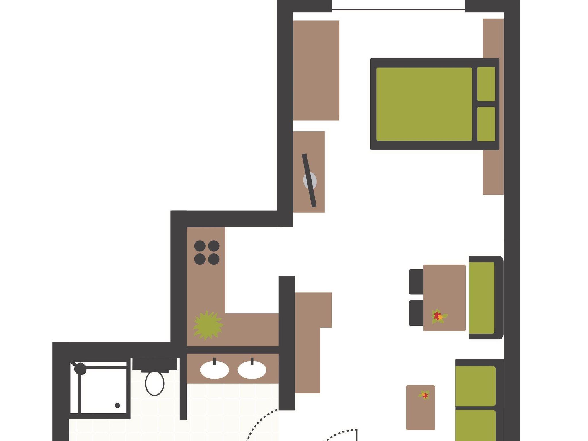 Dieses Apartment ist ca. 35 m² groß und trotzdem ideal für 2 Personen und sehr geräumig ausgestattet, es verfügt über Wohnschlafzimmer, Küche, Dusche, WC, Safe, TV, Radio, Telefon, Handtücher, Bettwäsche, Geschirr, usw..