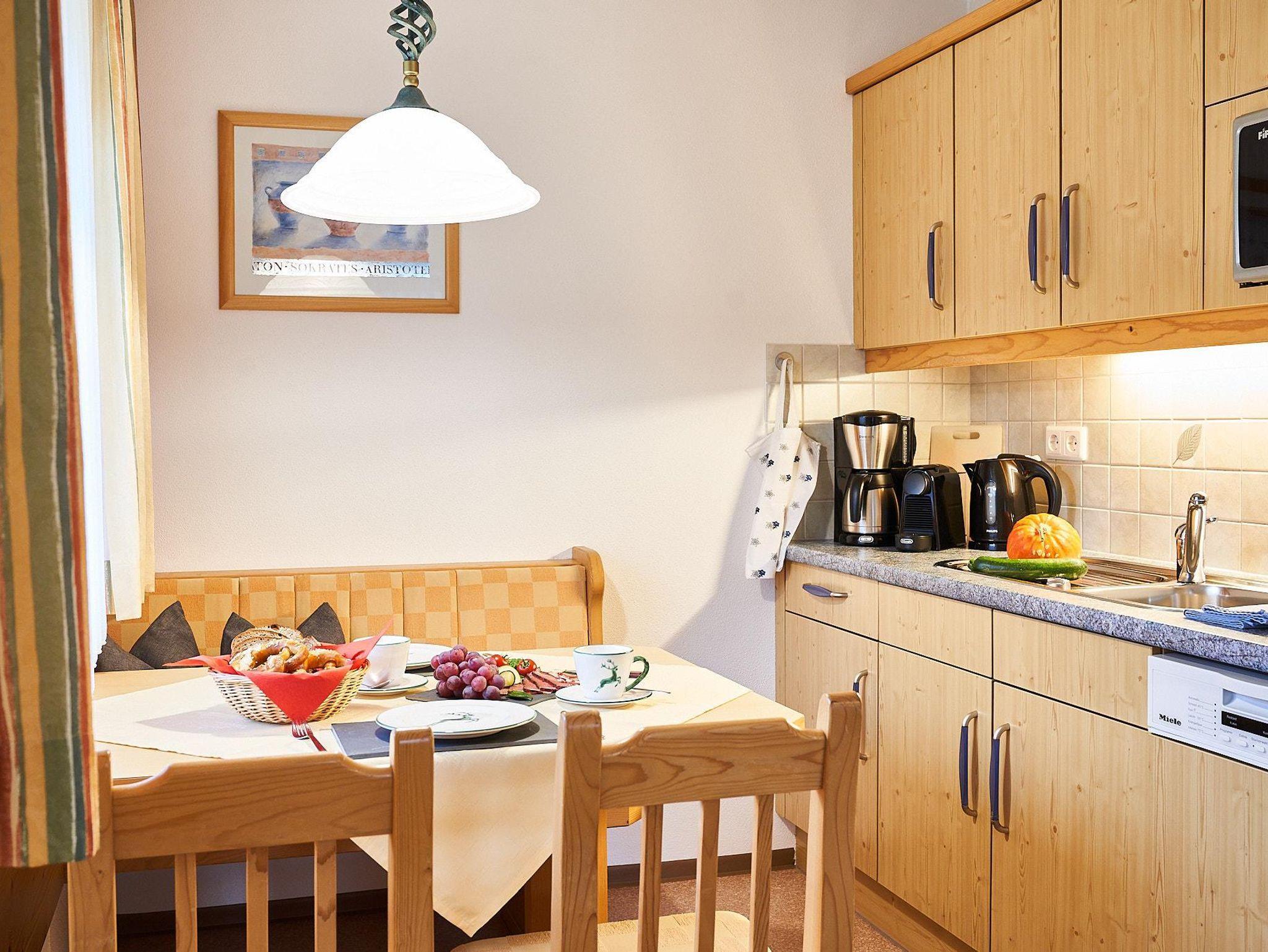 1 Schlafzimmer, Dusche/ WC, Vorraum mit Garderobe, Wohnzimmer mit separater Küche (komplett eingerichtet), Balkon Westseite (direkte Aussicht auf die umliegende Bergwelt)