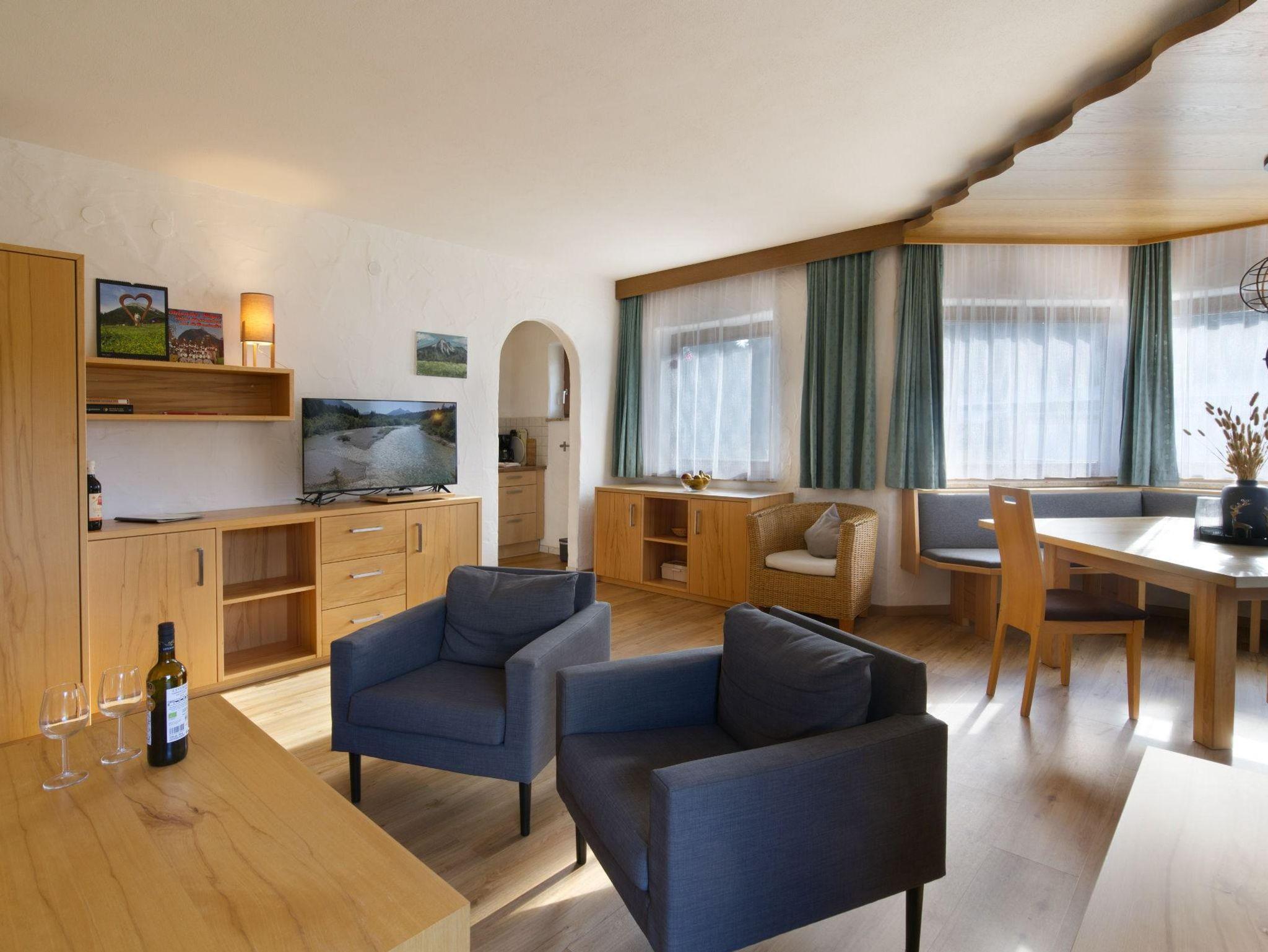 Ferienwohnung Typ C 2-Zimmer-Wohnung mit Schlafraum, Wohnbereich mit Couch, LED-Sat TV, Esstisch mit Stühlen, Badewanne, Duschmöglichkeit, sep.WC, Balkon oder Terrasse, Küche mit Geschirr, Mikrowelle, Toaster, Wasserkocher.