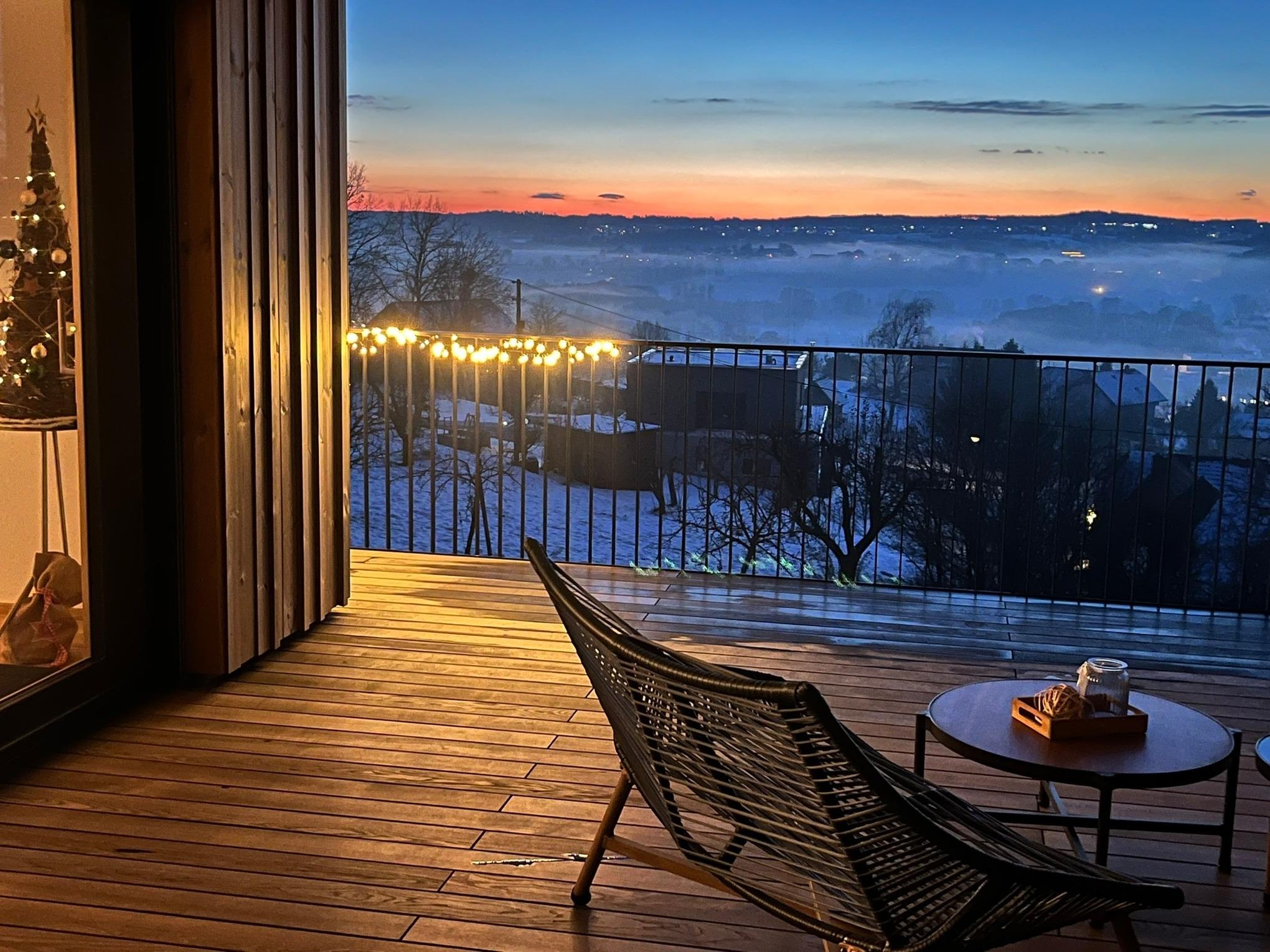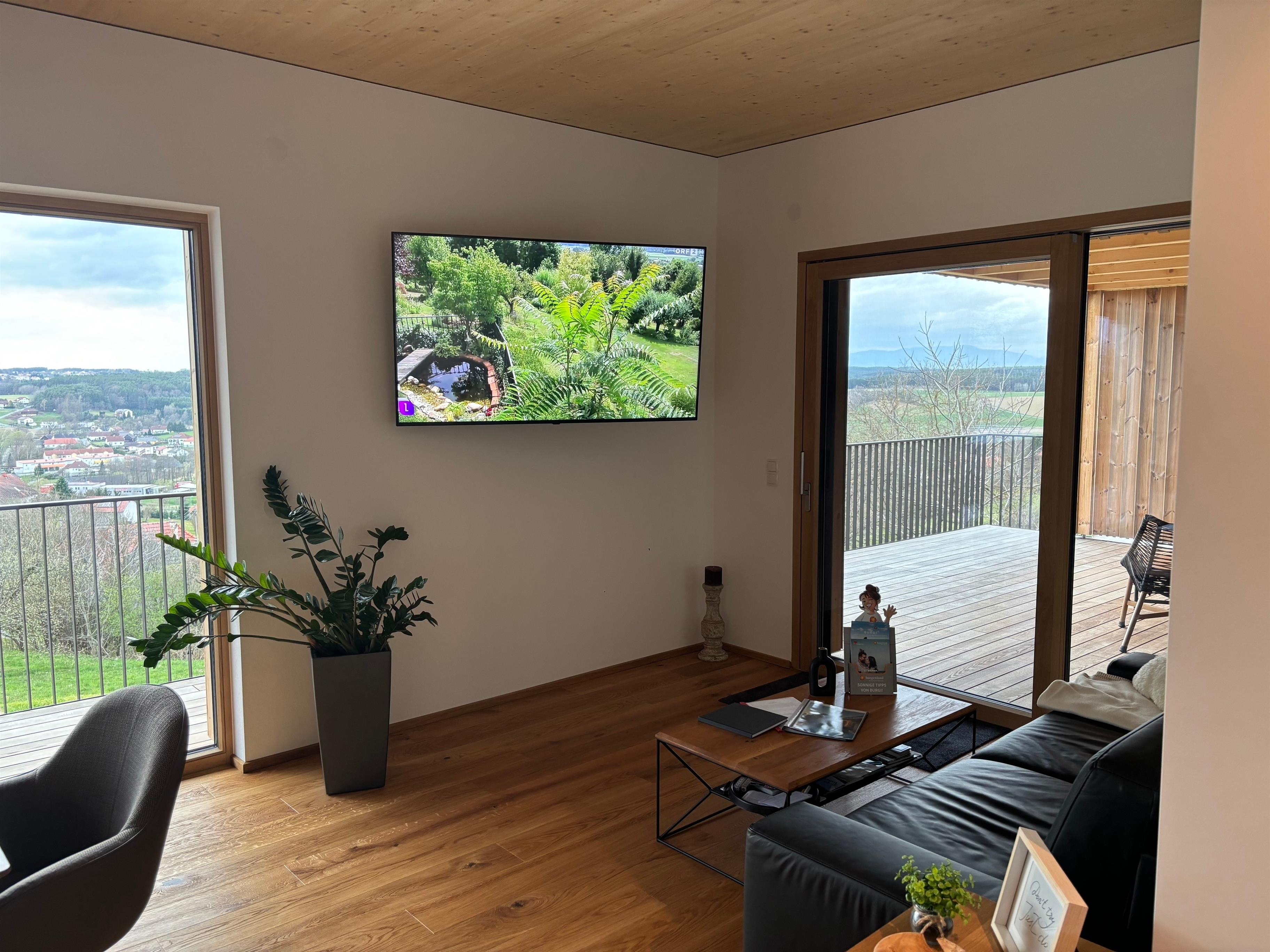 LuckyLiving, das Ferienhaus im Südburgenland. Auf 90 m² bietet es Platz für bis zu 5 Personen und verfügt über 2 Schlafzimmer mit zwei en suite Bädern. ein offener Wohnraum beherbergt eine voll ausgestattete Küche, eine gemütliche Couch und einen Essbereich mit traumhafter Aussicht über die Hügellandschaft des Südburgenlands bis hin zum Pöllauberg, Masenberg bei Hartberg und dem niederösterreichischen Hoch- und Niederwechsel. Zu den Besonderheiten gehört der Außenpool mit Gegenstromanlage und Massagefunktion. Dieser ist nicht nur im Winter ein Highlight, sondern bietet auch im Sommer eine ideale Möglichkeit zum Trainieren, Abkühlen und vor allem Entspannen, begleitet von einer herrlichen Aussicht.