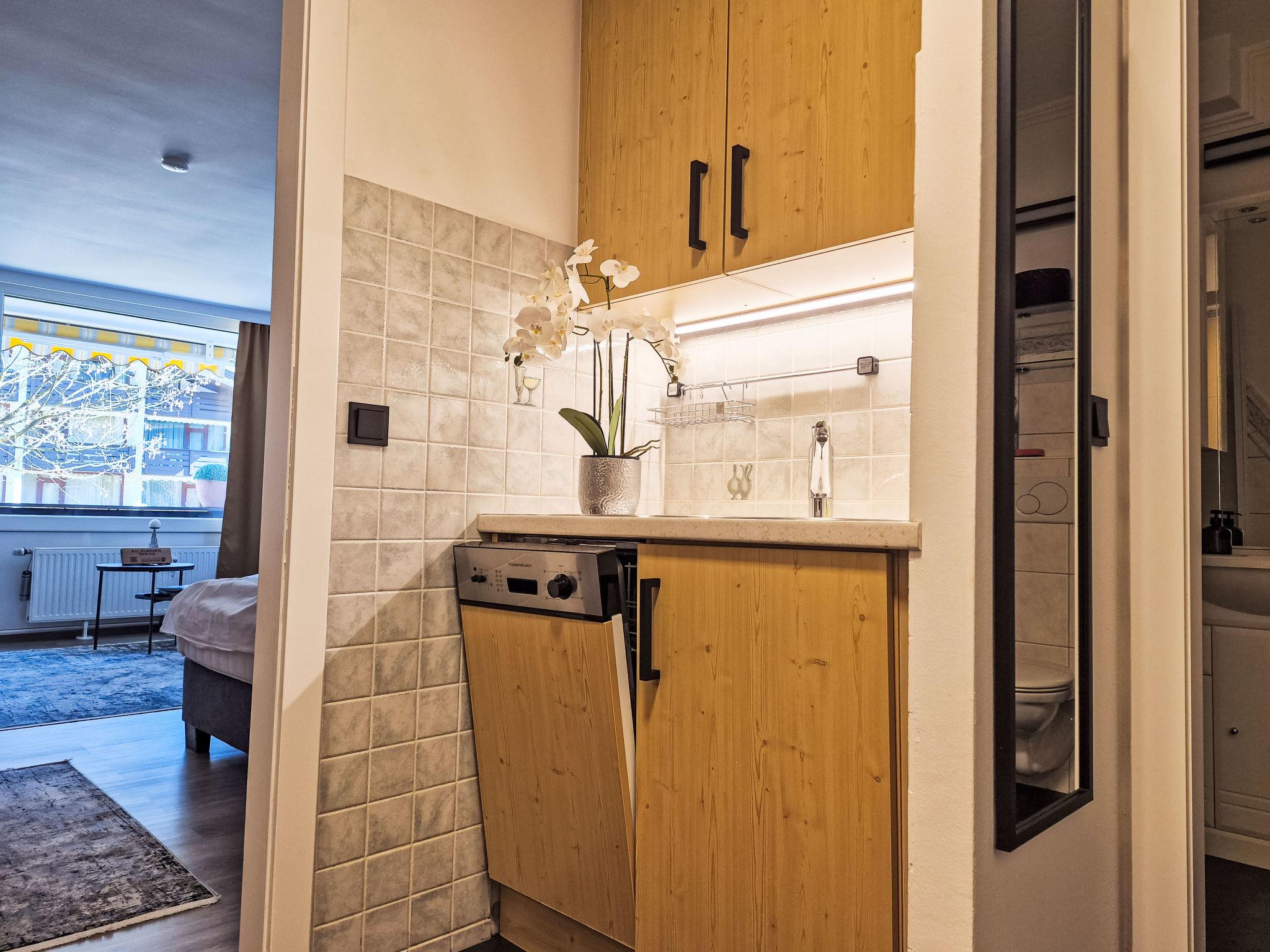 "Zum Goldenen Baum", 1-room apartment 40 m2. Modern and tasteful furnishings: living/sleeping room with 1 sofabed, 1 double bed, dining table and TV. Kitchenette (oven, dishwasher, 4 ceramic glass hob hotplates, kettle, freezer, electric coffee machine). Shower/WC. Heating. Parquet floors. Balcony 7 m2. Balcony furniture. Very beautiful view of the mountains. Facilities: Internet (WiFi, free). Please note: non-smokers only. Smoke alarm, fire extinguisher. A charmingly renovated and very well-maintained apartment with great attention to detail.