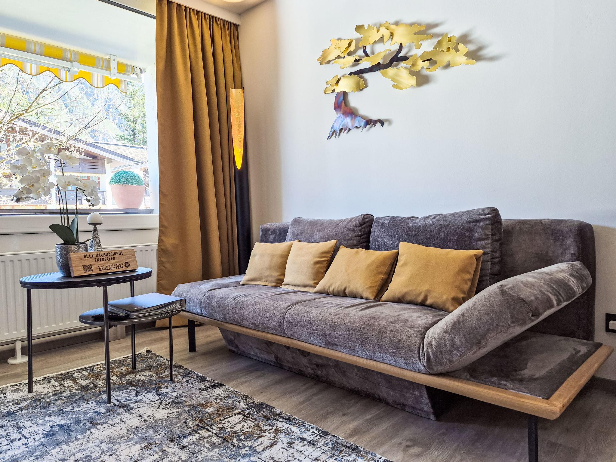 Sankt Martin bei Lofer: A charmingly renovated and very well-maintained apartment with great attention to detail. E-charging station approx. 50m away, Type 2 connector. Cosy apartment block "Grubhof". In the resort, 1 km from the centre, in a central, quiet position, 1.5 km from the skiing area. For shared use: indoor pool heated (15 x 6 m, seasonal availability: 16.Dec. - 31.Oct.). In the house: fitness room, solarium (extra). Storage room for bicycles, storage room for skis, washing machine (extra), tumble dryer (for shared use, extra). Parking at the house. E-charging station. Supermarket, restaurant, bakery 500 m, bus stop 100 m, thermal baths 1 km. Golf course (8 hole) 15 km, ski lift 1.5 km, slopes 1.5 km, ski bus stop 50 m. Well-known lakes can easily be reached: Ritzensee 25 km, Moorbad Hochmoos 1 km.