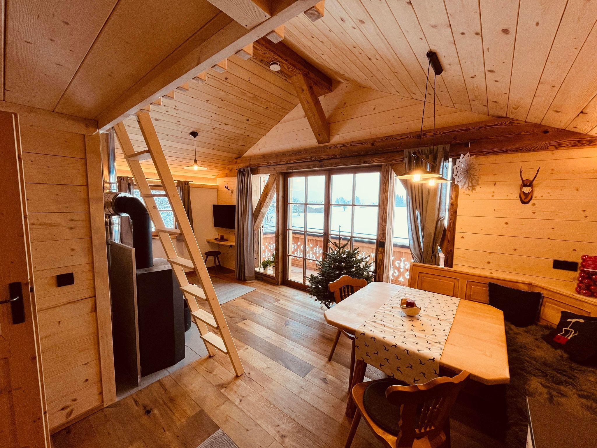 Unser Chalet wurde 2024 neu errichtet und verbindet moderne Technik mit traditionellem Baustil. Als Anlehnung an eine Almhütte soll unser Chalet gemütlichkeit und behaglichkeit bieten, trotzdem wird auf die modernen Vorzüge wie Fußbodenheizung, Waschmaschine, vollausgestattete Küche usw. nicht verzichtet. Zusätzlich bietet der Holzofen noch eine weitere bequeme Wärmemöglickeit.
