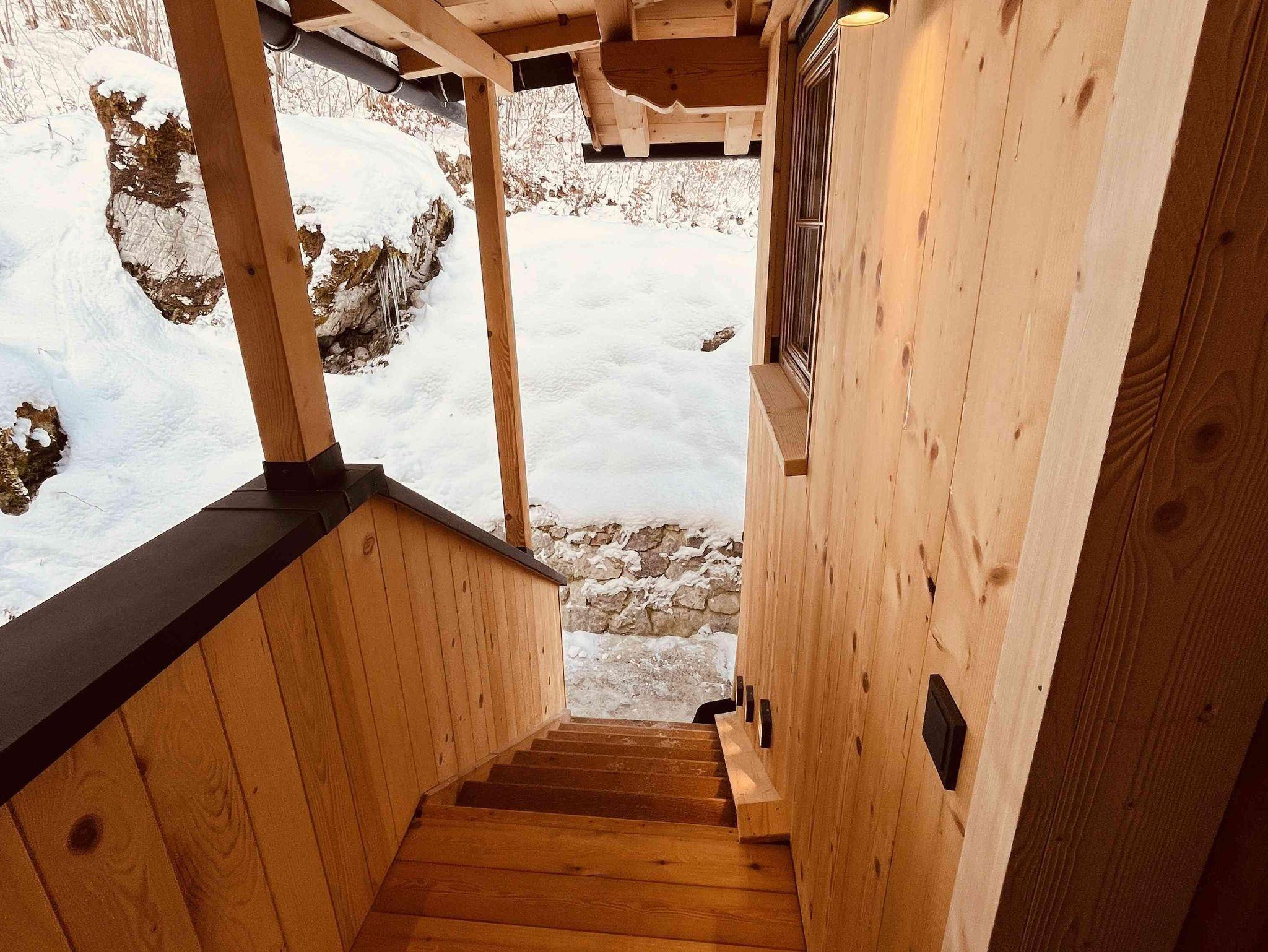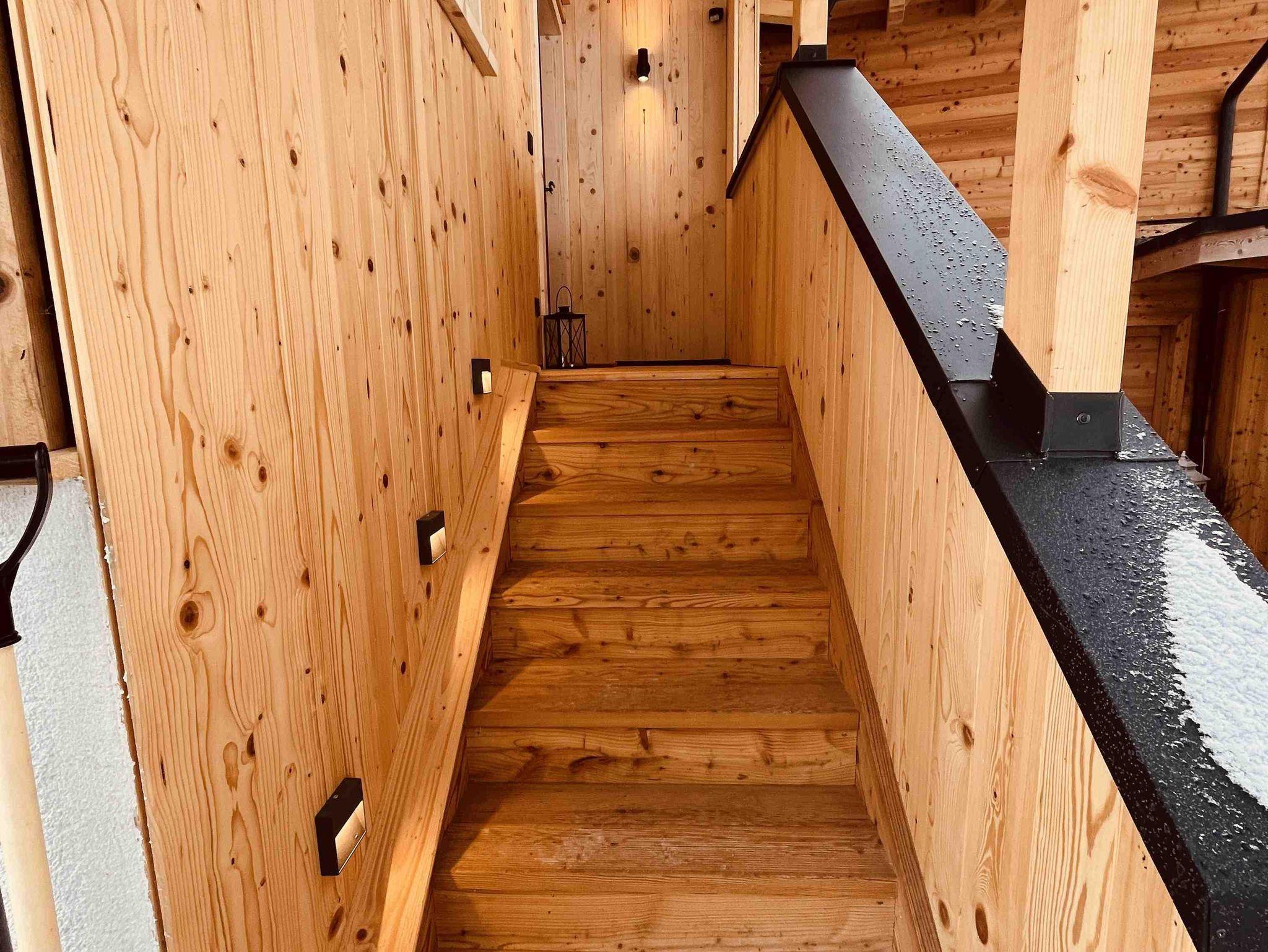 Das Chalet ist durch einen eigenen direkt angrenzenden Parkplatz mit eigenem Zugang komplett eigenständig.