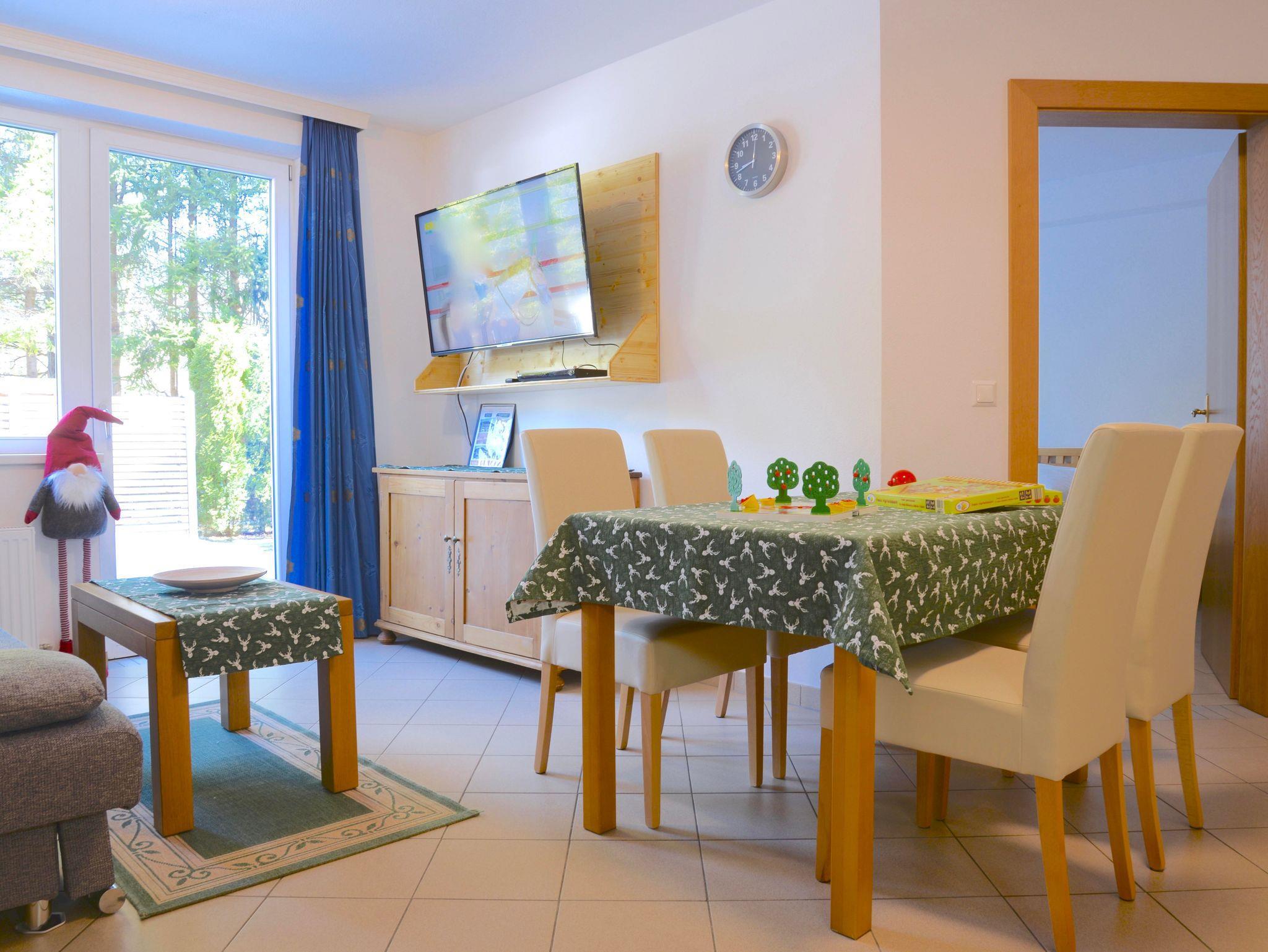 Bei uns sind Sie genau richtig! Ein gemütliches Apartment mit einem Schlafzimmer, Garten, Badezimmer, Essbereich, Wohnzimmer und voll ausgestatteter Küche. Im Schlafzimmer gibt es ein Doppelbett und ein Stockbett. Flachbildschirm-Fernseher und DVD-Player vorhanden. Diese Wohnung hat eine Terrasse auf der Nordseite mit einem 20 m2 Garten, um die ruhigen Klänge der Natur zu genießen, einschließlich das sanfte Rauschen des Saalach Flusses direkt hinter den Bäumen. Natürlich bieten wir kostenfreies WLAN, Tücher, Bettwäsche und Fön an.