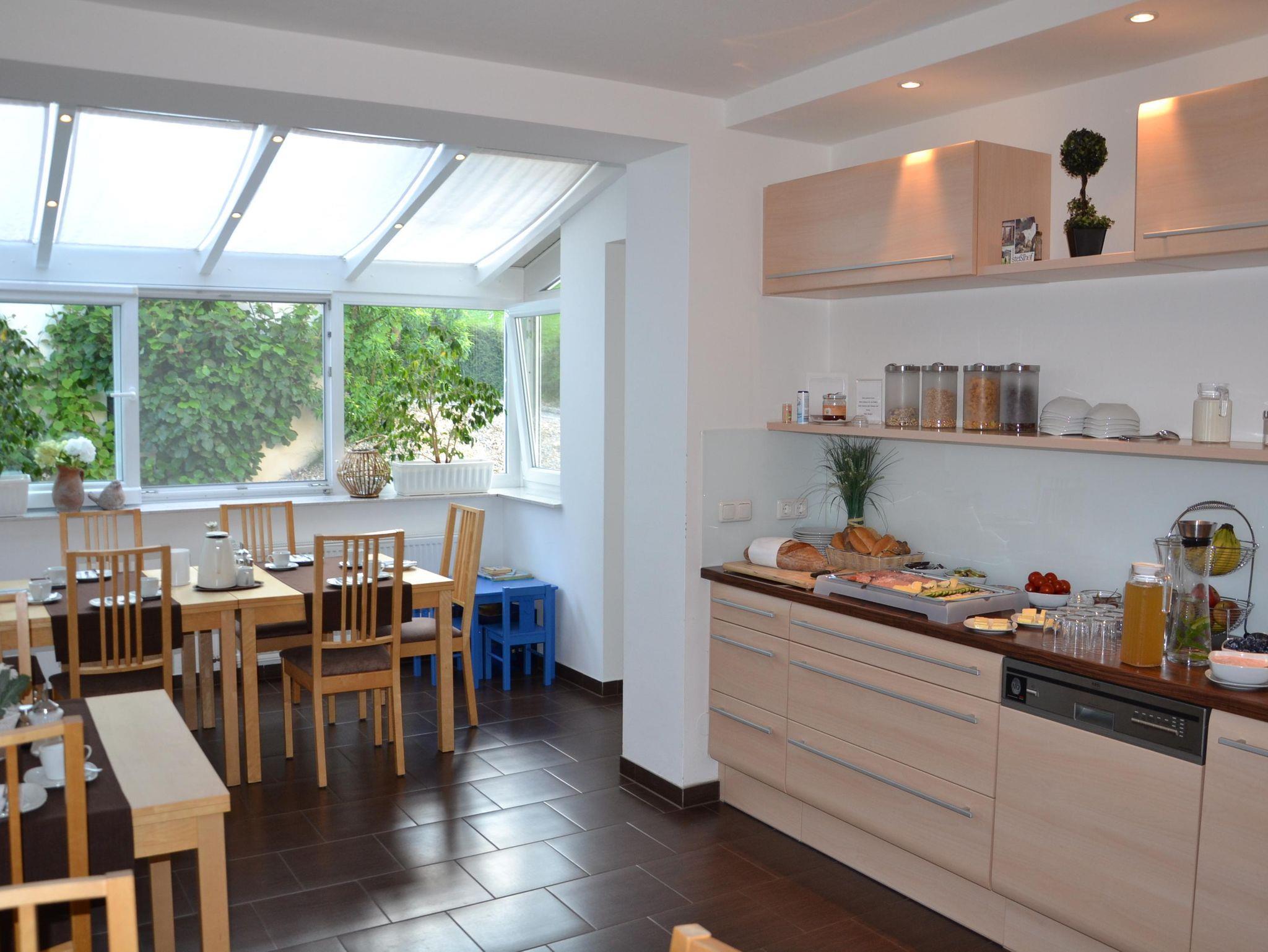 Genießen Sie ein herzhaftes Frühstücksbuffet in unserem einladenden Frühstücksraum und die morgendliche Frische der Landschaft in vollen Zügen erleben.