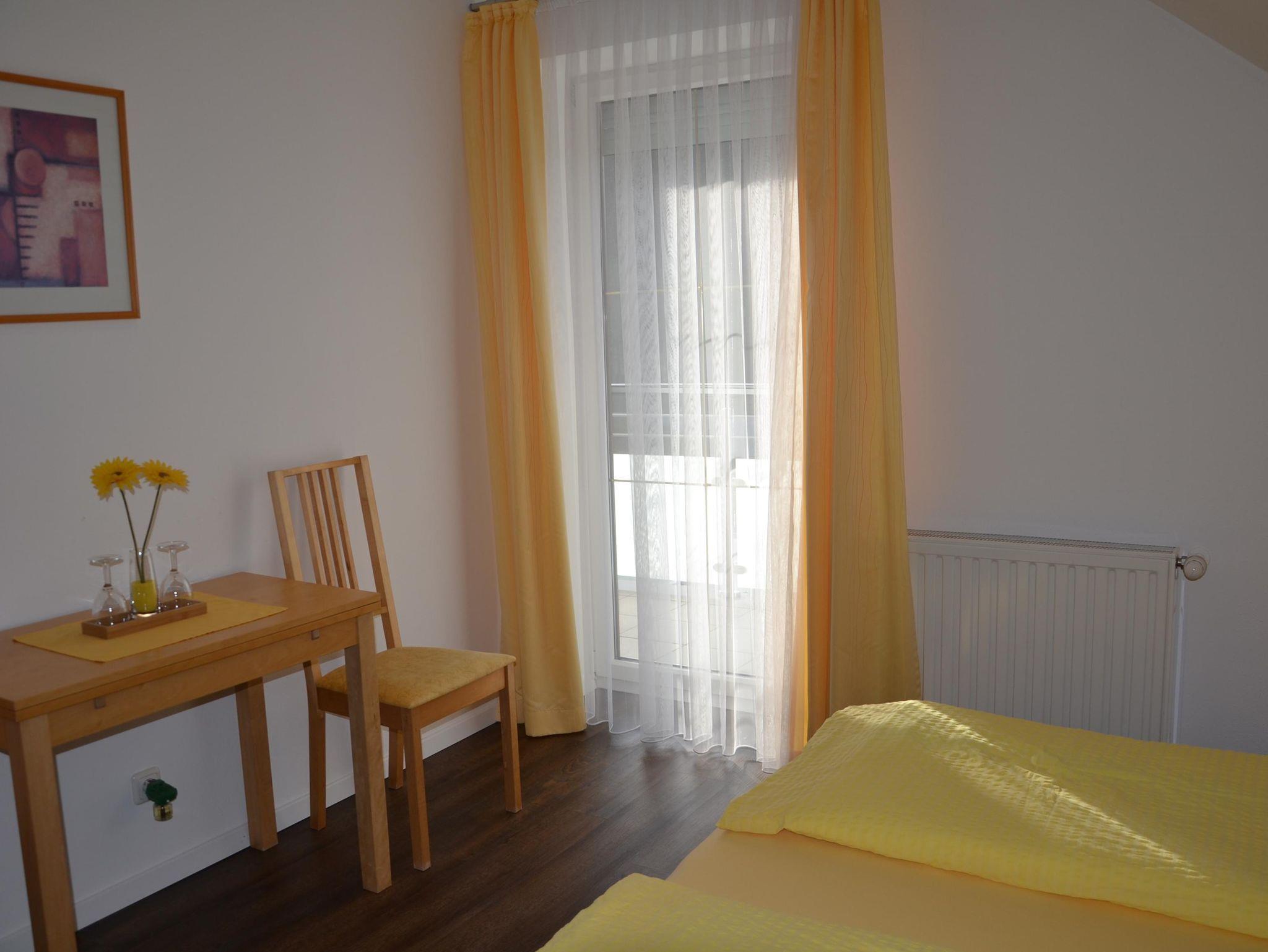 Unsere Ferienwohnung ist ca. 60 m2 groß und bietet für 2-6 Personen Platz. Die Ferienwohnung besteht aus zwei getrennten Schlafzimmern (ein Vierbett-und ein Doppelbettzimmer mit kompleteingerichteter Küchennische, mit Sat-TV, Balkon,Dusche/WC und einem Vorraum. Bäckerservice. Auch mit Frühstücksbuffet buchbar. Alle Nichtraucherzimmer (Balkon).