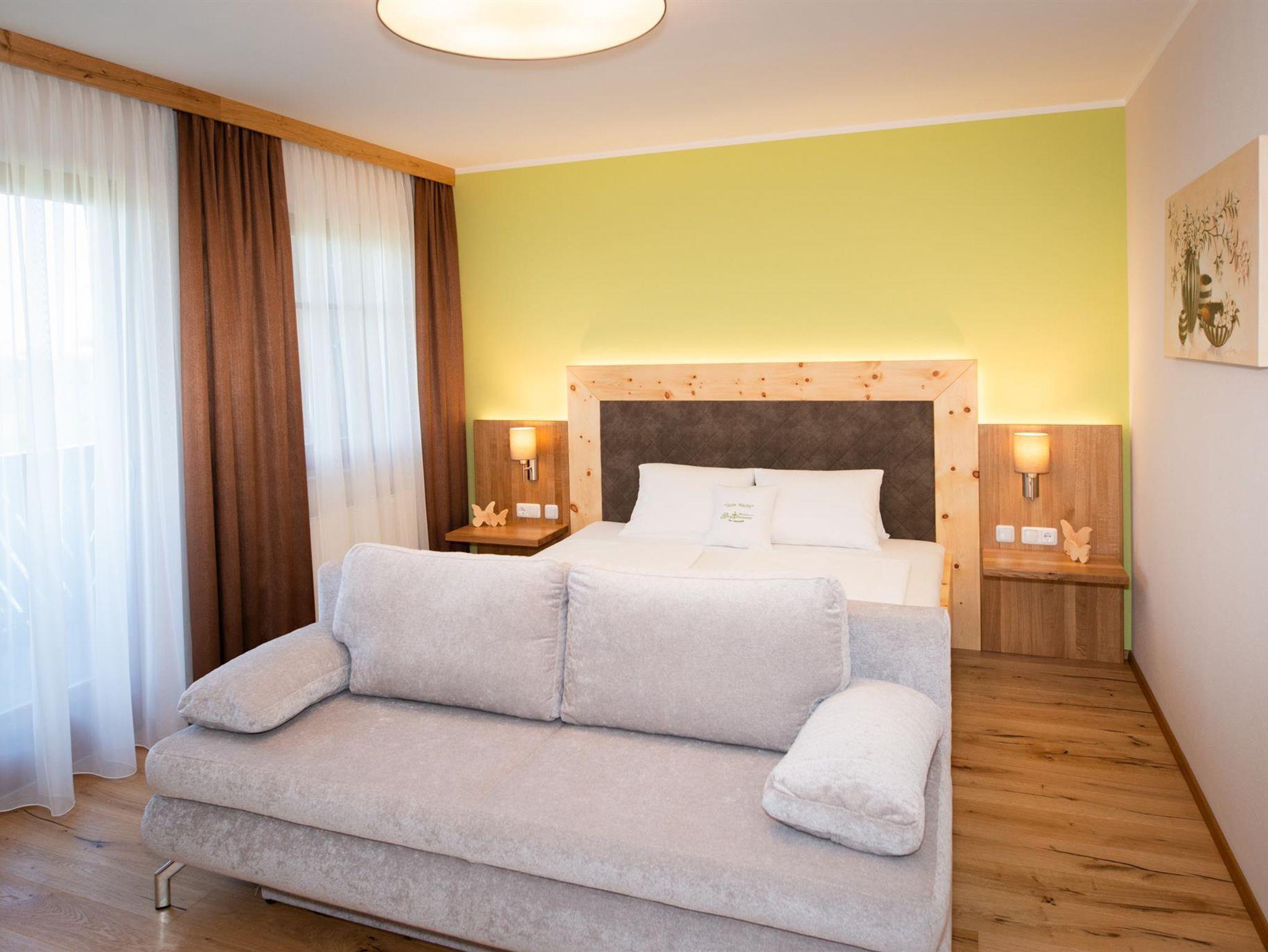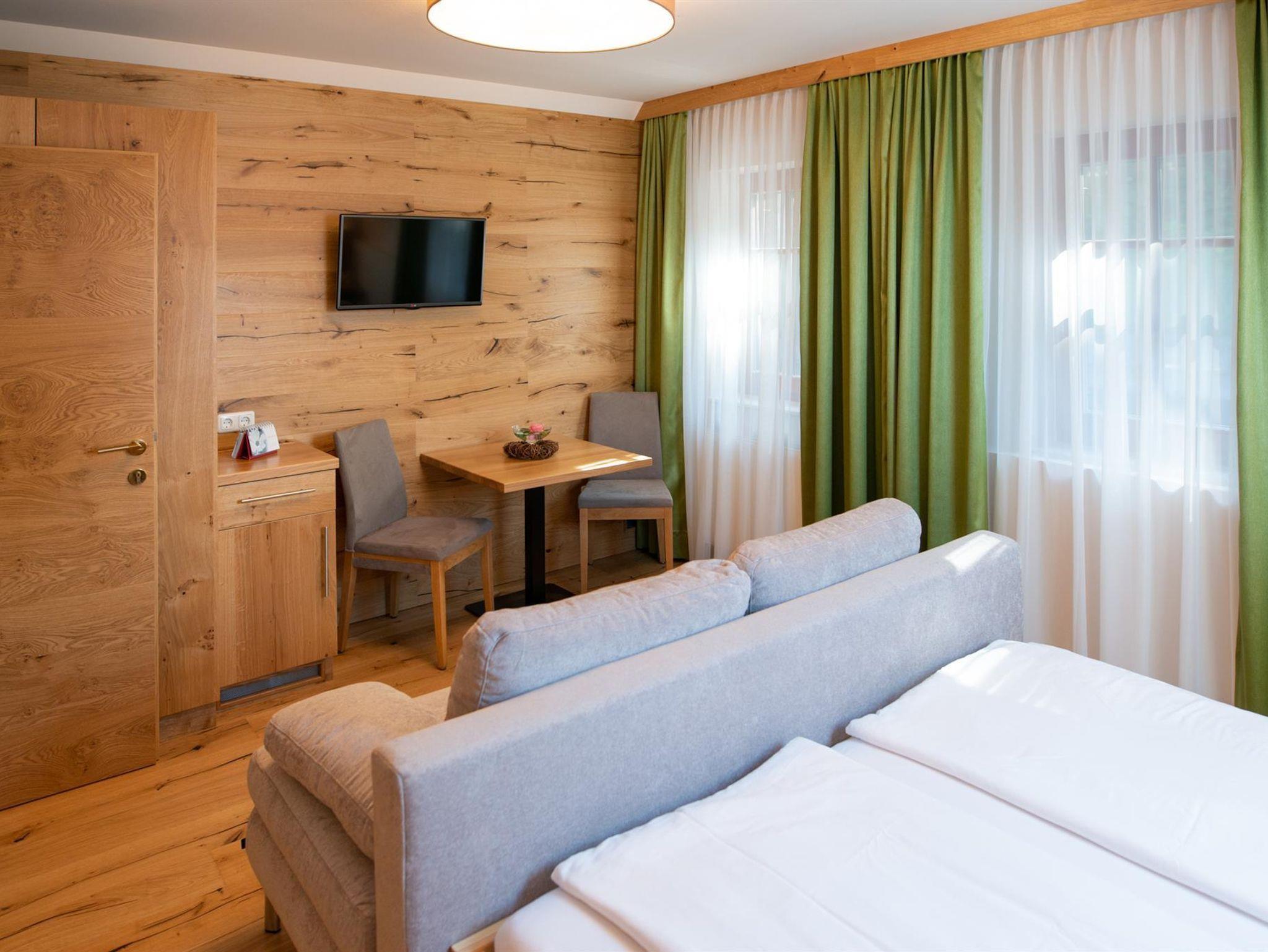 Die 2018 neu renovierten, mit Massivholz Zirbenbetten und Eichenholz Möbel eingerichteten Zimmer sind mit eigenem Vorraum, Bad & WC, SAT-TV und Teletext, WLAN, Gästekühlschrank, Zimmersafe, gemütliches Sofa & Haarfön ausgestattet.