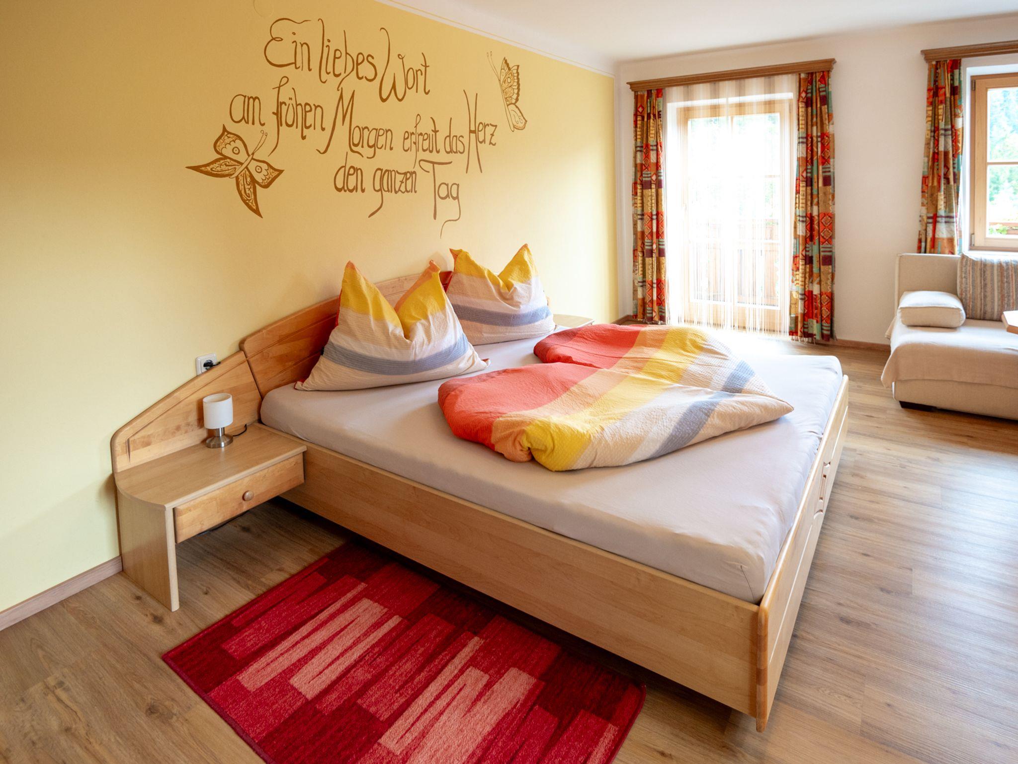 Unsere sonnige Ferienwohnung im ersten Stock des Bauernhauses ist ein Ort zum Ankommen und Durchatmen – ideal für Paare oder kleine Familien, die Ruhe und Gemütlichkeit suchen.