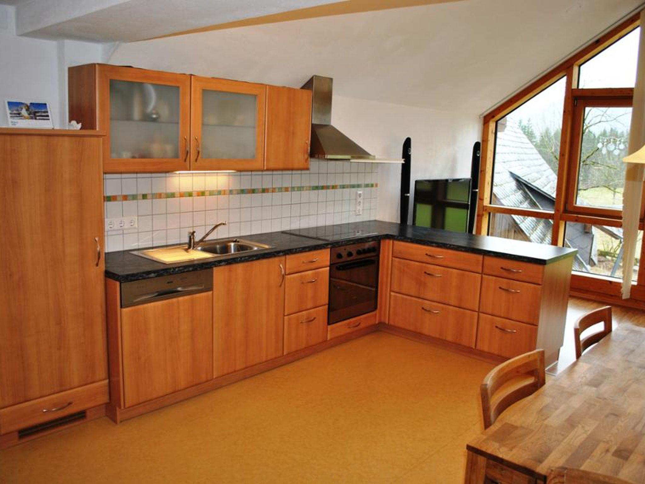 Die Küche ist mit einem Kühlschrank, einem Kochfeld, einem Backrohr, einem Wasserkocher, einer Kaffeemaschine und einem Geschirrspüler bestens ausgestattet.