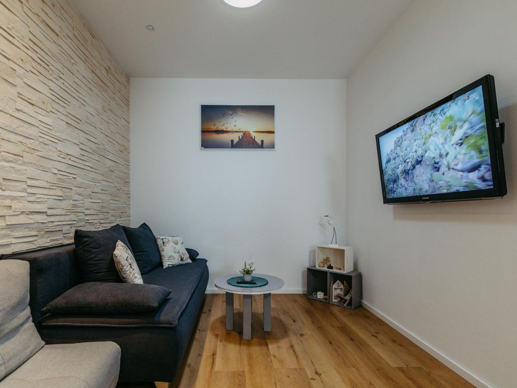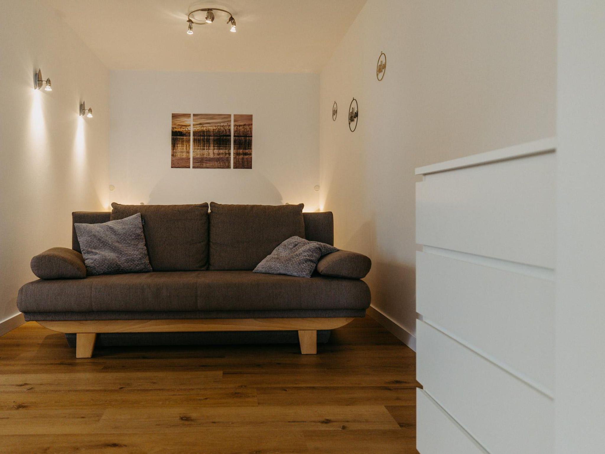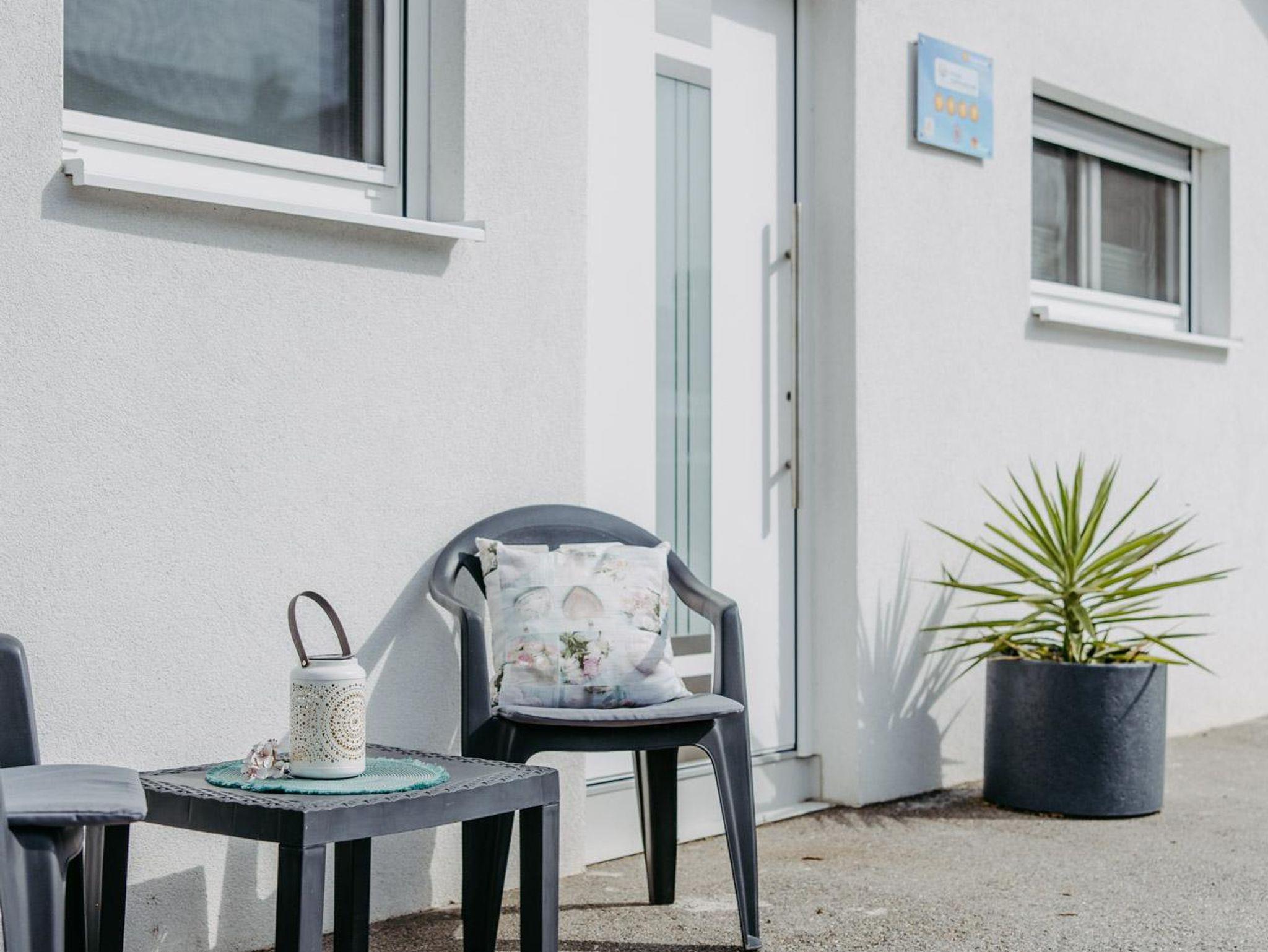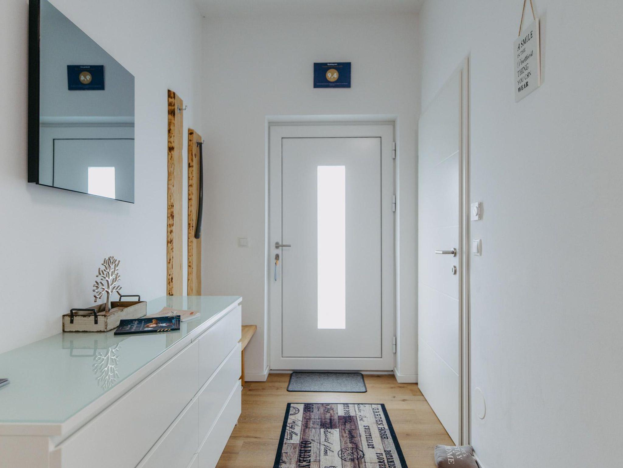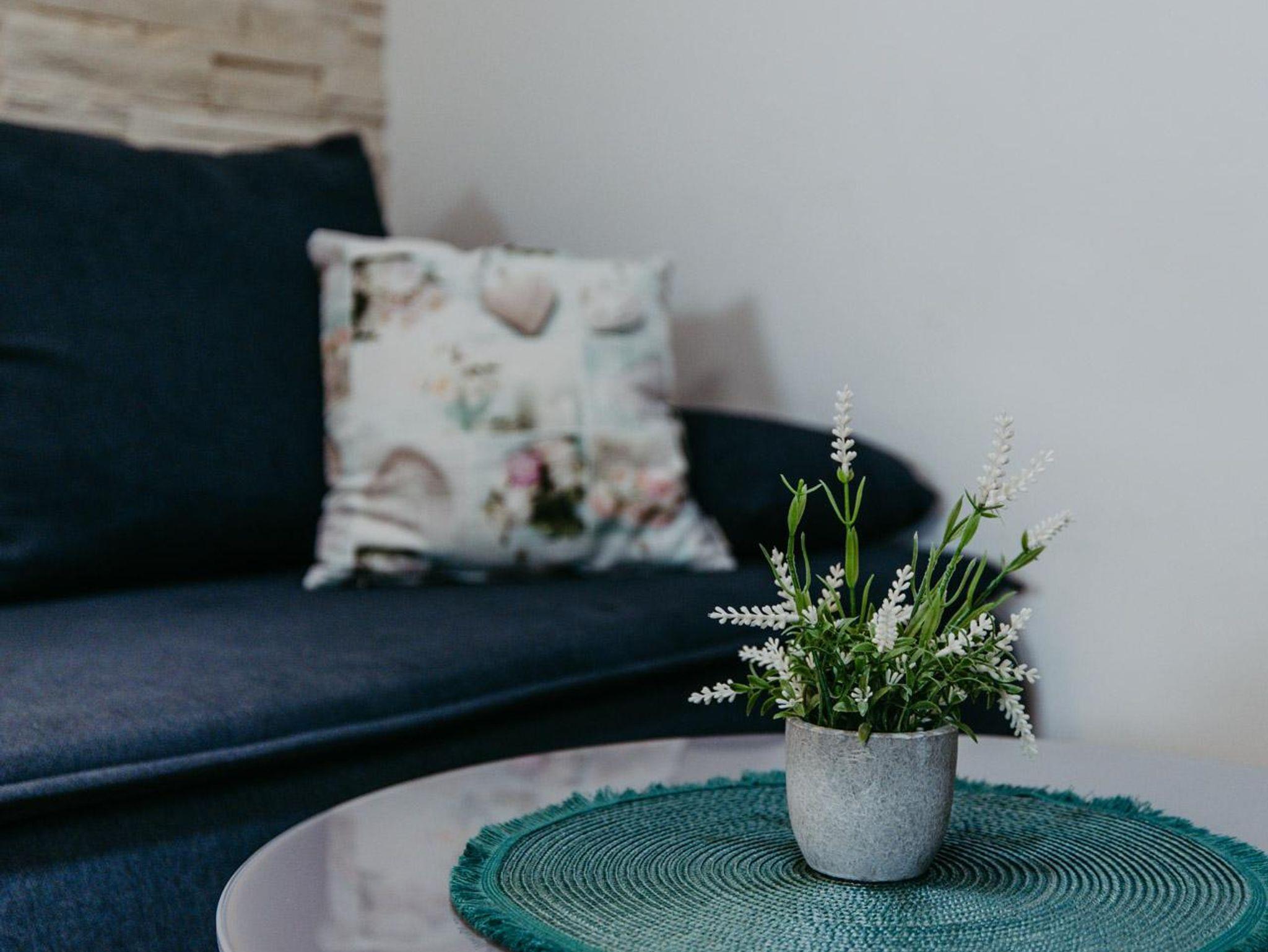 Ferienwohnung Marlena bietet eine Klimaanlage für heiße Sommertage. Im Eingangsbereich bietet sich eine gemütliche Ecke an, um den Tag mit der Morgensonne zu beginnen oder den Tag entspannt ausklingen zu lassen.