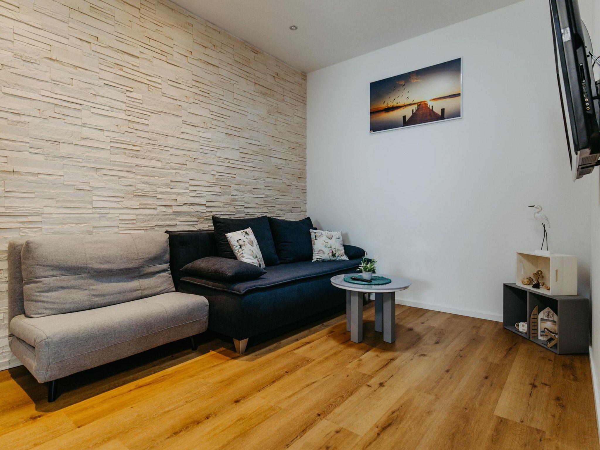 Unsere 45 m² Ferienwohnung Marlena unterteilt sich in einen sehr gemütlichen und mit viel Liebe eingerichteten Wohn-Essbereich. Die erstklassig ausgestattete offene Wohnküche bietet alles für ein gemeinsames Frühstück, Mittag- und Abendessen mit der ganzen Familie. Die Couch kann zum Schlafen von einer Person genutzt werden, aber auch ausgezogen für zwei Personen. Der große Flat-TV und das kostenlose WLAN sorgen für Unterhaltung bei Groß und Klein. Ein separates Schlafzimmer mit Doppelbett lädt zum gemütlichen Schlaf ein. Das modern eingerichtete Badezimmer ist mit WC und Dusche ausgestattet.