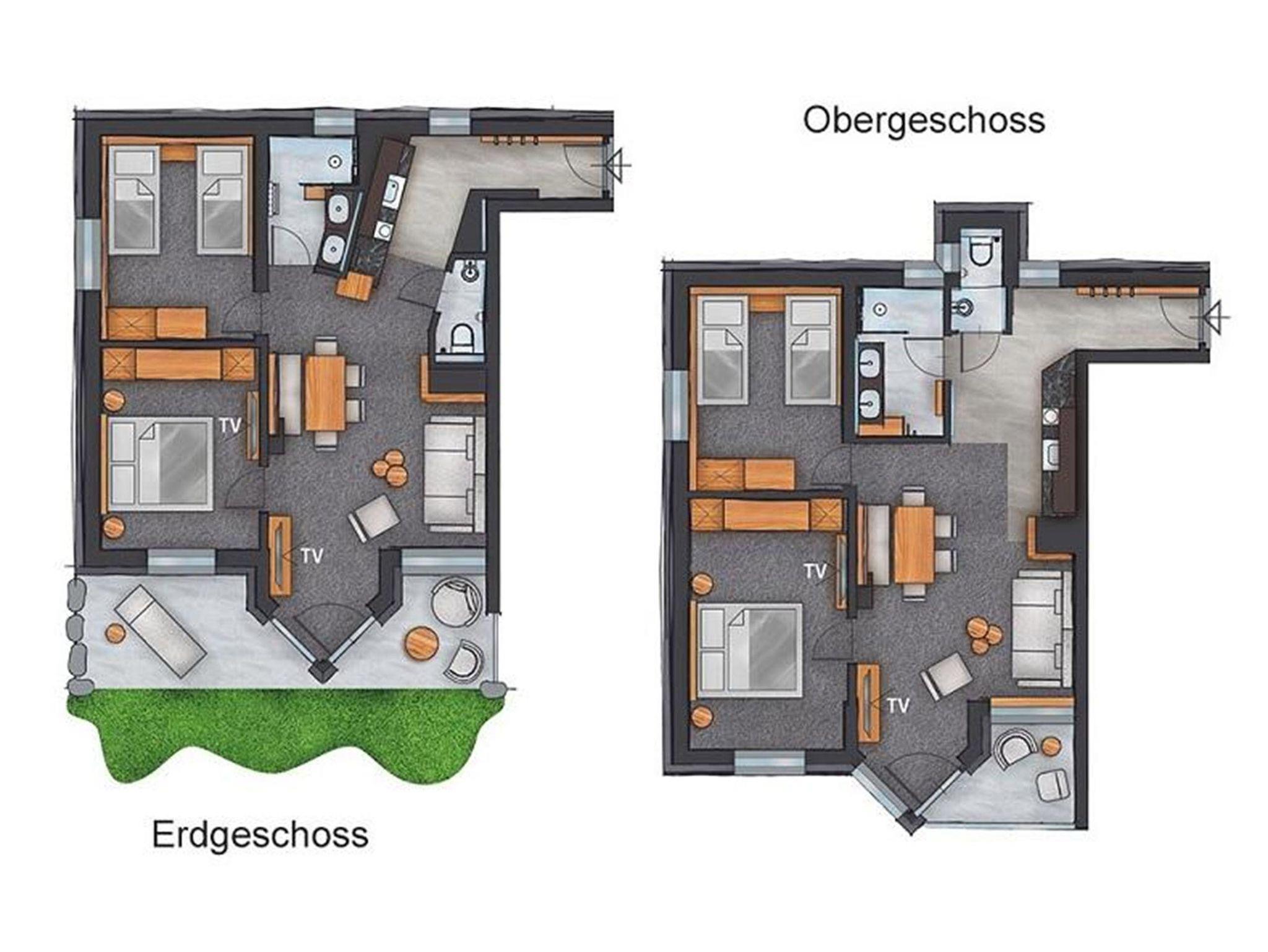 Eine großzügige Raumaufteilung mit 2 separaten Schlafzimmern und einem Schlafsofa für zwei weitere Personen schaffen die besten Bedingungen für einen Aufenthalt mit der ganzen Familie oder Freunden. Unser Hoamatl Tirol hat eine Terrasse mit direktem Zugang auf die großzügige Liegewiese oder einen Balkon.
