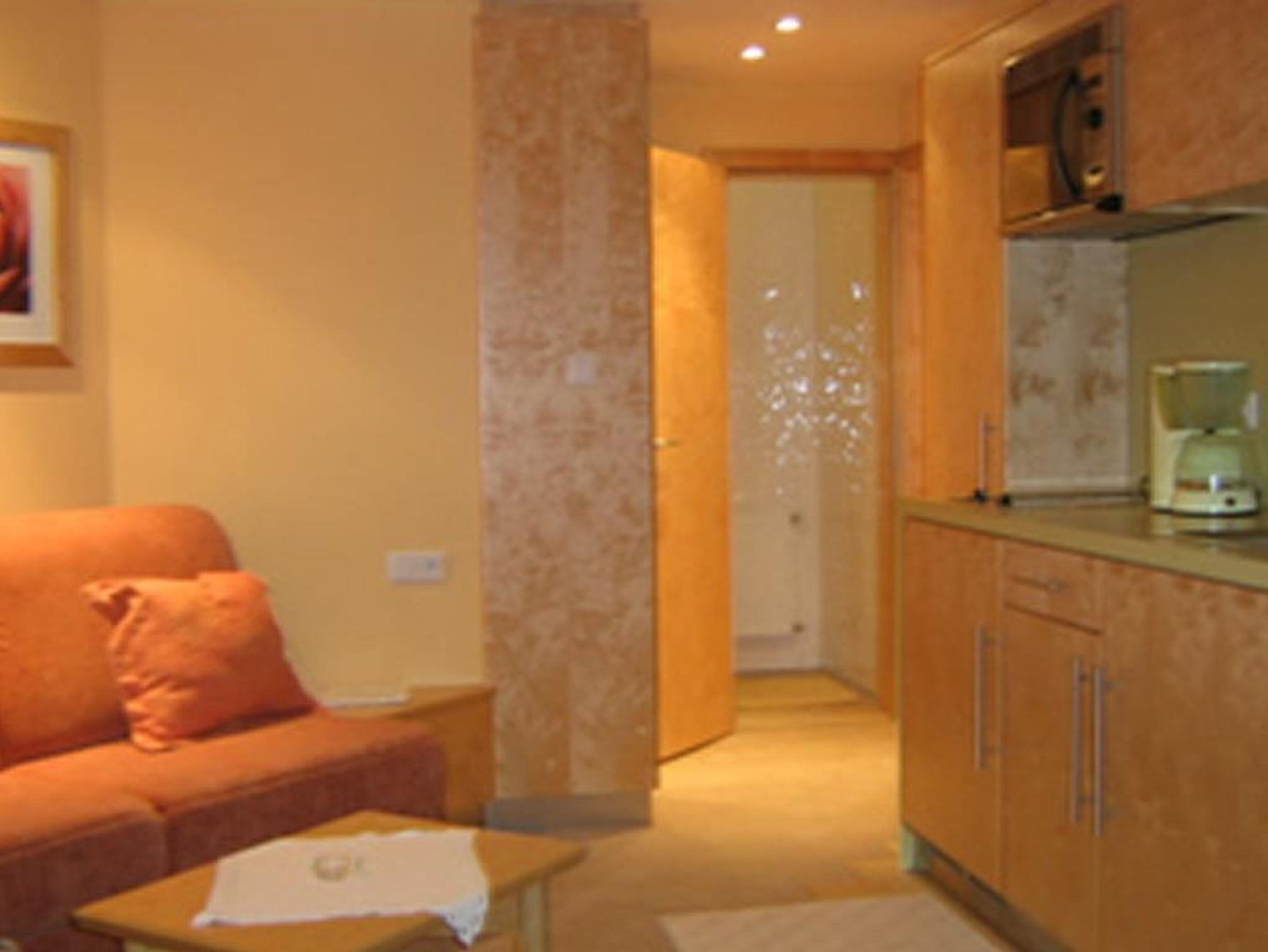 Das Wohnerlebnis der besonderen Art in unseren kuscheligen Appartements. Getrennter Wohn- und Schlafbereich, Kochnische mit Microwellenherd, Kühlschrank, Kochplatten, Badezimmer mit Badewanne, separates WC, Telefon, W-LAN kostenlos. Auf Wunsch bieten wir auch Brötchenservice aufs Zimmer.