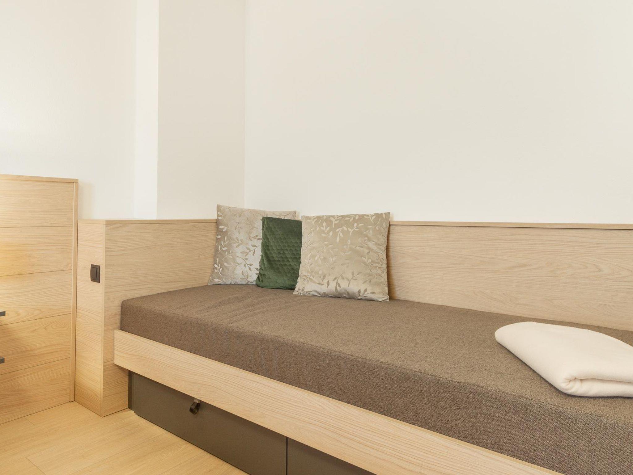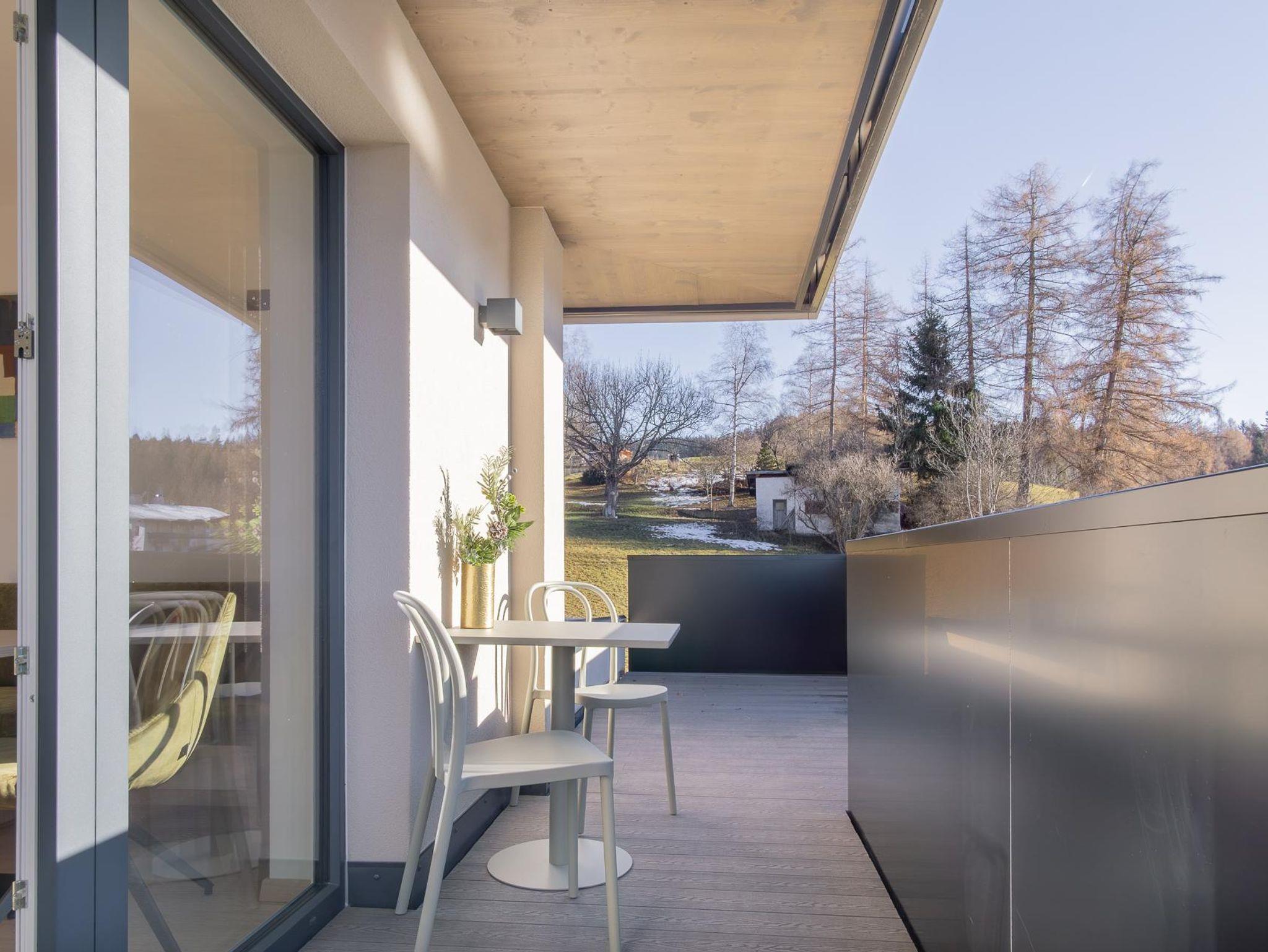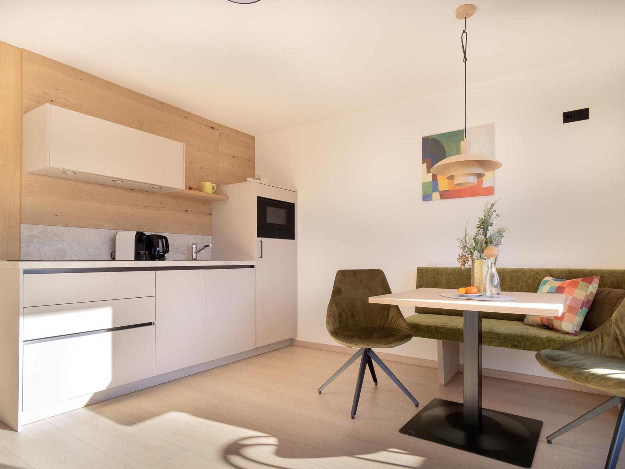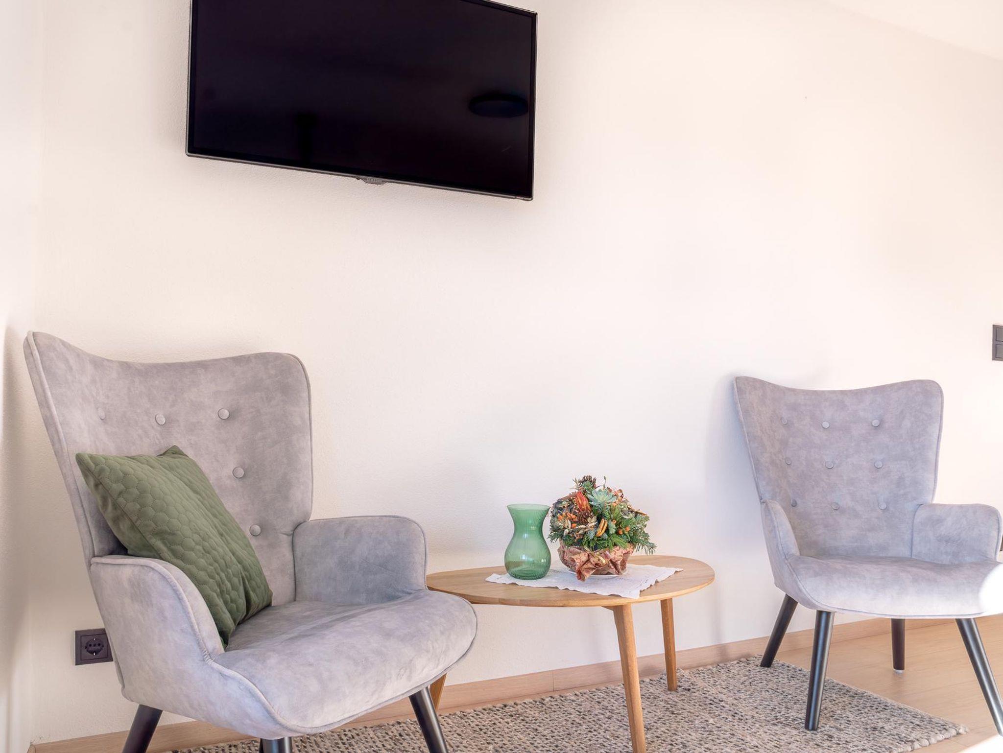 Appartement 1 mit Schlafzimmer und Schlafcouch für 3.Person oder Kind. Wohnzimmer mit Küchenzeile, großes Bad mit Dusche und WC extra. Balkon mit kleiner Terasse. Parkettböden. Ausblick auf Wald, Wiese, Berge und ins Tal. Alles wurde neu errichtet und mit einer persönlichen Note liebevoll eingerichtet.