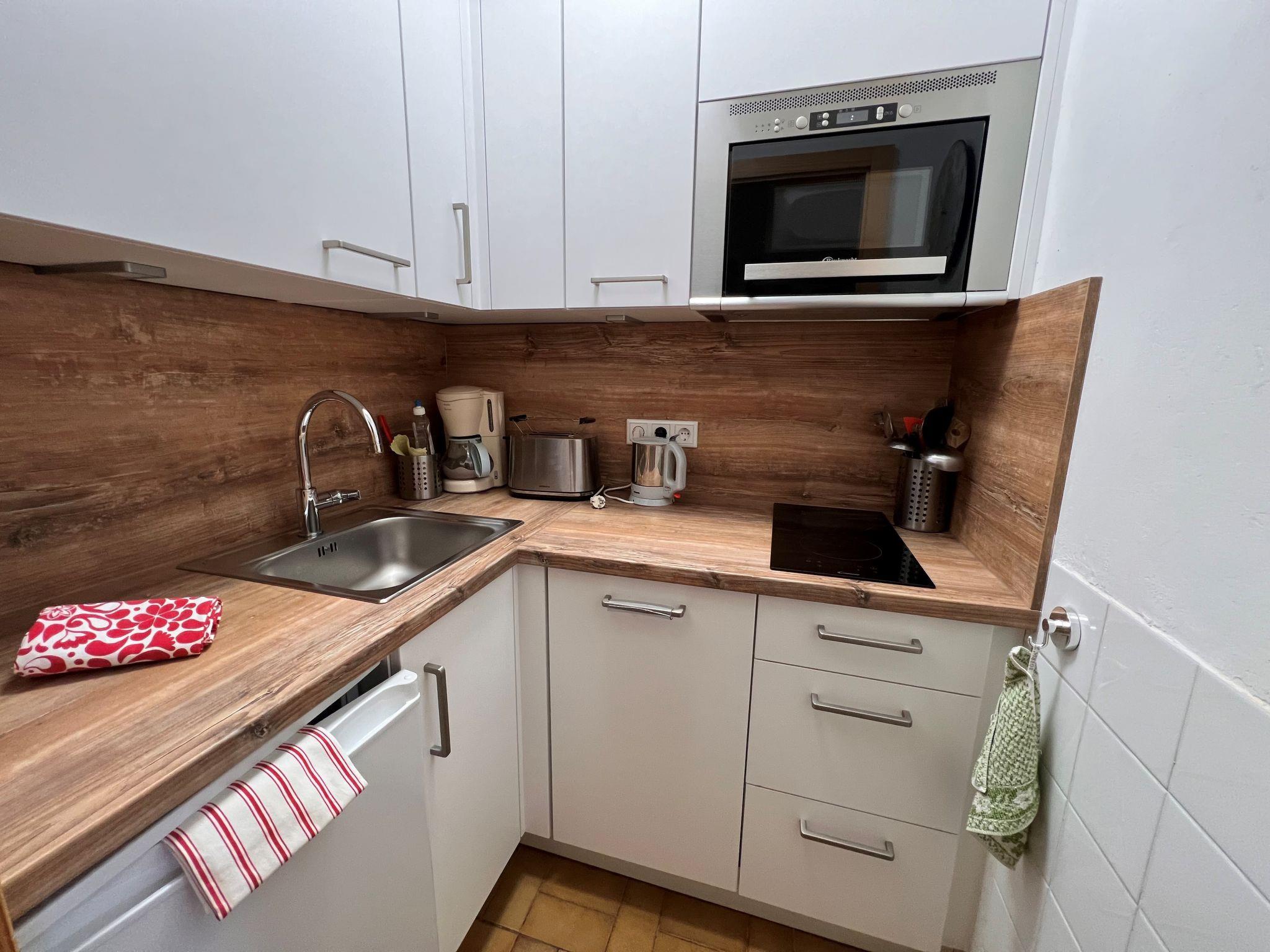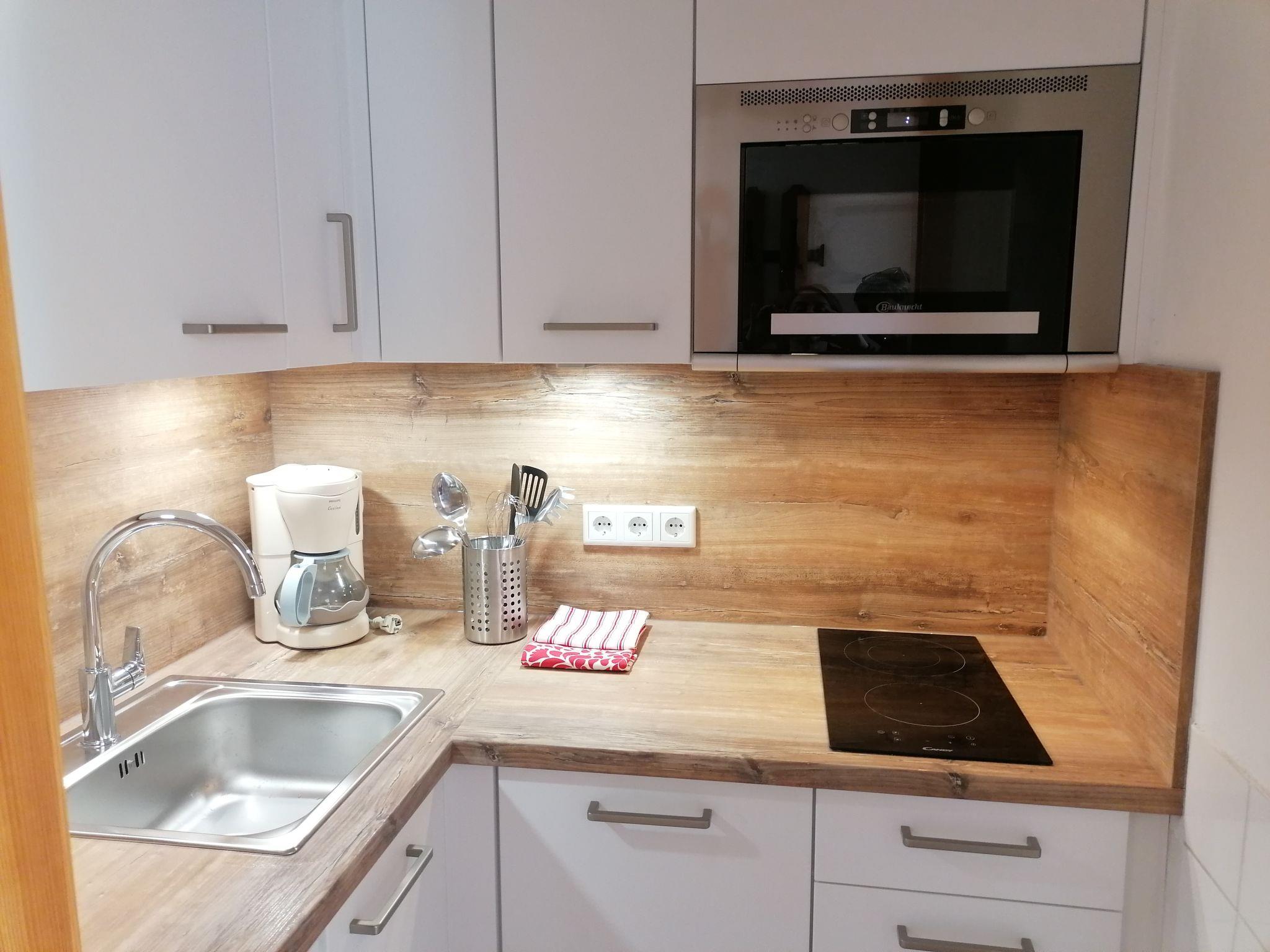 "Appartement Andrea", 2-room apartment 39 m2 on 4th floor. Bright, beautiful and cosy furnishings: entrance hall. Living/sleeping room with 1 double sofabed and satellite TV (flat screen), radio. Exit to the balcony. 1 room with 2 x 2 bunk beds (90 cm, length 190 cm). Small kitchen (dishwasher, 2 ceramic glass hob hotplates, toaster, kettle, electric coffee machine, combination microwave). Shower/WC. Balcony. Balcony furniture. Very beautiful view of the mountains and the countryside. Facilities: Internet (WiFi, free). Parking (1 car). Please note: suitable for families. Non-smokers only. 1 pet/ dog allowed. Smoke alarm, fire extinguisher. Newly renovated bathroom! 50415-006726-2020