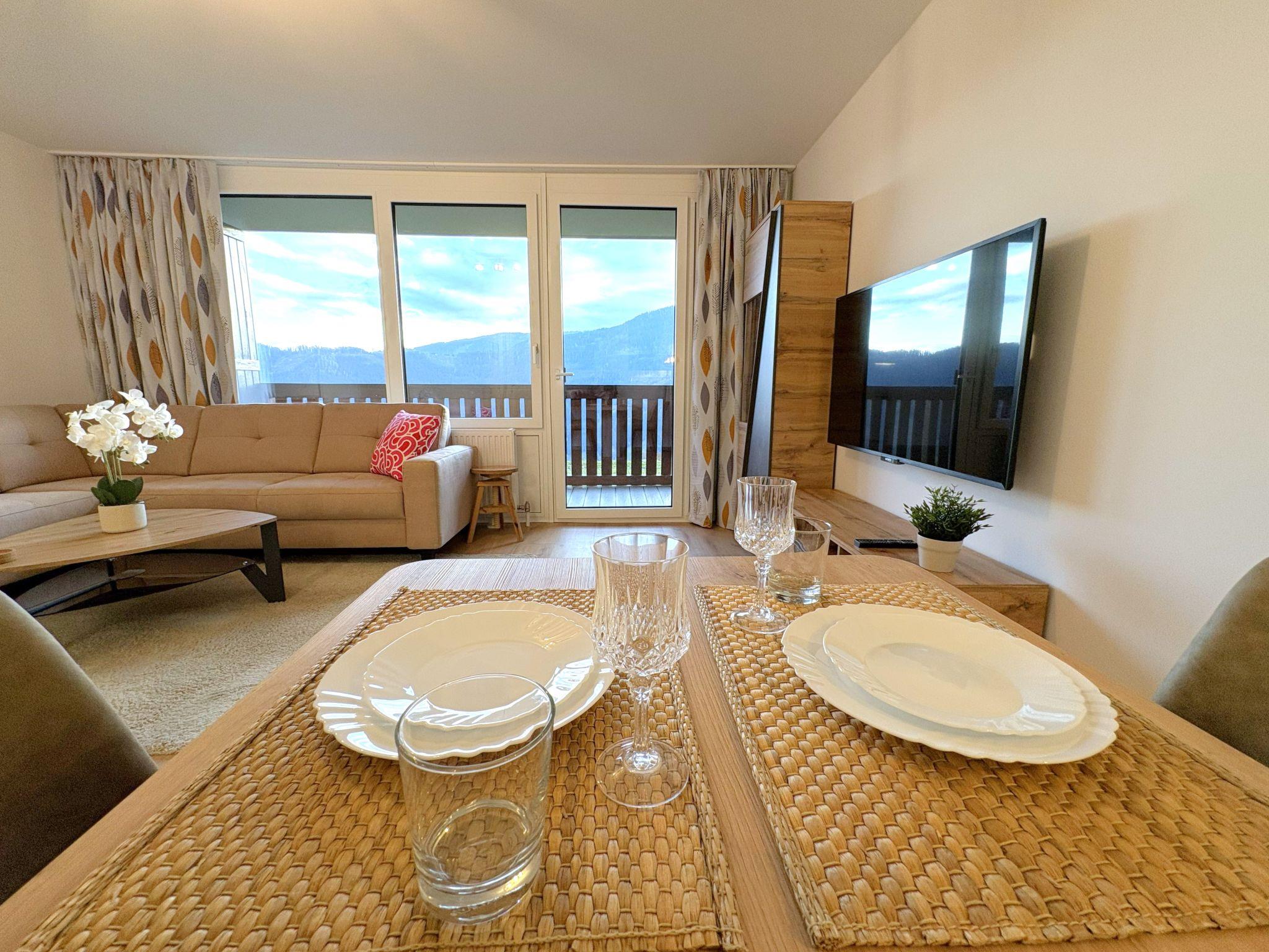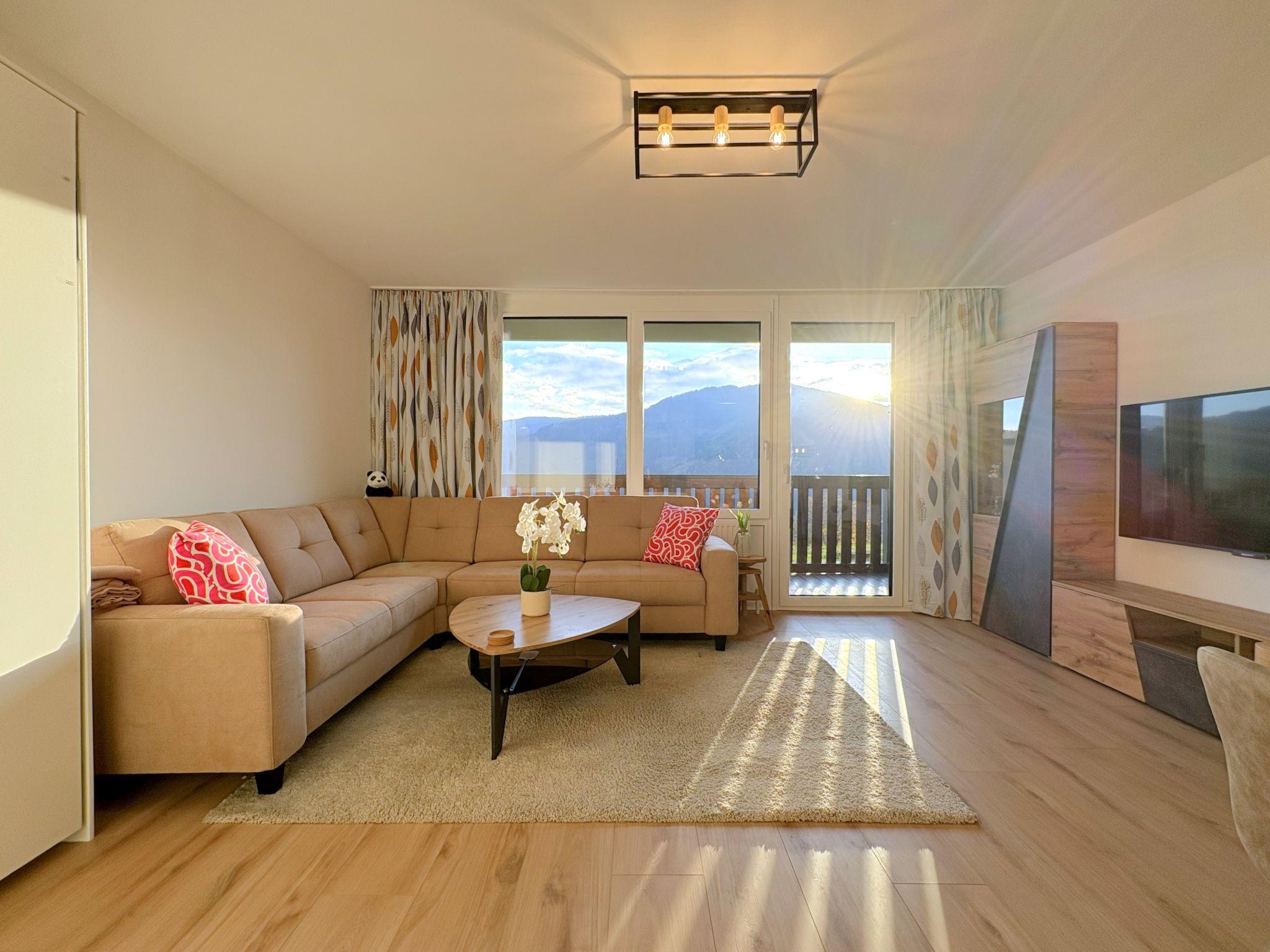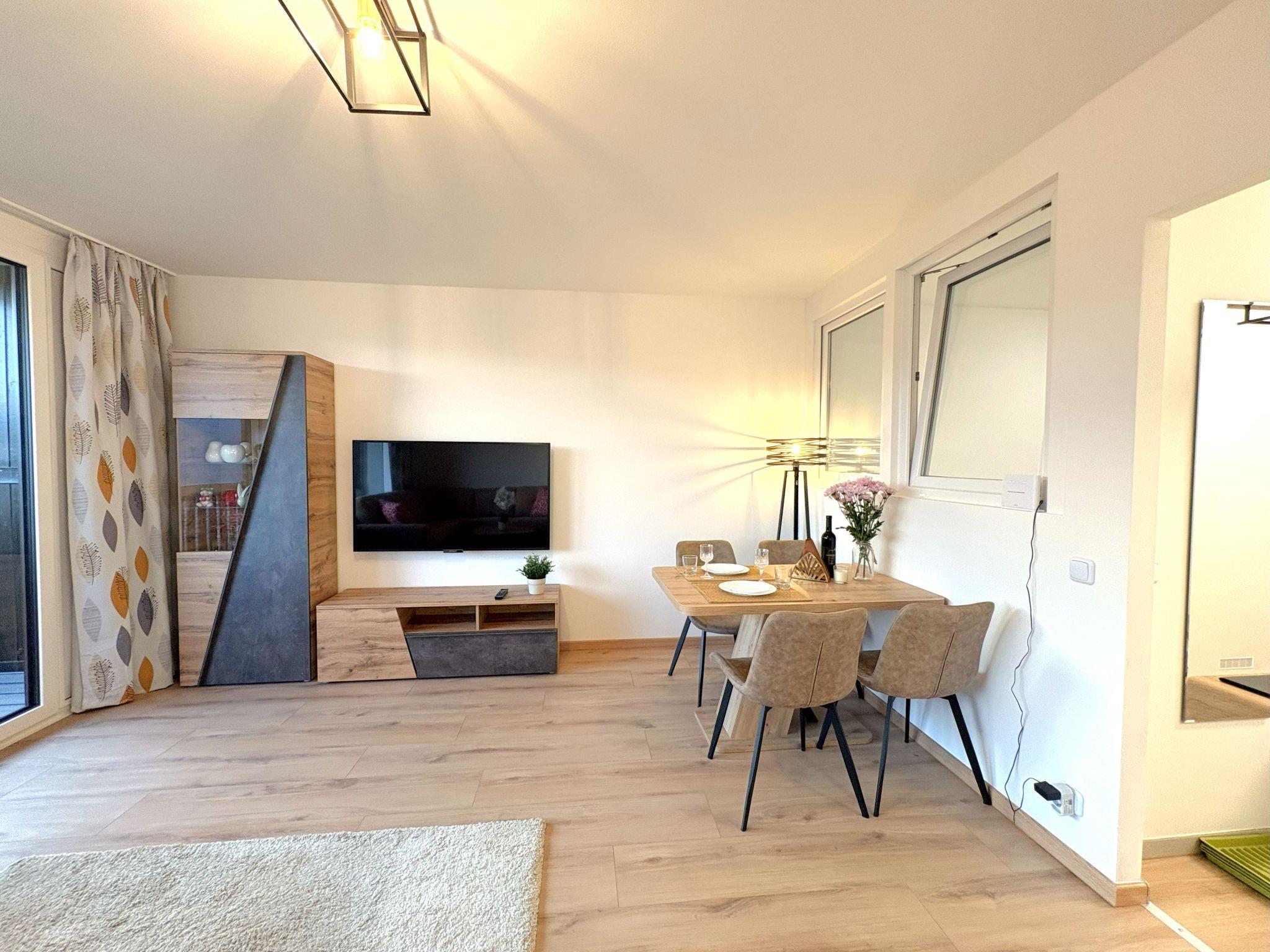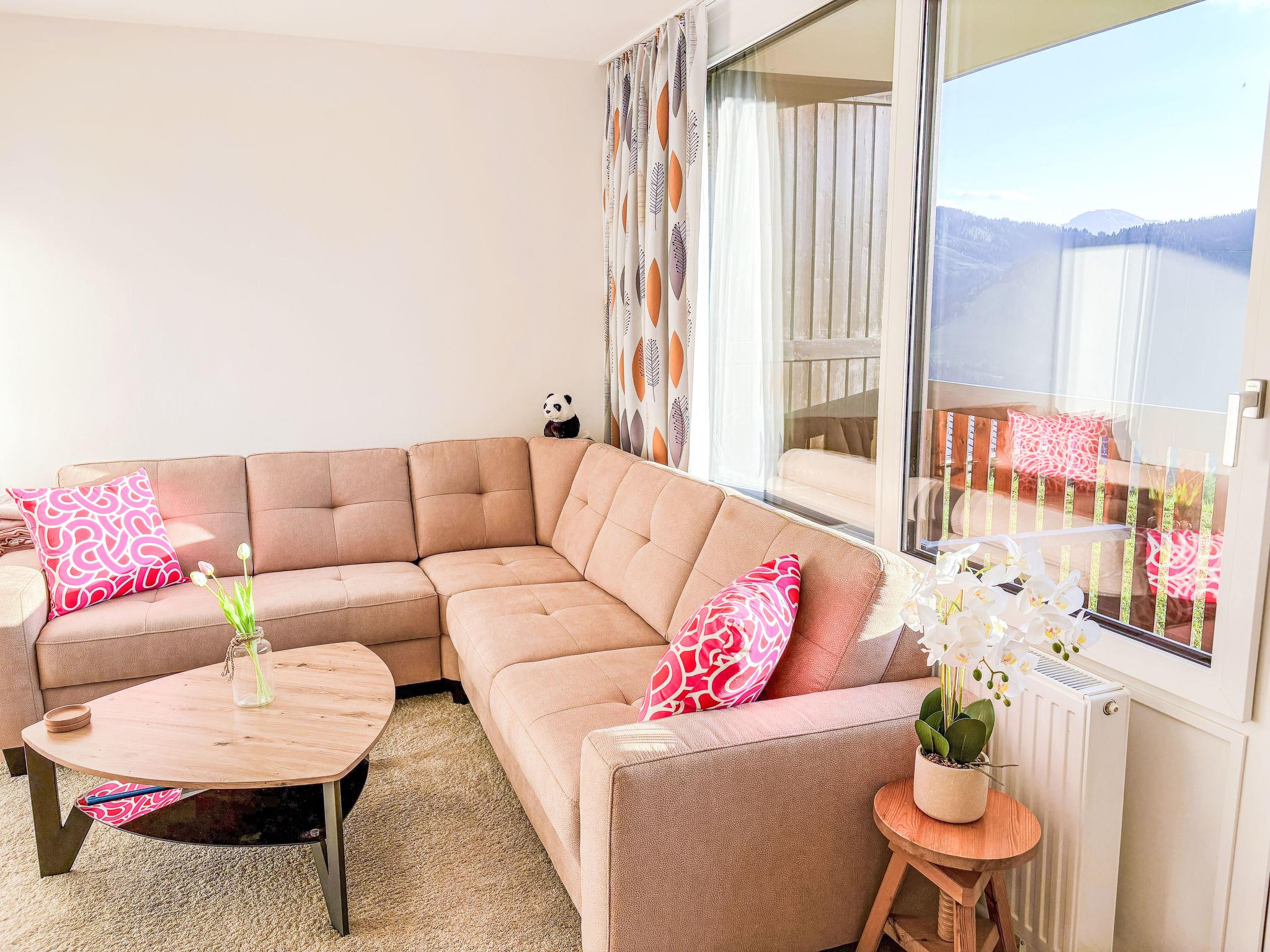 "Top A", 1-room apartment 39 m2, on the ground floor. Bright, partly renovated in 2024, cosy furnishings: entrance hall. Living room with 2 fold-away beds, dining table and cable TV (flat screen). Exit to the balcony. 1 room with 2 beds. Small kitchen (3 hot plates, toaster, freezer, electric coffee machine). Shower/WC. Heating. Balcony 10 m2. Balcony furniture. Very beautiful panoramic view of the mountains and the countryside. Facilities: hair dryer. Parking. Please note: non-smokers only, non-smoking house. Beautiful location, ideal starting point to explore the Ski Amadé world. 50415-006730-2020