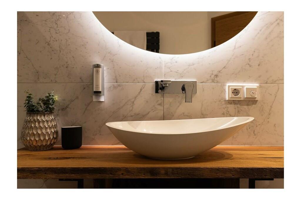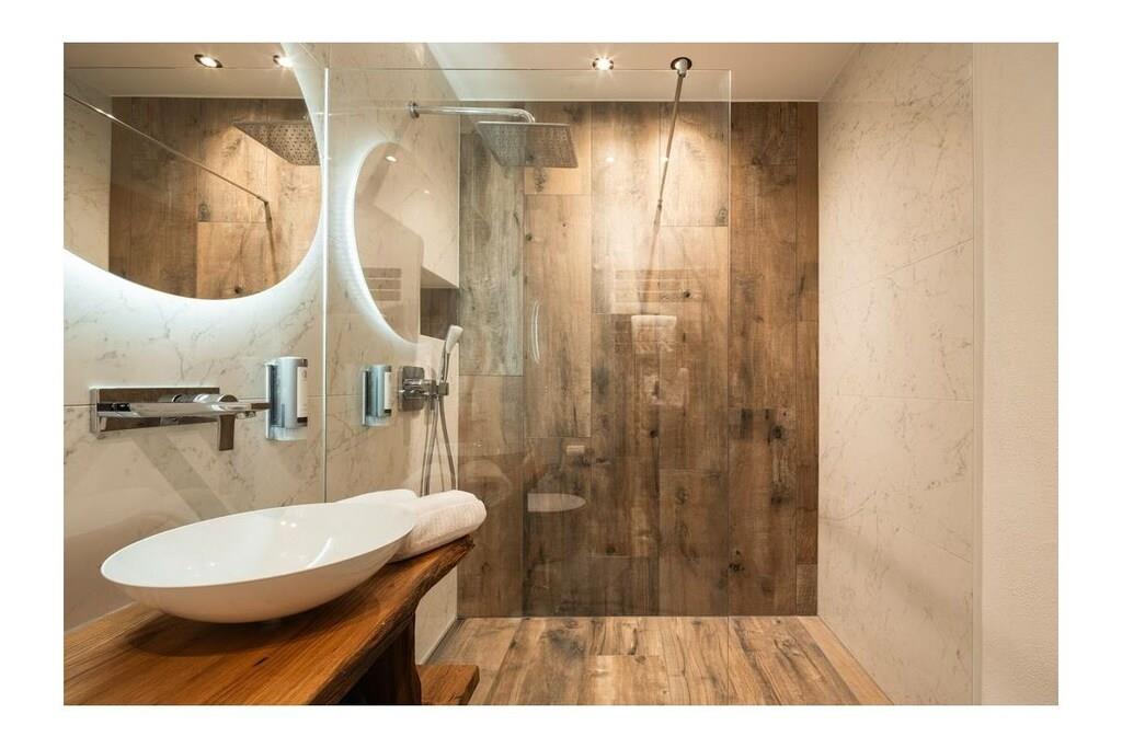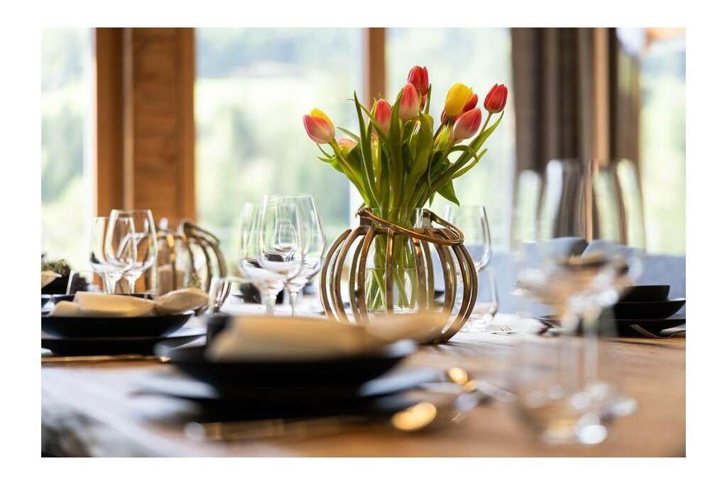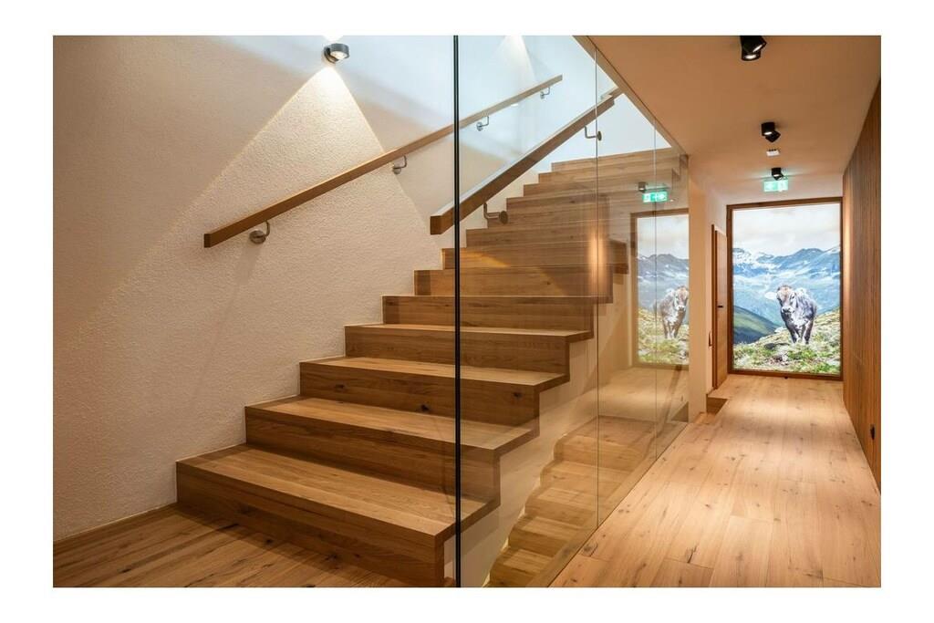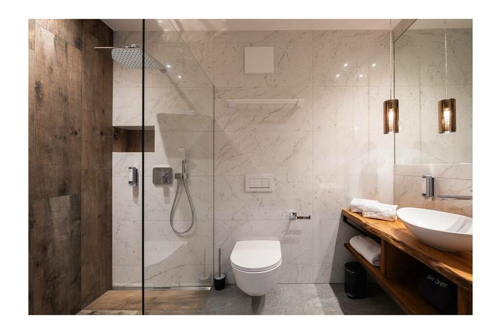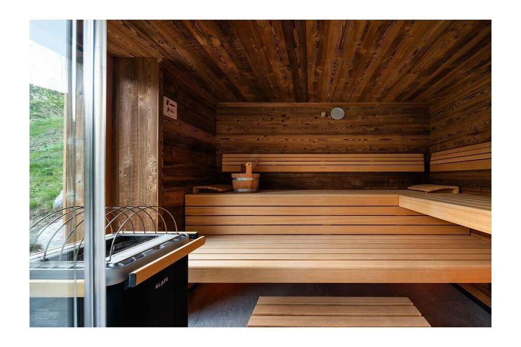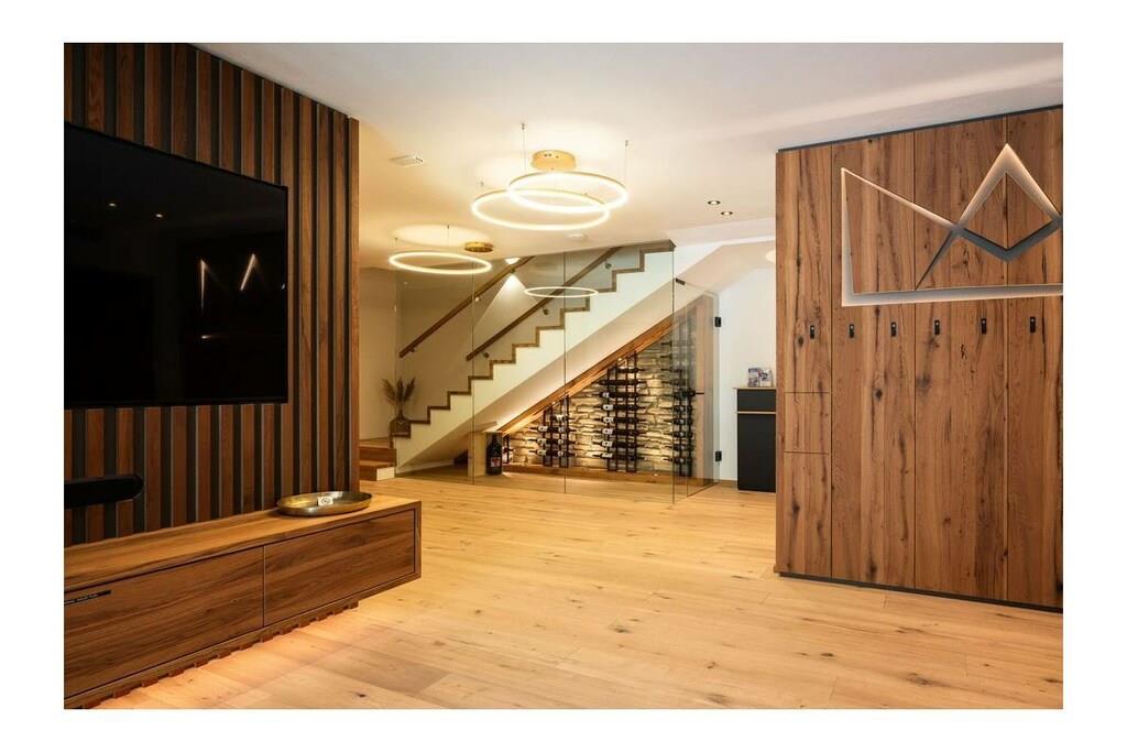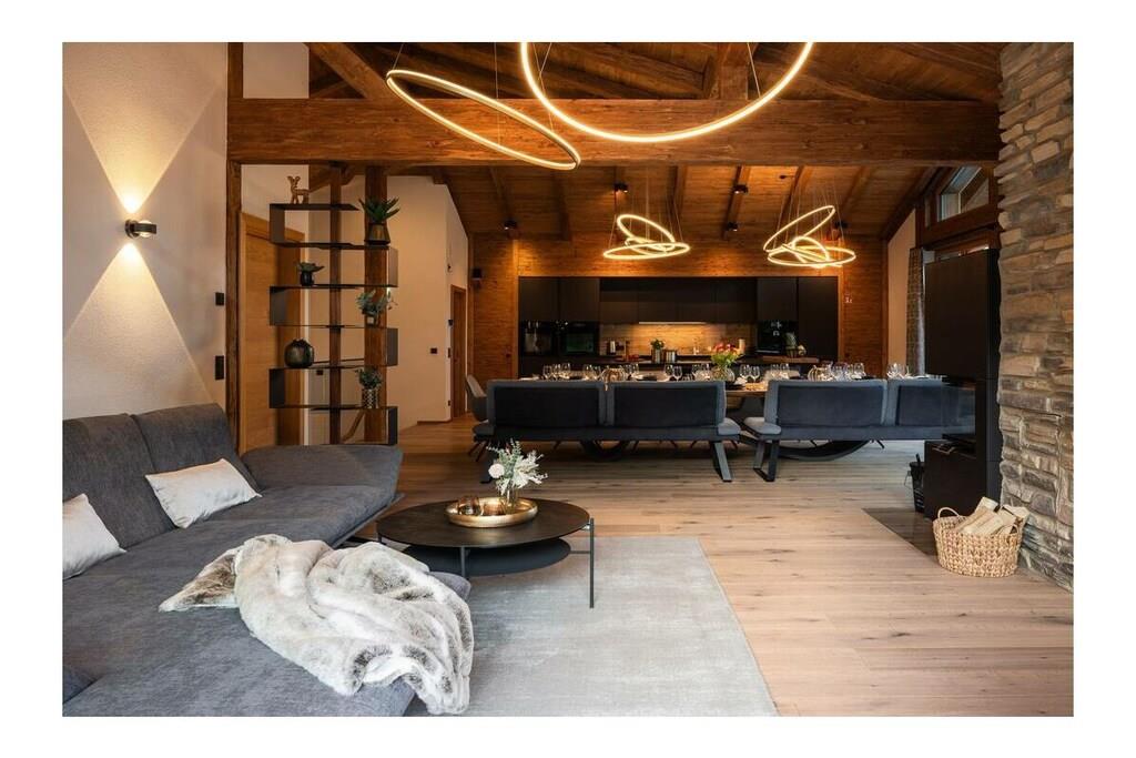 Fem eksklusive soverom, hvert med eget bad, tilbyr optimal privatliv for å nyte ferien. Fellesstuen, med et moderne, eksklusivt kjøkken og et fire meter stort spisebord i heltre, er det perfekte stedet å samles, spise, drikke, prate og nyte tiden sammen. Det 330 kvm store boarealet er fordelt over fire etasjer, og det er 160 kvm med terrasser, alle med heltre av høy kvalitet og trepanelvegger for en sofistikert, alpin atmosfære. Parkering er tilgjengelig for fem biler, hvorav fire er overbygde. En EV Type 2-lader er tilgjengelig (mot et gebyr). Skiboden inkluderer en benk, skistøveltørker, stativ for ski og snowboard, en garderobe for skiutstyr og et hjelmrom. Om sommeren kan den brukes som en låsbar sykkelstasjon med ladestativ for elsykler og rikelig med strømuttak.