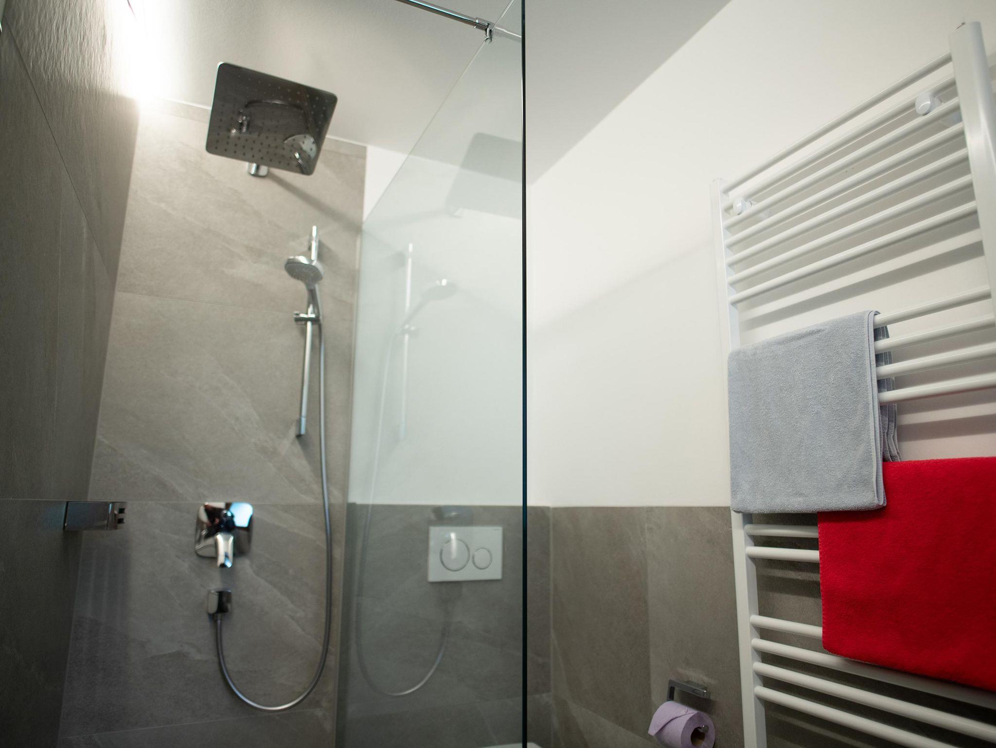 Die Schlafzimmer verfügen über DU/WC, Kabel Flat-TV 32“, gratis W-LAN, Balkon und eine große Sonnenterrasse mit Grillplatz.