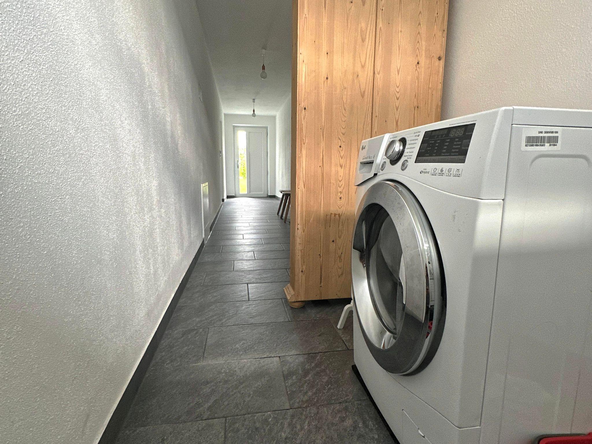 Die Ferienwohnung Talblick befindet sich im Erdgeschoss und verfügt über einen eigenen Eingang, welcher in einen großen Vorraum mit Bücherschrank, Waschmaschine und Wäscheständer und Schuhtrockner ausgestattet ist. Vom Vorraum aus erreicht man den Wohnraum mit Küchenzeile, Esstisch und gemütlicher Wohnzimmerecke. Vom Wohnzimmer aus geht eine Terrassentür auf die überdachte, westseitige Terrasse mit direktem Zugang zu einer pivaten Rasenfläche. Die Wohnung verfügt des weiteren über ein abgeschlossenes Badezimmer und ein Schlafzimmer.