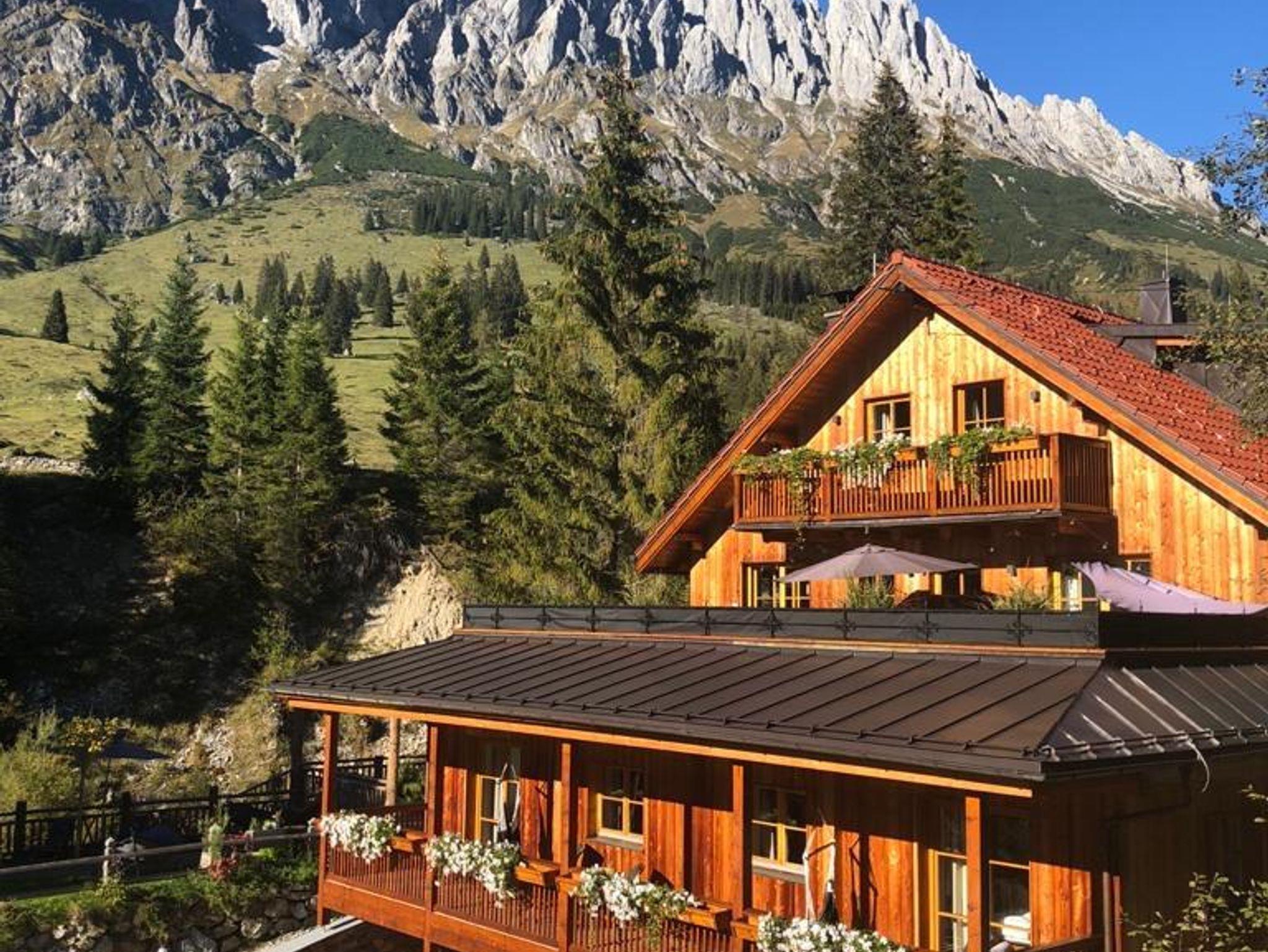 Auf 1350m Höhe gelegen und von den beeindruckenden Berggipfeln der Mandlwand und des Hochkönigs (2941m) umgeben. Die Lodge is ganz umgebaut in 2016 und datiert 1790, liegt in einer märchenhaften Umgebung. Als ob man eine Postkarte betritt! Der Rest, die Almen und gemütliche Gebirgsbach runden das Bild ab. Dies ist Österreich von seiner besten Seite!