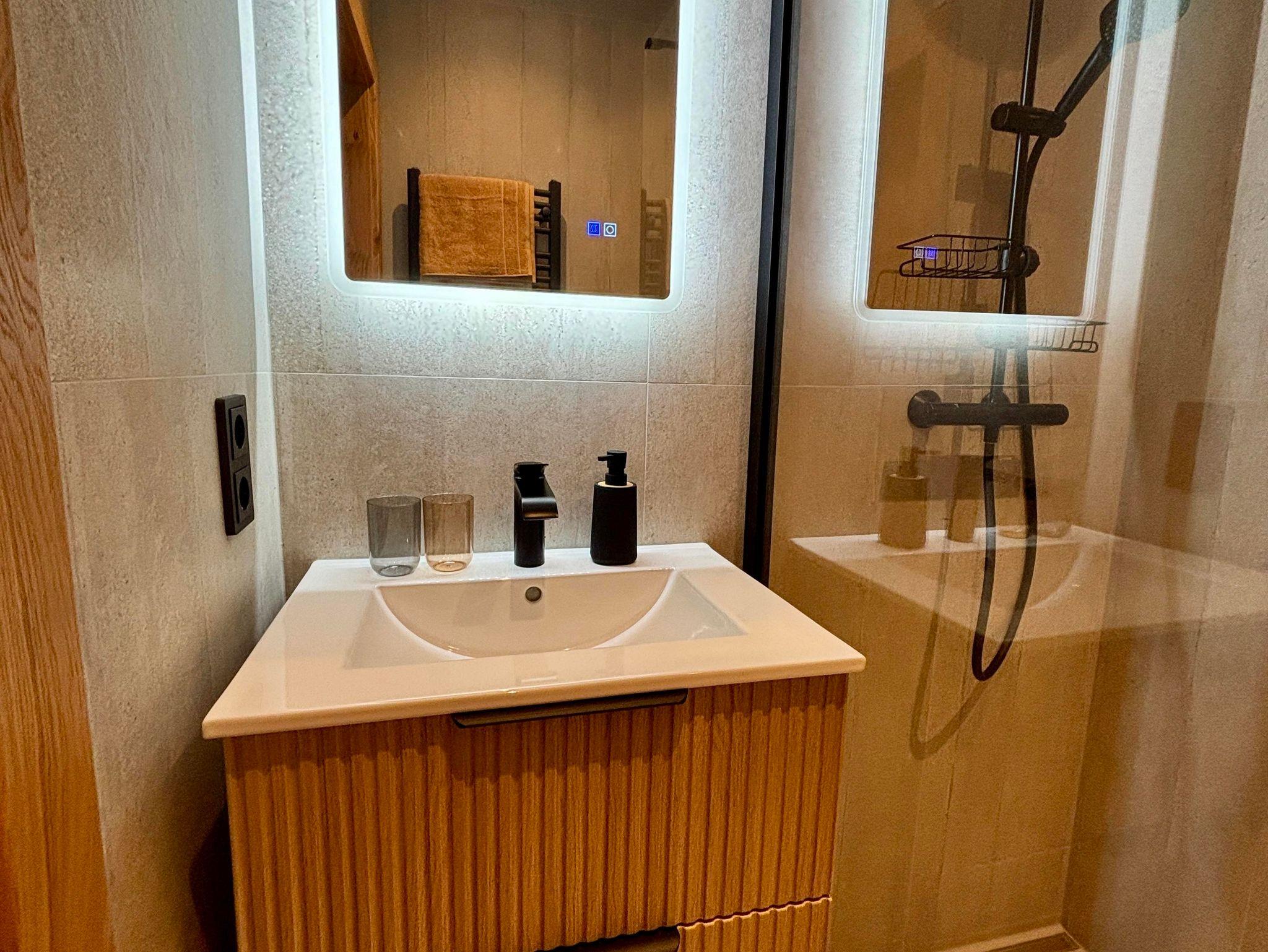 • Badezimmer mit Dusche, Haartrockner, getrenntes WC