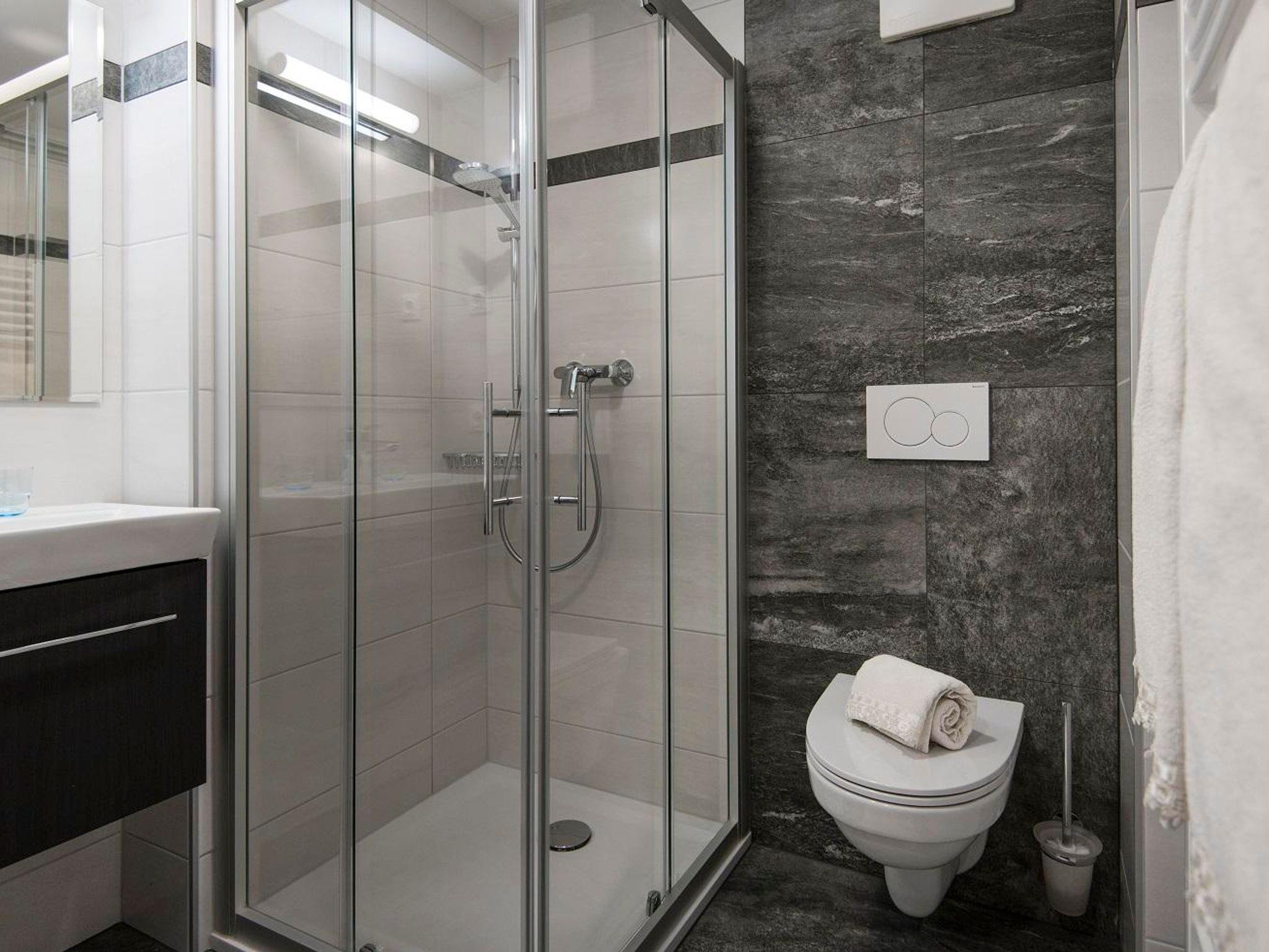Die Wohnung bietet genügend Freiraum für die gesamte Familie – drei getrennte Schlafzimmer, Vorraum mit Garderobe, 2 Bäder mit Dusche und WC, Fernseher (SAT-TV), Wohnküche mit Esstisch sowie Balkon. Der möblierte Balkon bietet Ihnen einen schönen Ausblick über den Hof und das Tal.