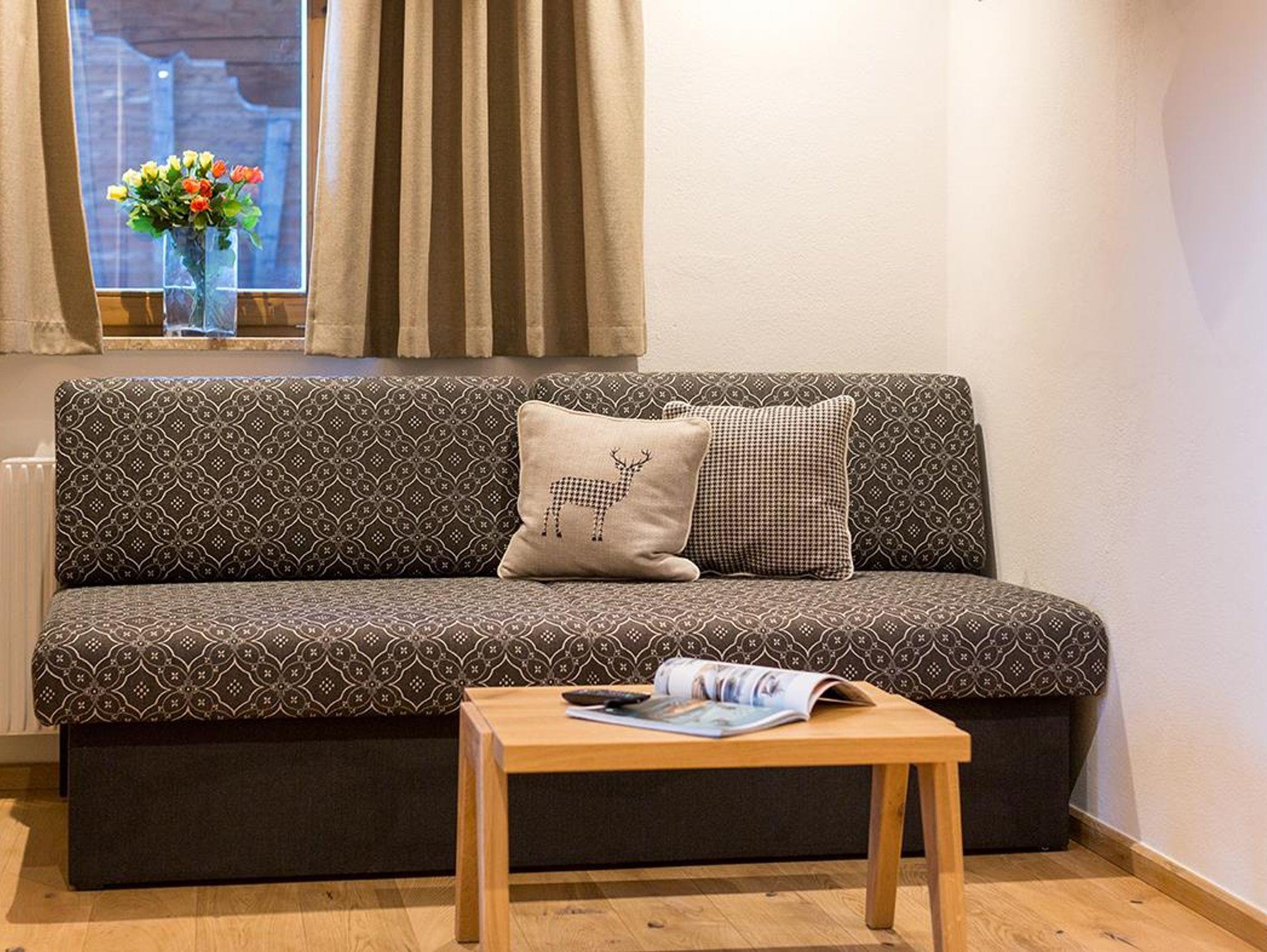 Das Appartement Gipfelglanz befindet im 2. Stock der Balkon bietet Aussicht auf die gesamte Bergwelt. Es verfügt über ein getrenntes Schlafzimmer, einen Wohnessbereich mit Sitzecke und Esstisch, ausziehbarer Schlafcouch und einem Stockbett, vollausgestattete Küche inkl. Geschirrspüler, Mikrowelle, Kaffeemaschine, Kühlschrank, Wasserkocher…