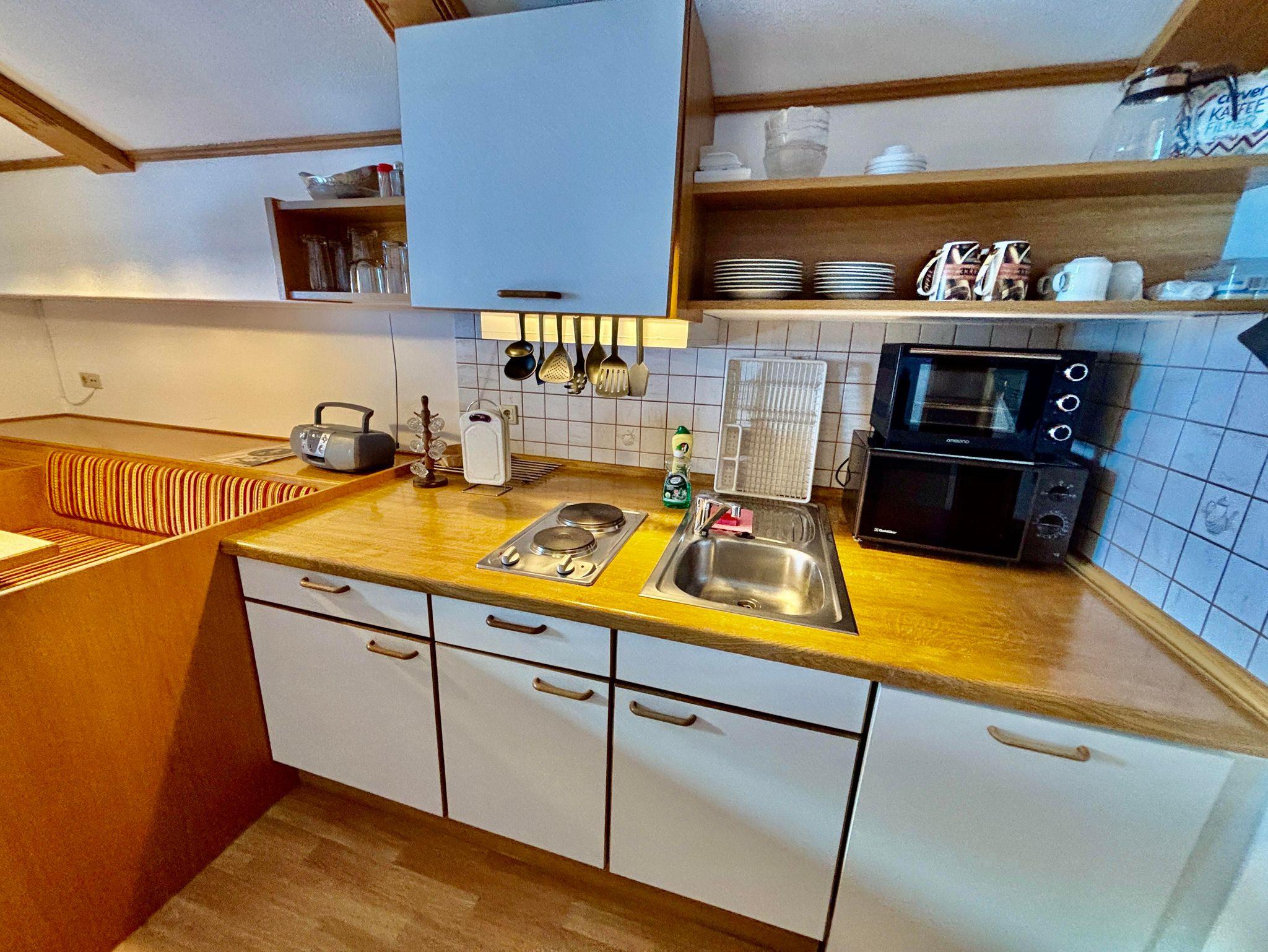 • mit Mikrowelle, Wasserkocher, Toaster, Filter-Kaffeemaschine und Tschibo-Eduscho-Kapselmaschine, Spülmaschine