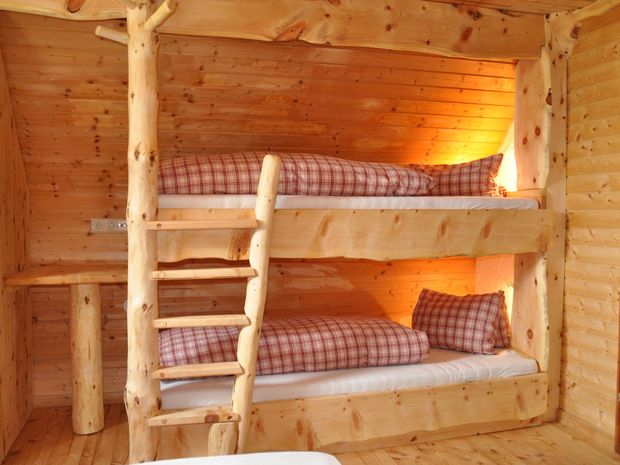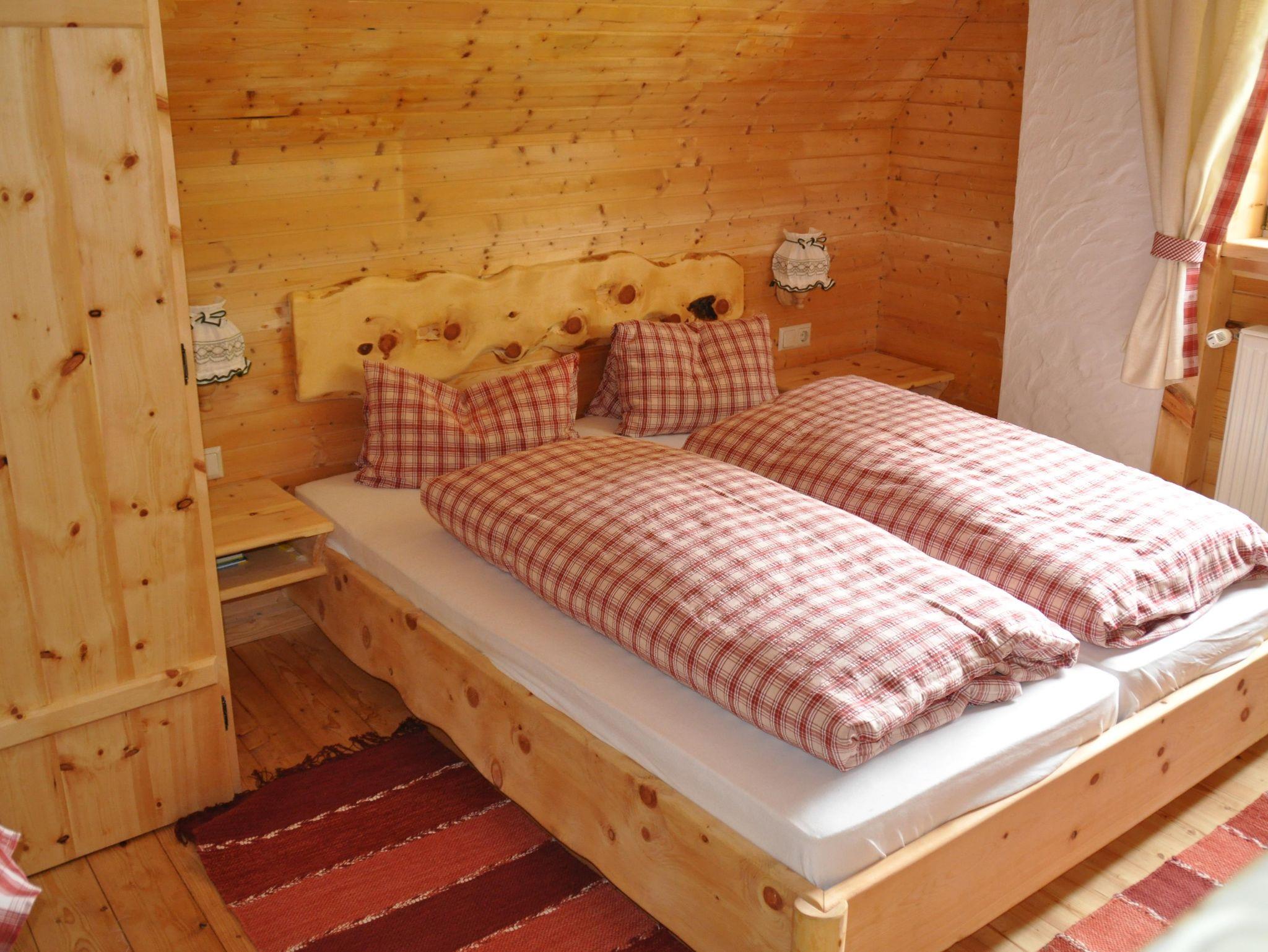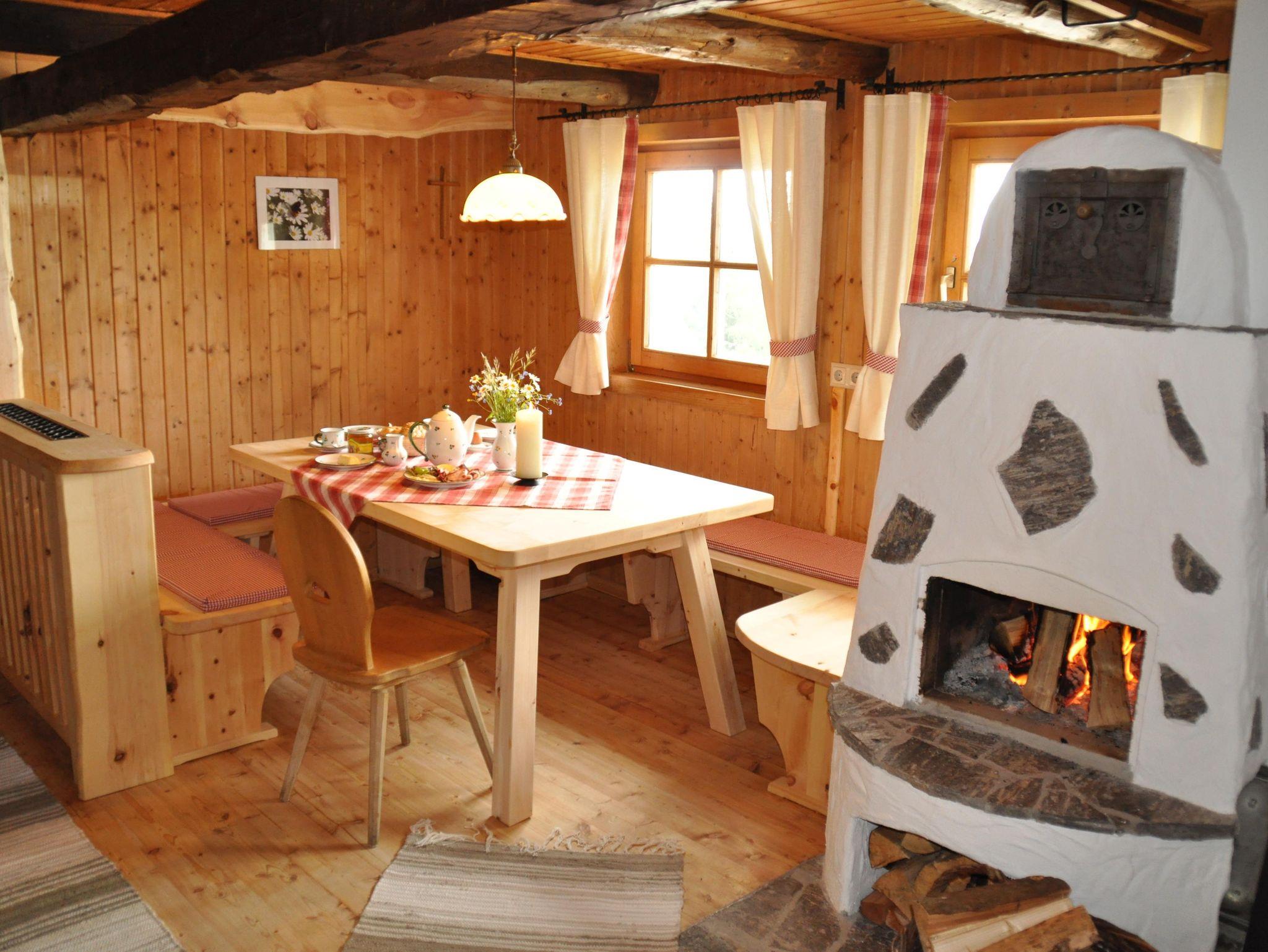 Ein Urlaub in der Zirbenhütte ist ein bisschen wie aussteigen auf Zeit und irgendwie hat man das Gefühl als sei hier die Zeit stehen geblieben. Im Erdgeschoss gibt es eine Wohnstube, eine Küchenzeile mit Kühlschrank und eine gemütliche Sitzecke. Das Feuer knistert im Kachelofen und offenem Kamin und das Kuschelbett in der Stube ist der Lieblingsplatz der ganzen Familie. Der Fernseher bekommt wenig Beachtung, stattdessen gibt es Spiele wie „Mensch ärgere Dich nicht, Monopoly, Schnapsen (steirisches Kartenspiel) usw. Im oberen Geschoss gibt es 2 Schlafzimmer mit je einem Doppelbett und einem Stockbett. Die Holzfußböden strahlen Gemütlichkeit und Wärme aus und der Duft der Zirbenmöbel wird sie verzaubern. Dazu gibt es zwei Badezimmer, eines mit Holzbadewanne, WC und Waschbecken und eines mit Dusche, WC und Waschbecken. Knapp 70 m² Hüttenatmosphäre für Ihre Familie oder gemeinsam mit Freunden. Vor der Hütte genießt man in der Nachmittagssonne ein Häferl Punsch oder Glühwein und den grandiosen Ausblick ins Tal.