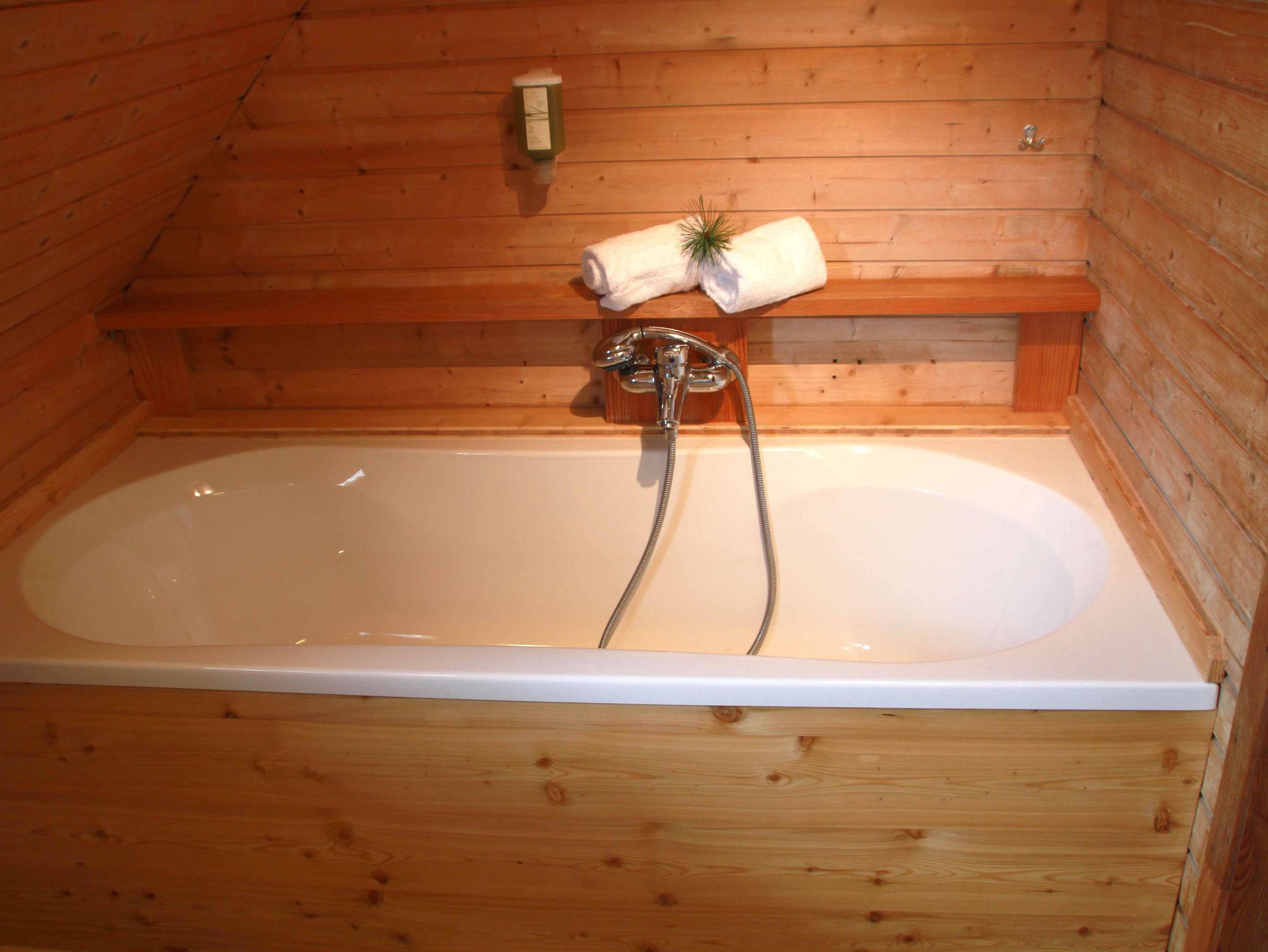 ? Innen: Finnische Sauna, Brechlbad mit Zirbenästen, Whirlwanne