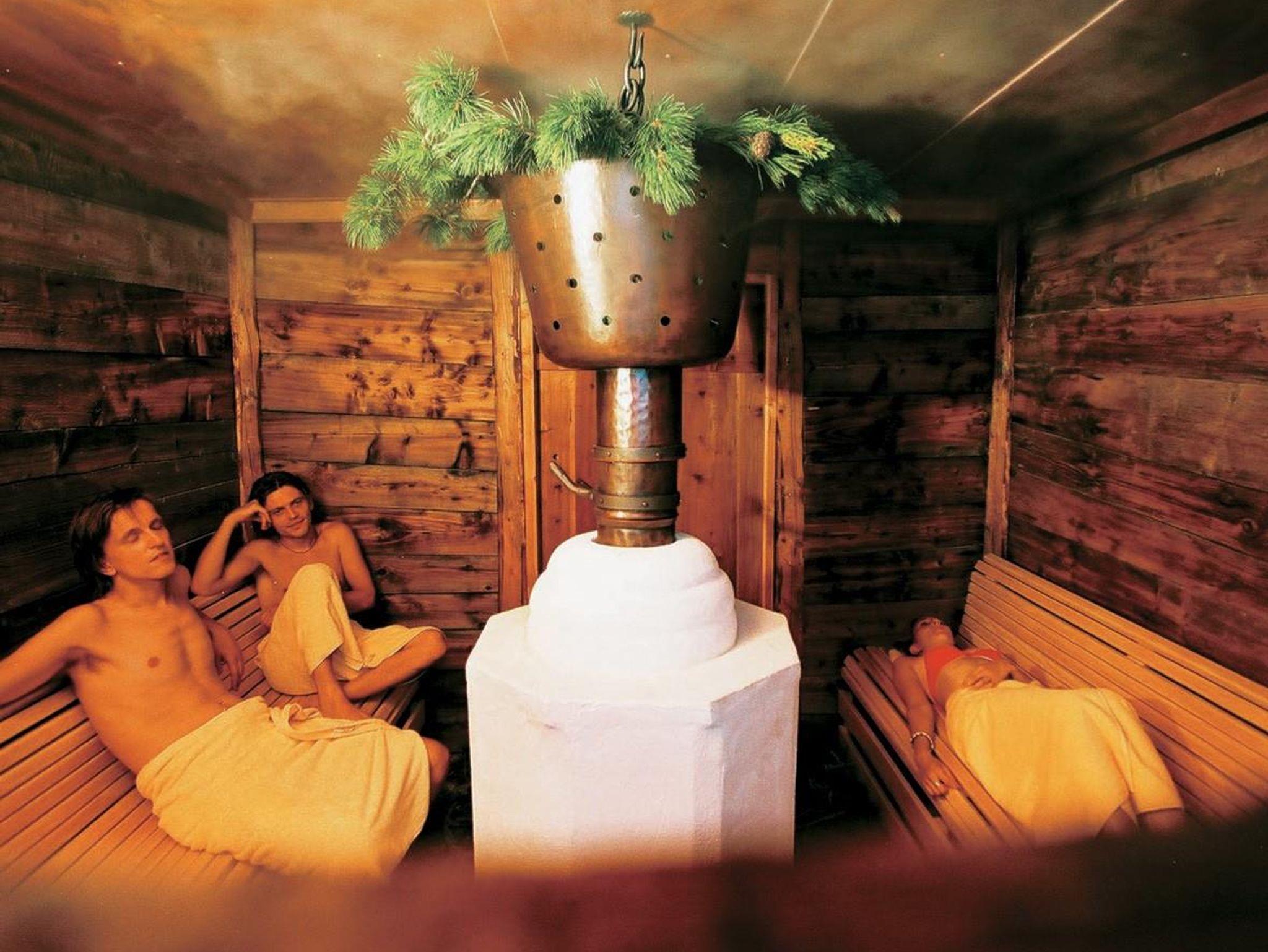 ? Innen: Finnische Sauna, Brechlbad mit Zirbenästen, Whirlwanne