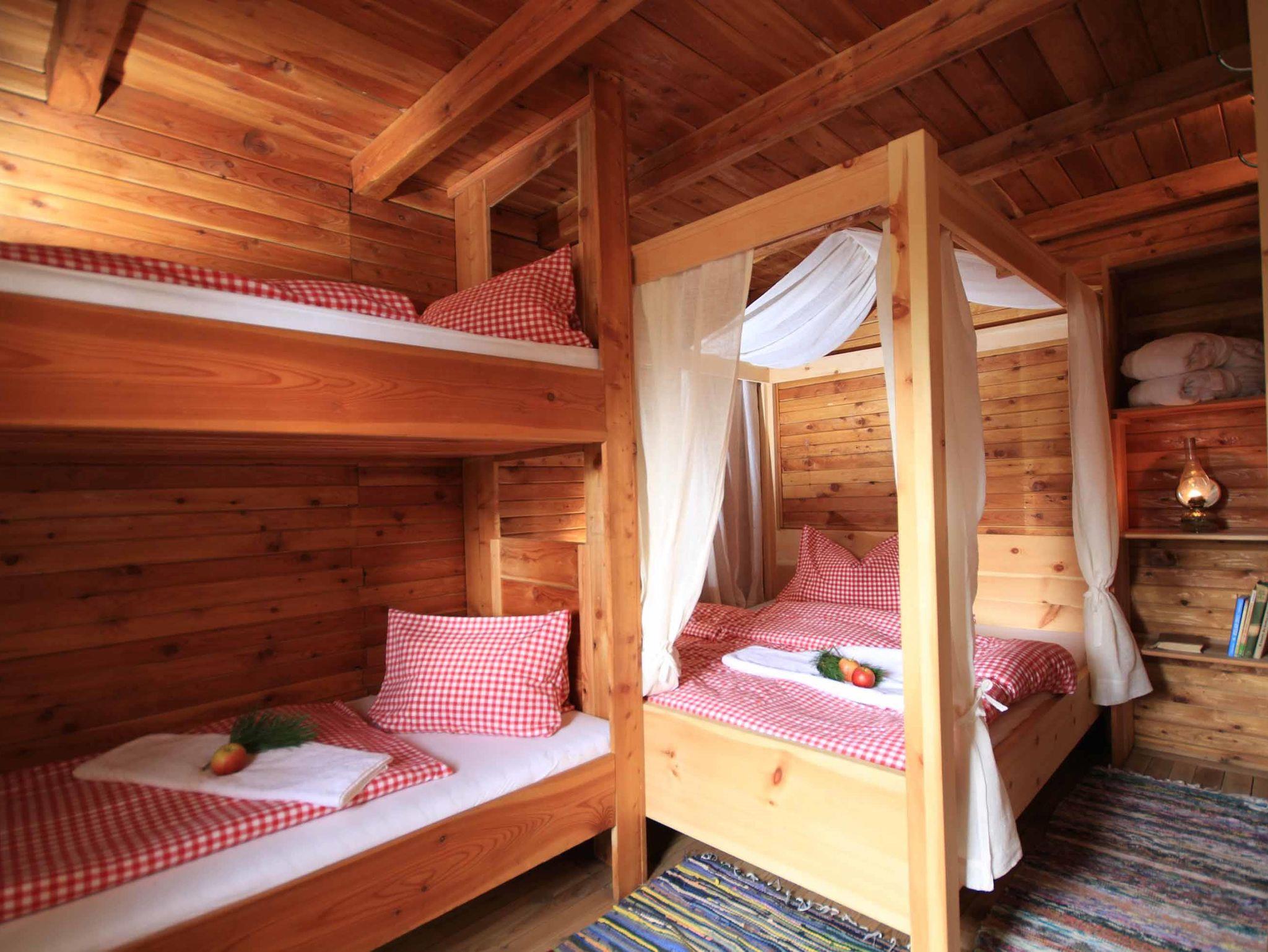 Genießen Sie ein paar Tage in einer einsamen, urigen Holzblockhütte. Die Waldhütte liegt ca. 300m entfernt von der Tonnerhütte ganz allein im Wald. Sie ist ausgestattet mit Gaslicht, einem gemütlichen Holzofen, einem Brunnen für die morgendliche „Katzenwäsche und einem Herzerklo vor der Tür. Insgesamt bietet die Hütte Platz für 4 Personen (1 Stockbett und ein Himmelbett). Duschen finden Sie in der Almwellnessanlage der Tonnerhütte.