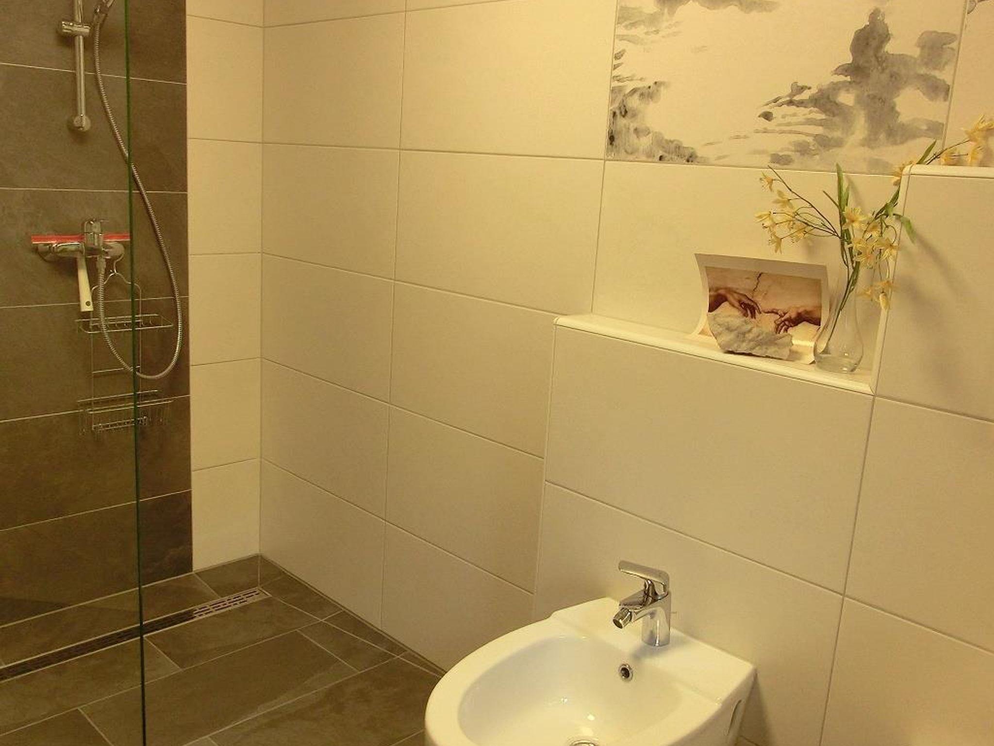 Erdgeschoß: 100 qm, 1 Doppelzimmer, 1 Dreibettzimmer, Küche (Mikrowelle, Geschirrspüler) mit Bar, Wohnzimmer, SAT-TV, CD-/DVD-Player, neues Bad (Dusche,Bidet, WC), separates WC, Waschmaschine, Kaminofen, Tischfußballtisch, WLAN