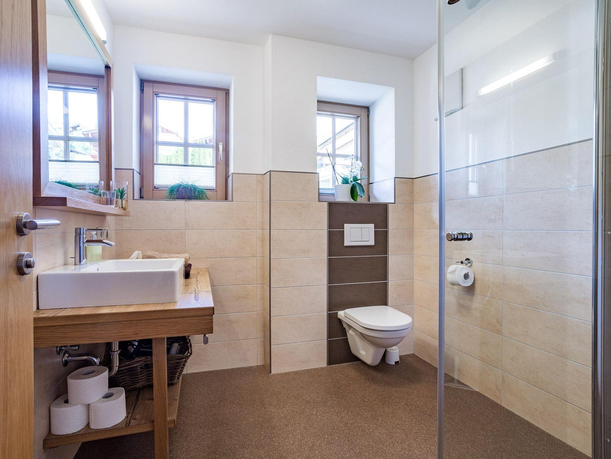 2 Bäder jeweils mit Dusche und WC, Fön, Seife, Handtücher liegen für Sie bereit