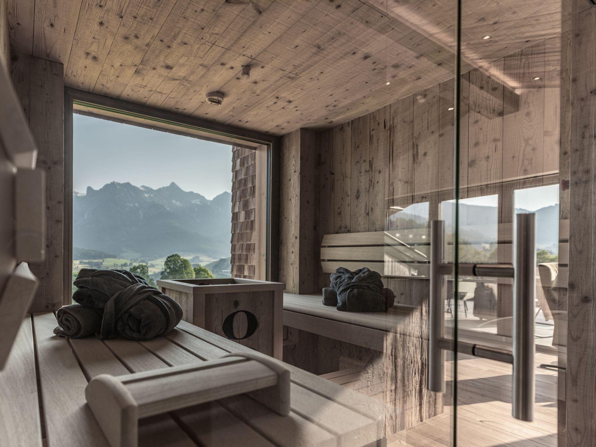 Die Kraft der Natur in Maria Alm erleben Unsere Natursuite bietet ausreichend Platz für bis zu 5 Personen. Verteilt auf zwei separate Zimmer & Badezimmer ist dieses Apartment ideal für Familien oder kleine Gruppen. Die Panoramasauna und die abtrennbare Panoramabadewanne bieten pure Erholung nach einem aufregenden Tag in der Region Hochkönig. Terrasse und Balkon laden zum Frühstücken in der Morgensonne oder Sonnenbaden am Nachmittag ein.