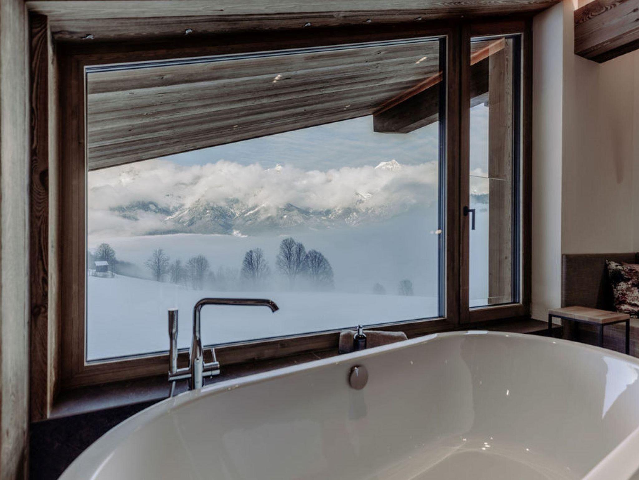 Genieße die Bergwelt der Hochkönigregion von der gemütlichen Panoramabadewanne aus oder entspanne nach einer anstrengenden Wanderung in der apartmenteigenen Sauna.