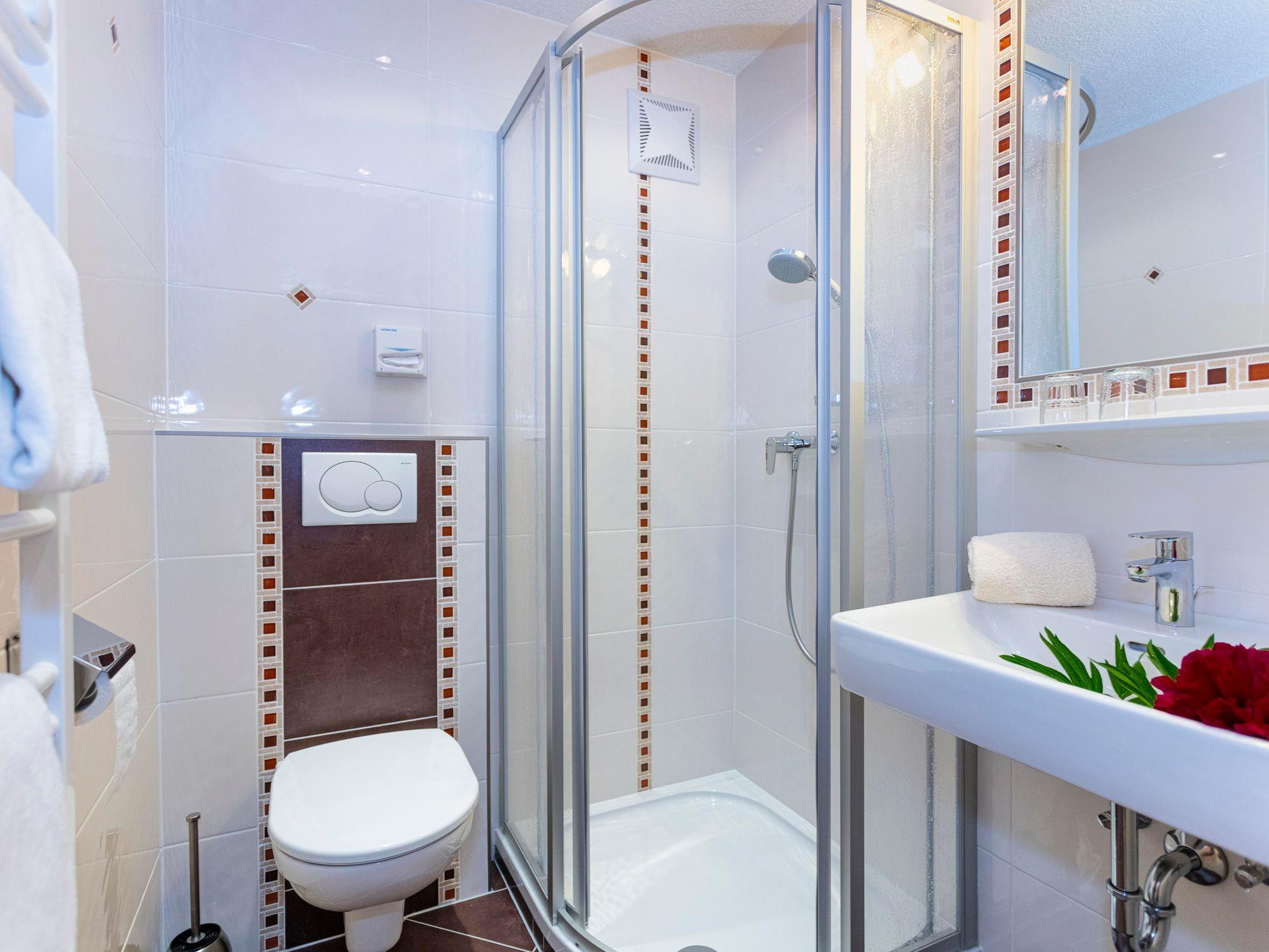 Dusche,Badewanne,2separate Toiletten,W-Lan,Kabel TV,Radio,Telefon und eigenen Balkon. Sollten Sie zusätzliche Schlafplätze benötigen, können Sie hier ein Doppelzimmer oder Dreibettzimmer dazu buchen.
