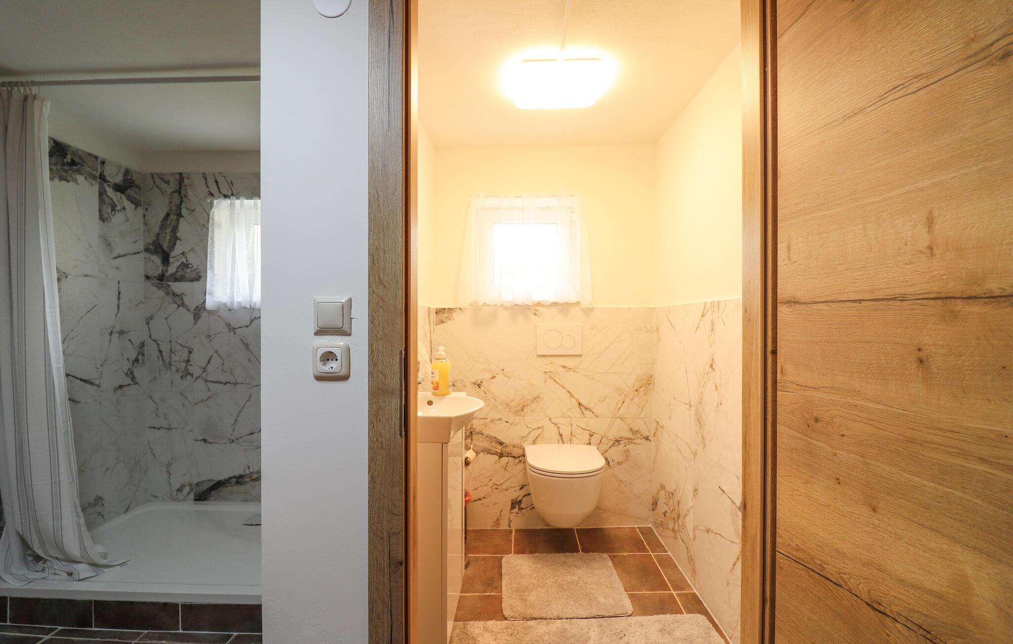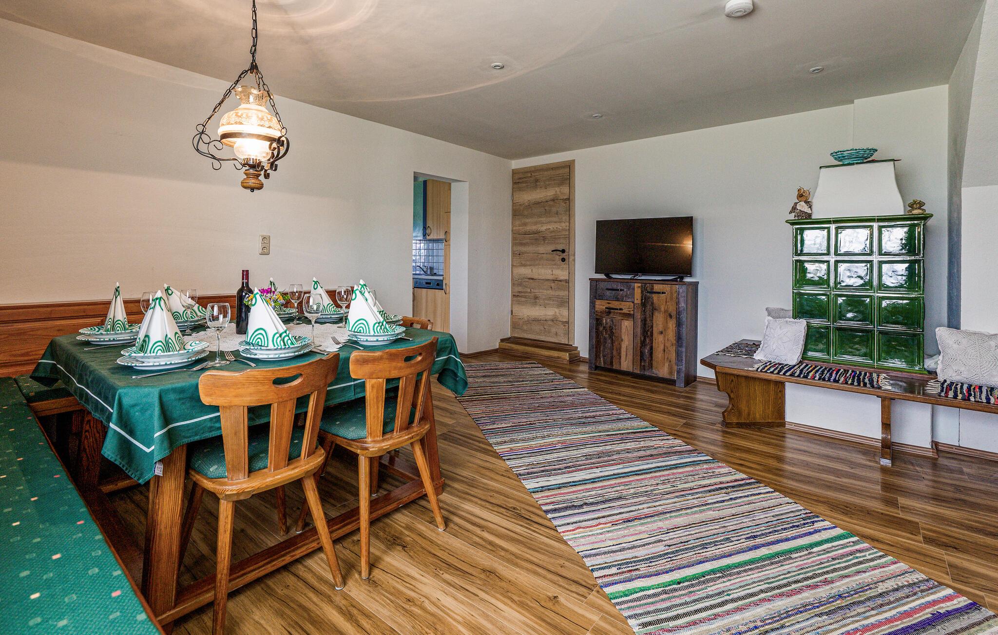 Start dagen med en nybrygget kopp kaffe på det koselige spisekjøkkenet eller ute på terrassen og nyt den friske fjelluften og den fantastiske utsikten over den omkringliggende naturen. Bruk det velutstyrte kjøkkenet til å tilberede frokost og til å skjemme bort deg selv og familien med kulinariske herligheter senere på dagen. Inne i huset kan du glede deg til den romslige stuen med komfortable sitteplasser, som er ideell for avslappende kvelder. Sett deg godt til rette i den koselige sofaen og nyt fritiden sammen. Innta måltidene i den innbydende spisestuen med tremøbler og en tradisjonell sittegruppe, og tilbring timevis sammen mens dere nyter deilig mat og gode samtaler.