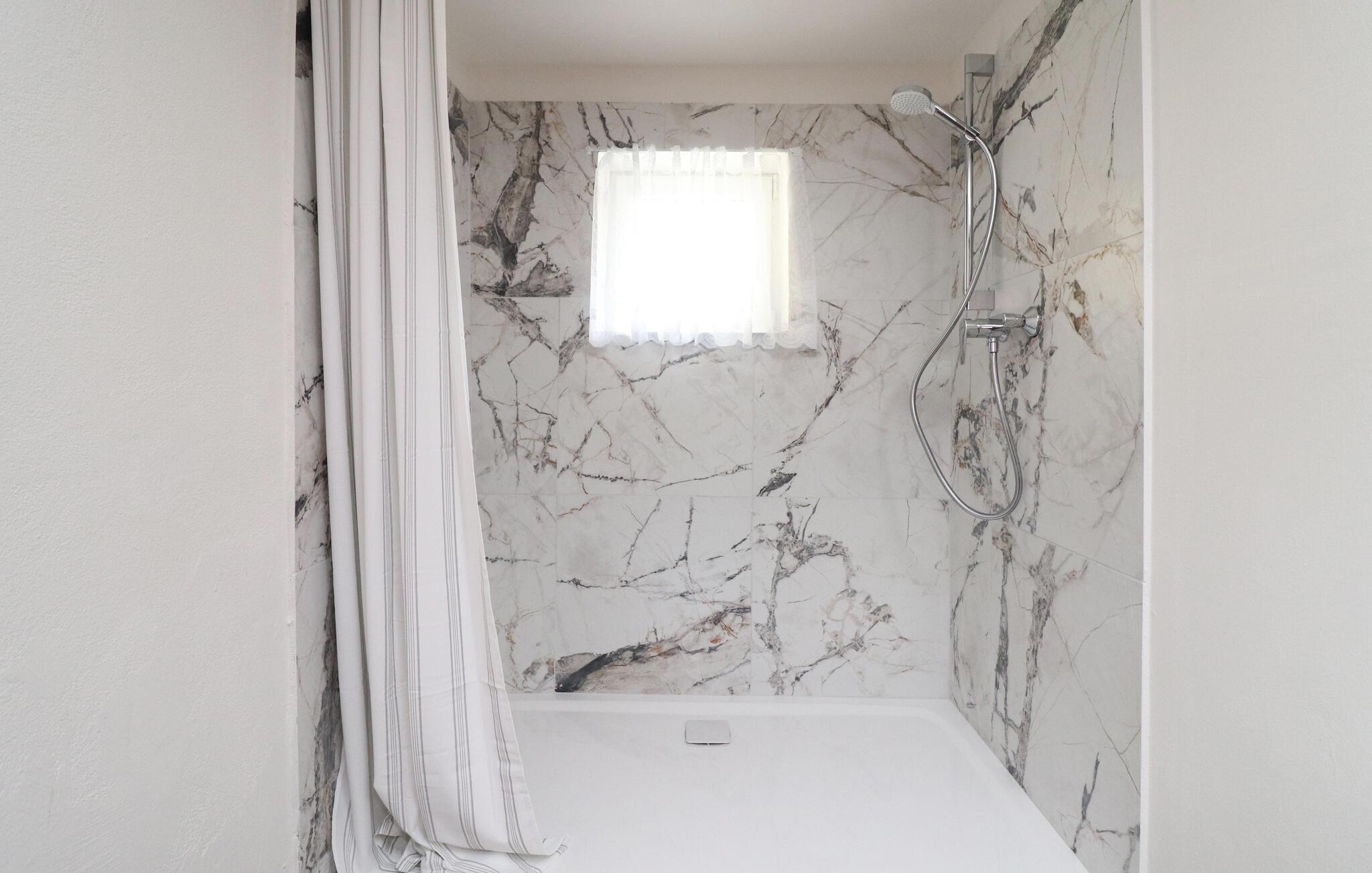 - WC med varmt og kaldt vann, Dusj