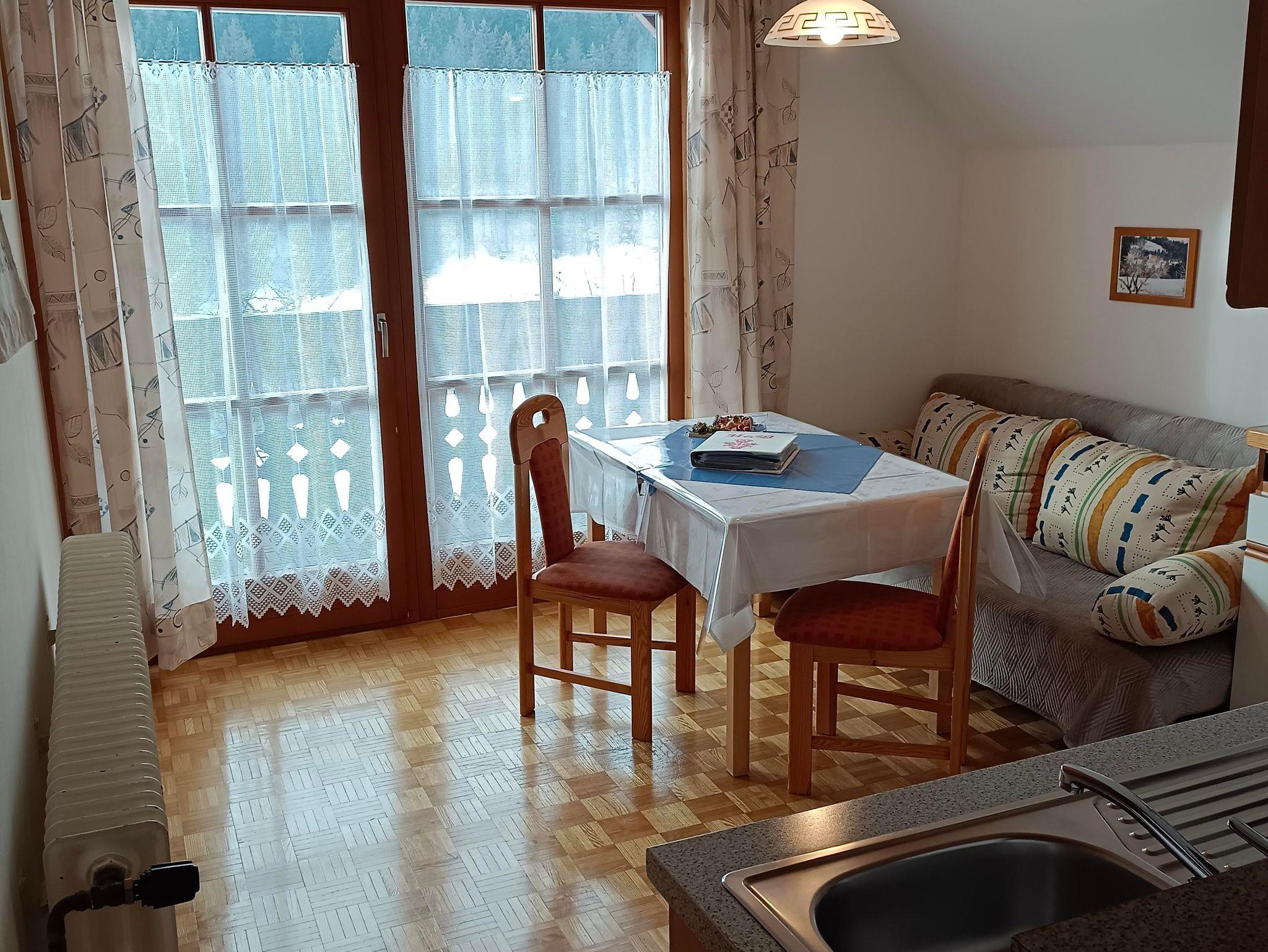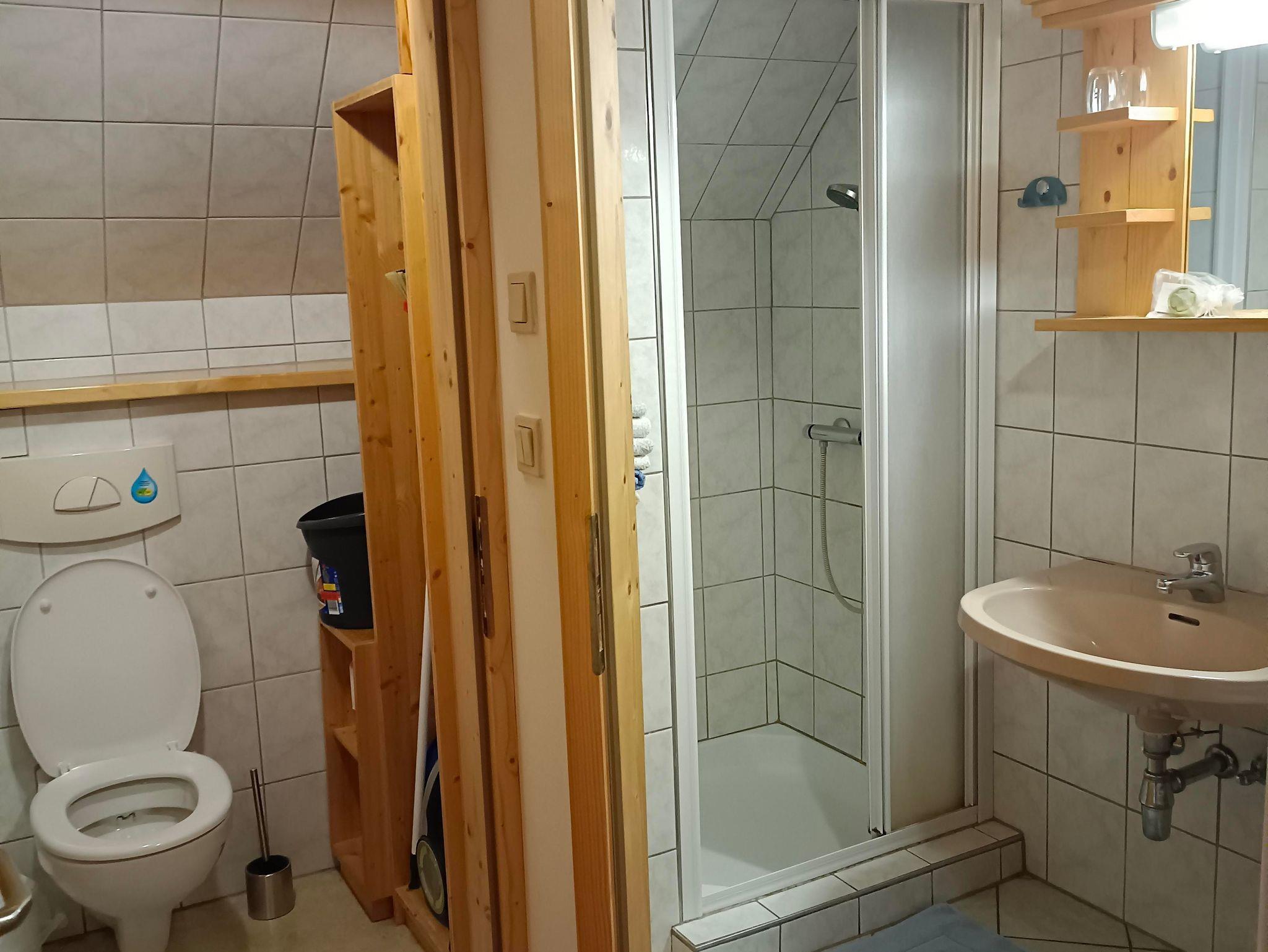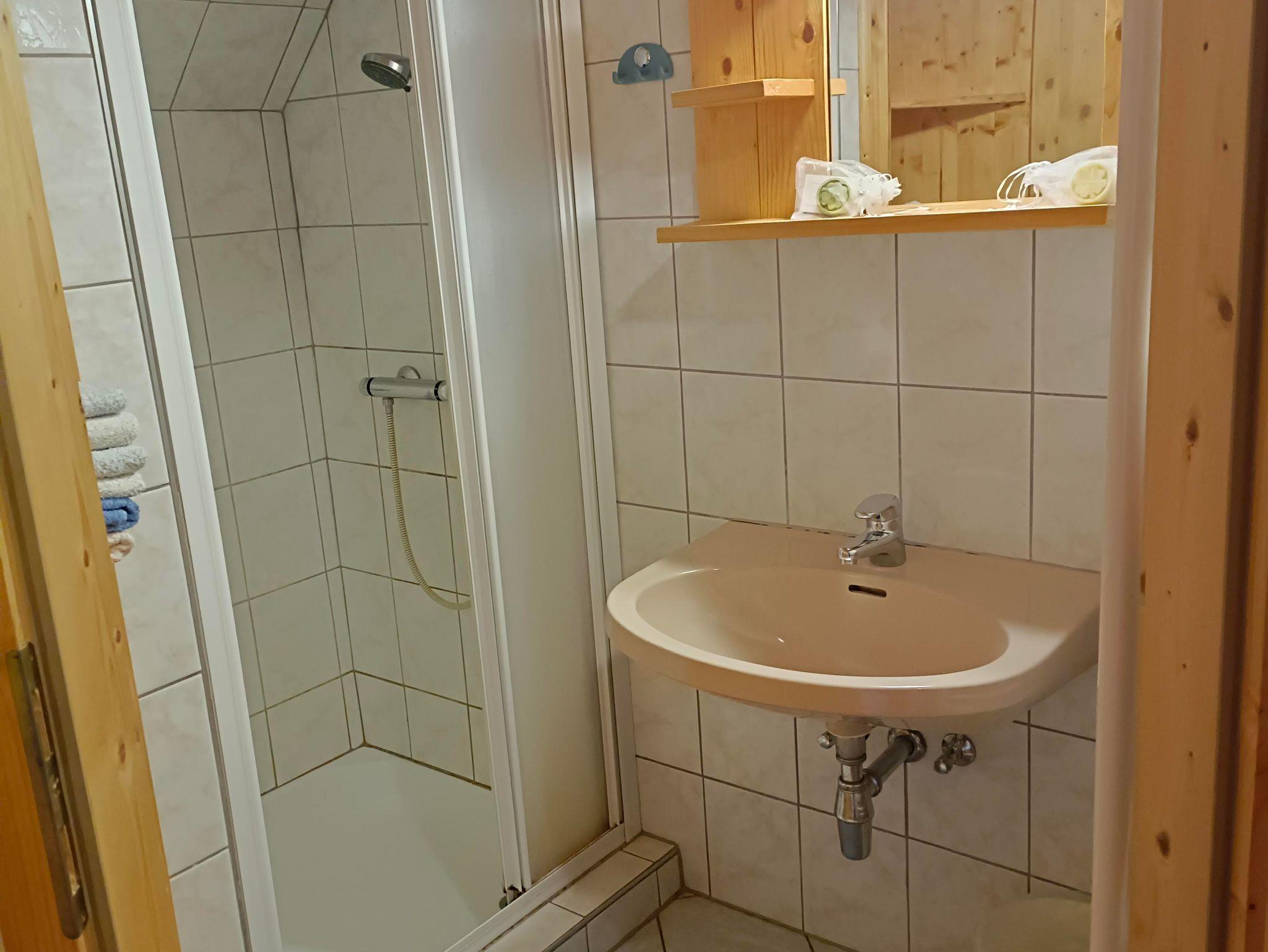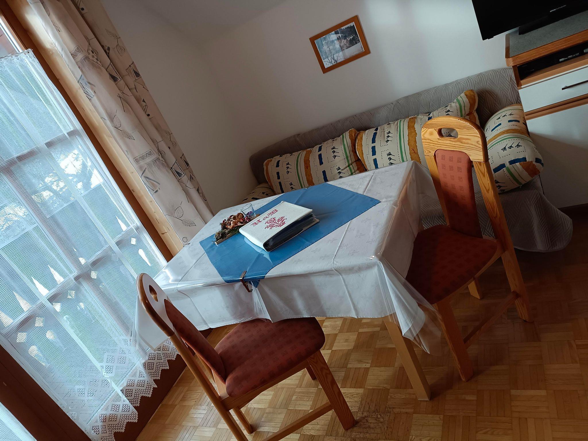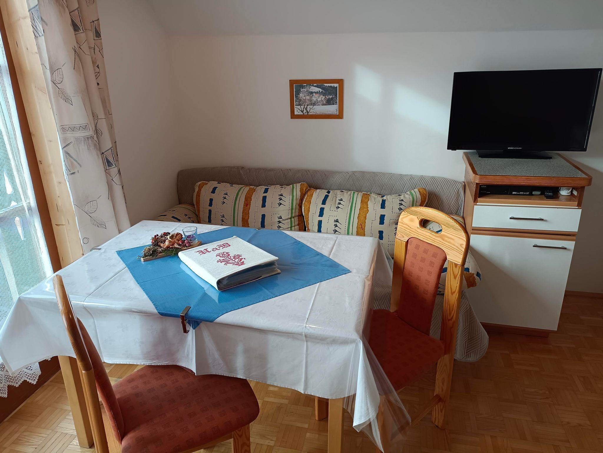 Die Einrichtung ist in Fichte gehalten und ideal auch als Familienzimmer. Sie verfügt über Sat- TV mit Blick zum Kalkberg.