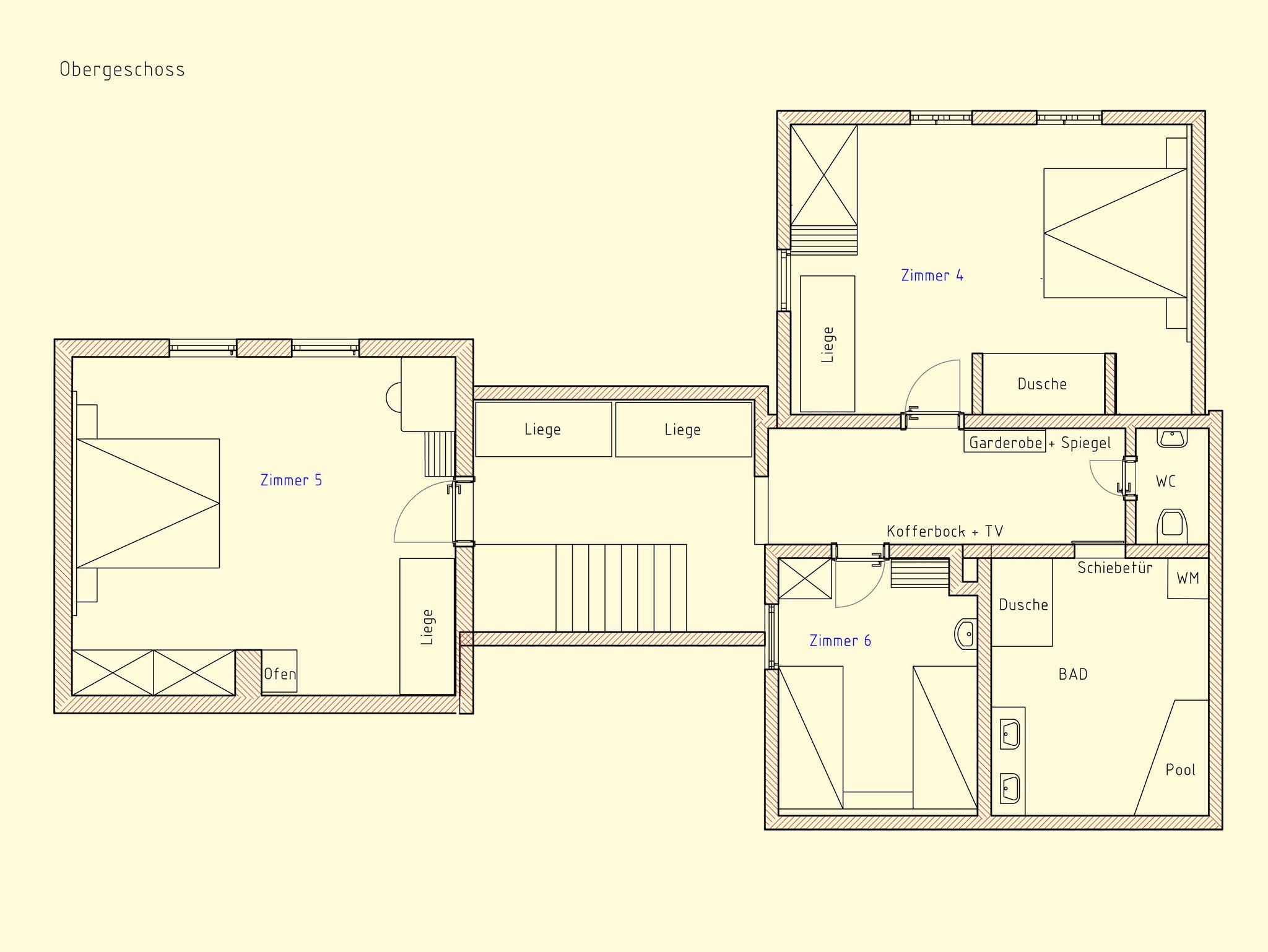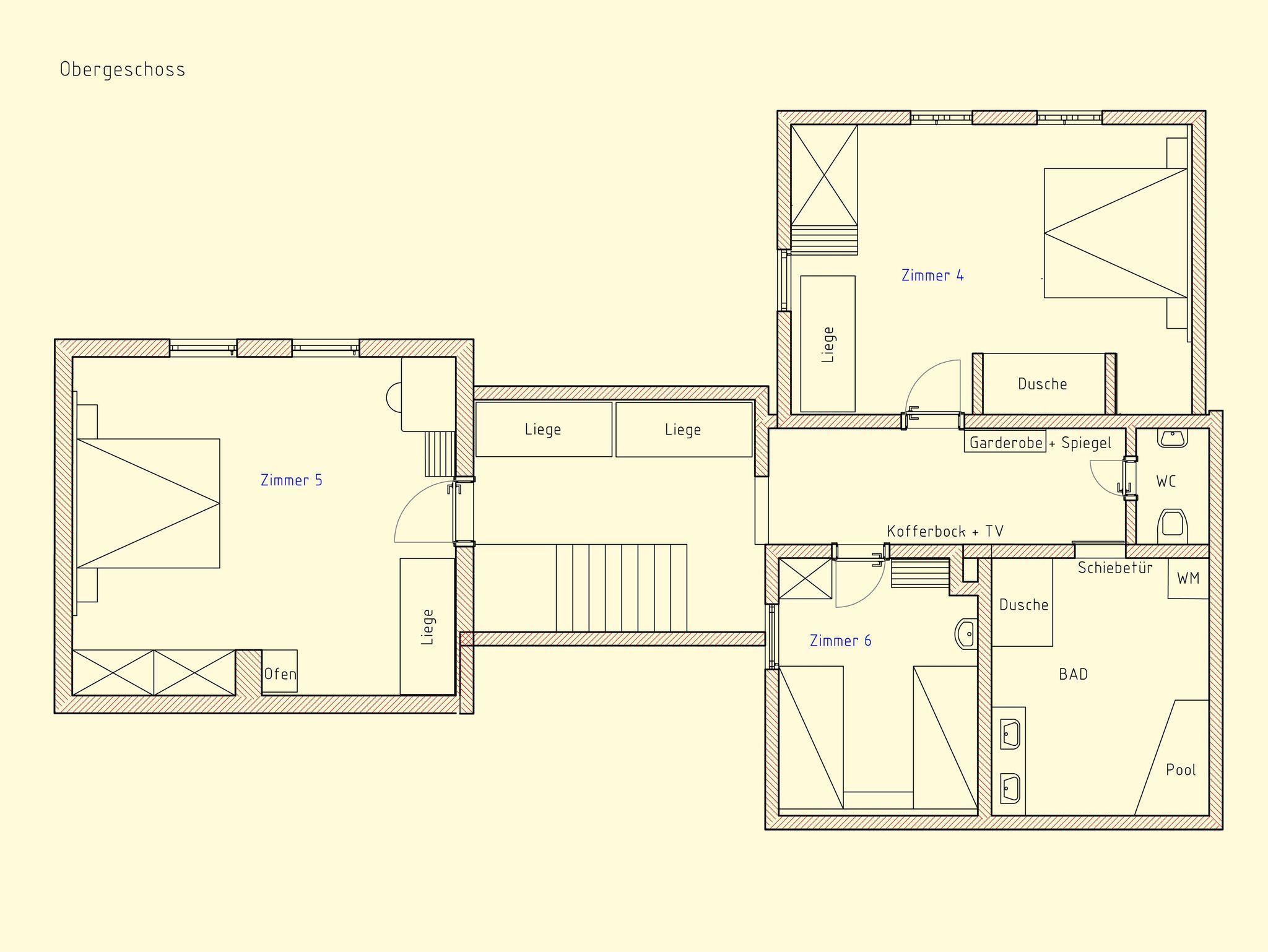 Auf einer Fläche von 186 m² bietet das Landhaus Platz für insgesamt 14 Personen und ist ausgestattet mit 6 Doppelzimmern (Doppel- und Einzelbetten, Stockbett und Schlafsofas), einer Küche, Essbereich, 3 WC, 3 Duschen, Whirlwanne und ab Herbst 2023 einer Sauna für 4 Personen. Die 30 m² große, überdachte Terrasse mit Grillstation lädt zum Wohlfühlen und Entspannen ein.