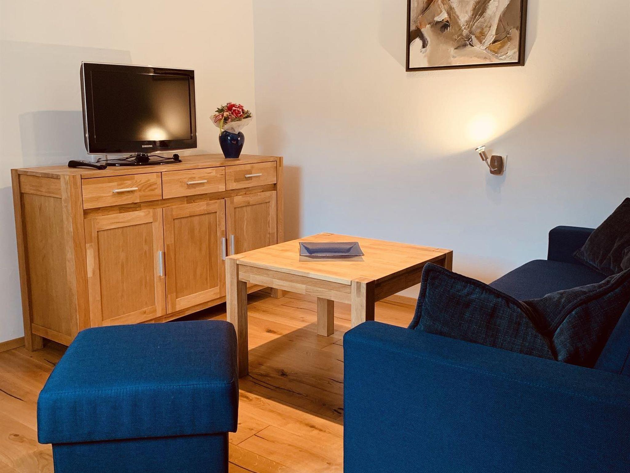 Aufgeteilt in Wohnküche mit gemütlicher Essecke und zusätzlicher Sitzgelegenheit-Couch sowie einem FLAT-TV, Vorraum, Dusche, WC, und ein Schlafzimmer für 2 Personen. Die Couch in der Wohnküche lässt sich auch zu einem normalen Doppelausziehbett umfunktionieren.